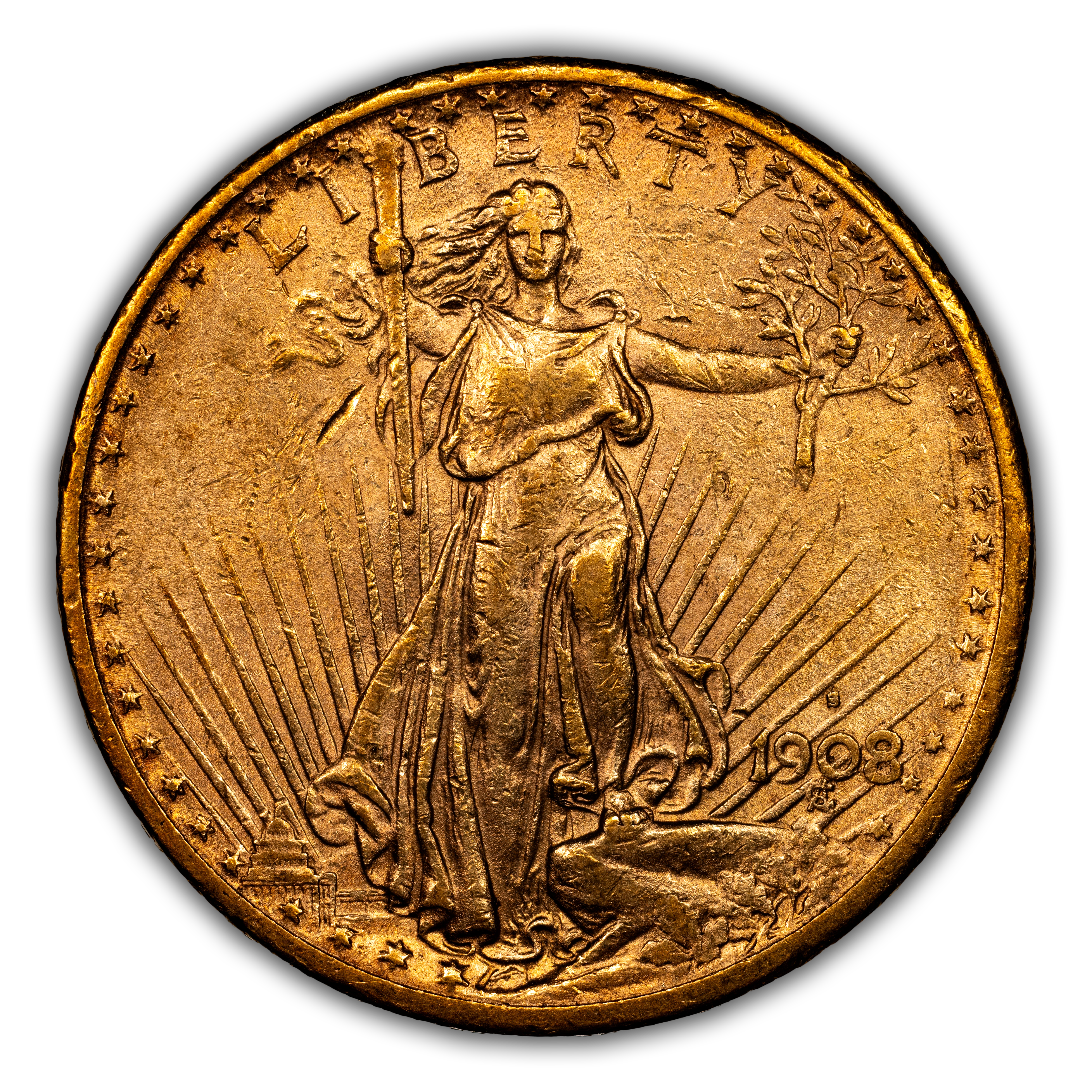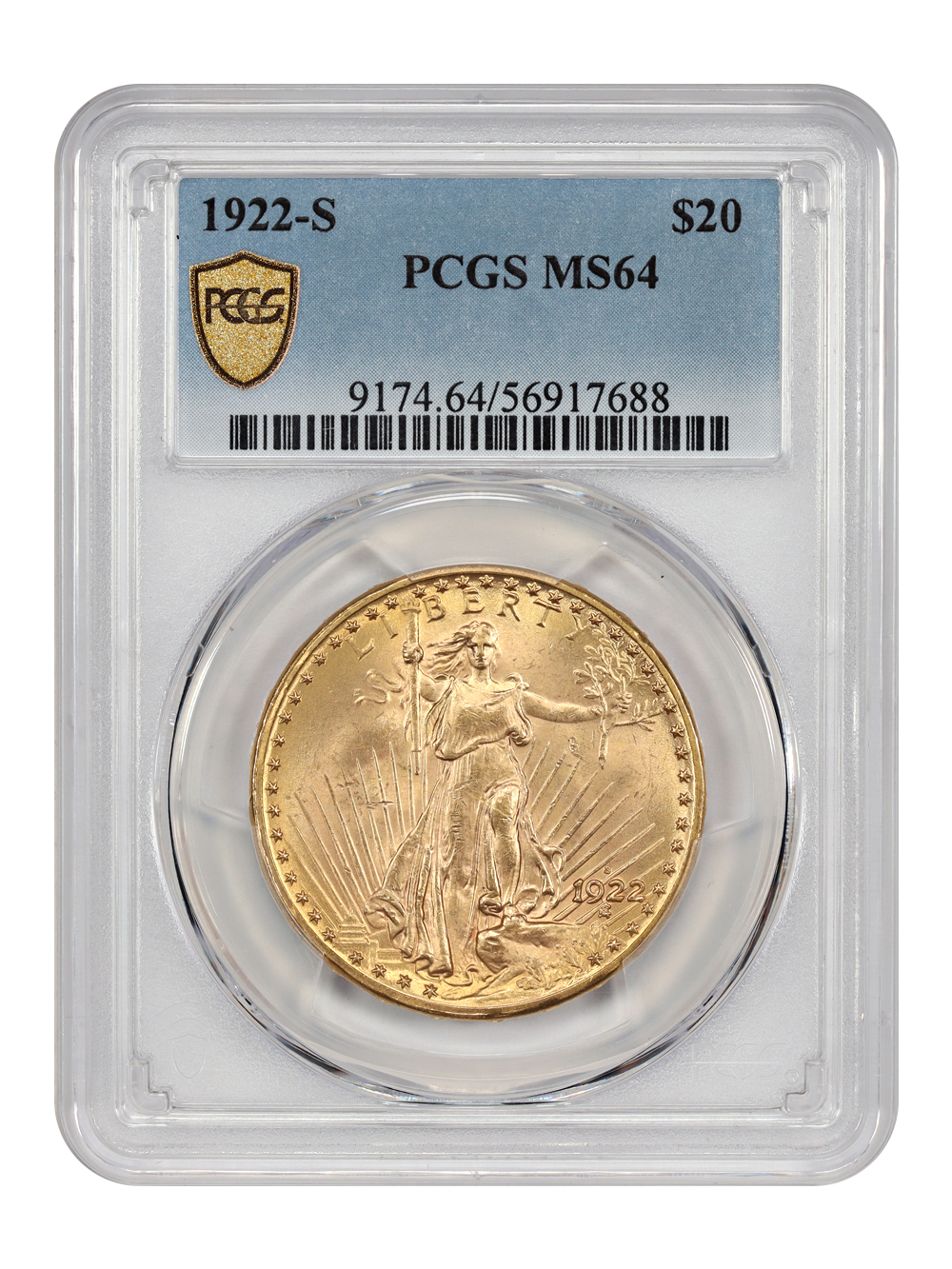 One of the semi-key dates in the series, the 1908-S Saint-Gaudens $20 is much more common in circulated grades than in Mint State, with well fewer than 500 pieces estimated to survive in uncirculated grades. Of those that do, the vast majority less than MS63. A handful are known in the grades of MS65 or better, and these trade for huge premiums.