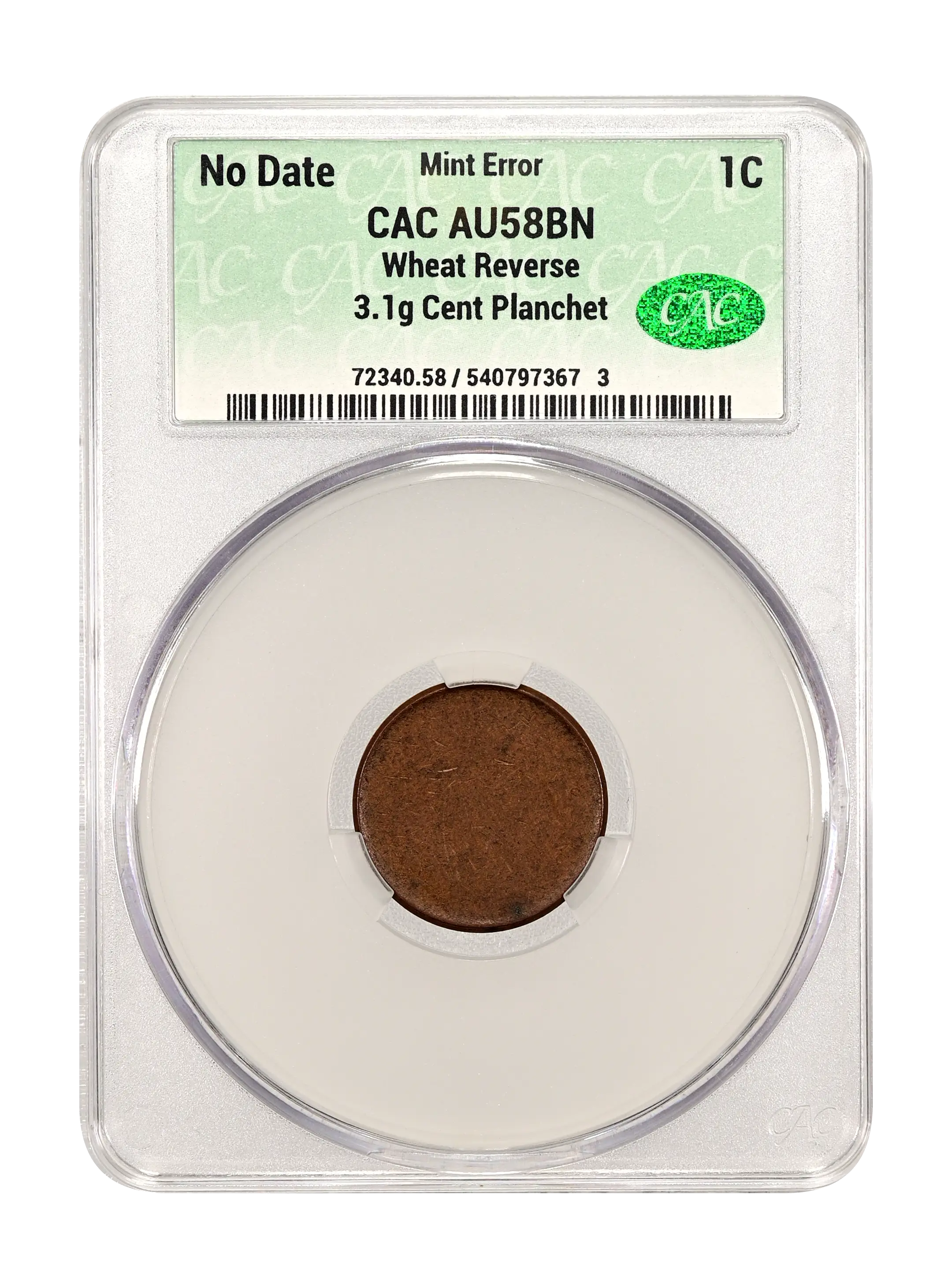 Lincoln Cent 1909-1958 Wheat Reverse 1c BN [No Date] CAC AU58BN