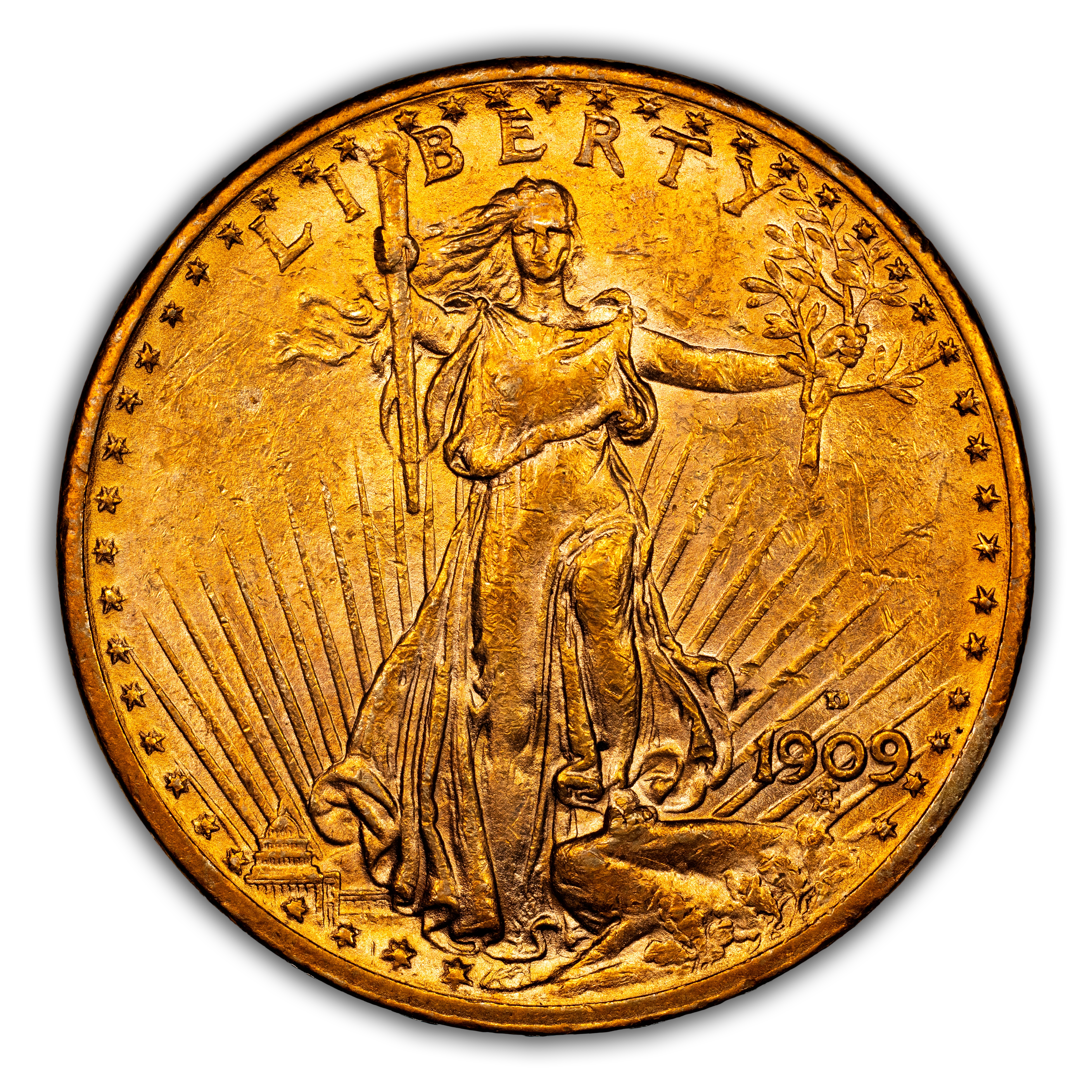 For many years numismatists thought the 1909-D Saint-Gaudens $20 was a rare coin, until a hoard was discovered in South America during the mid 1980s. These days, the issue is still considered a better date but is obtainable with relatively little effort. Mint State pieces are scarce, and Gems are quite rare.