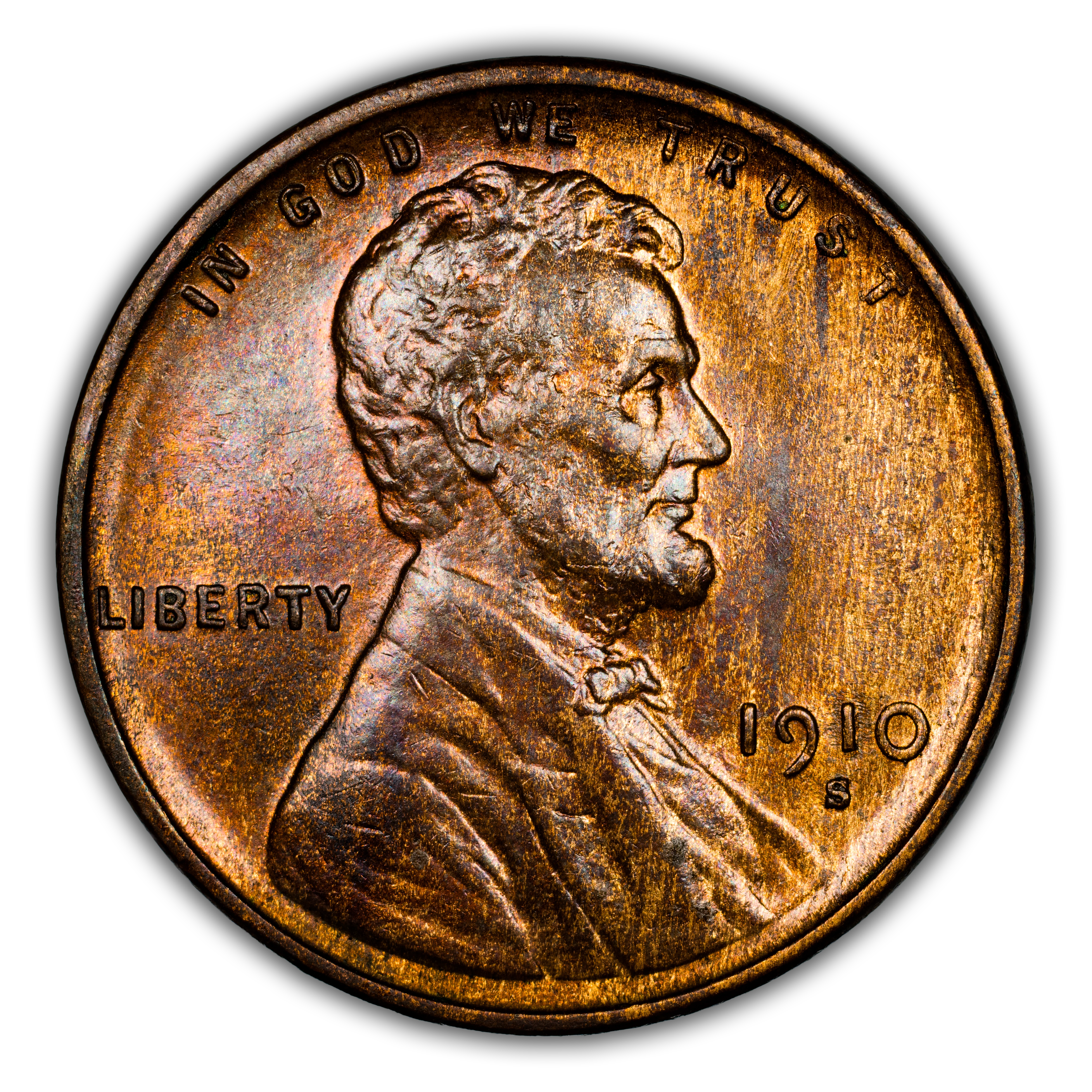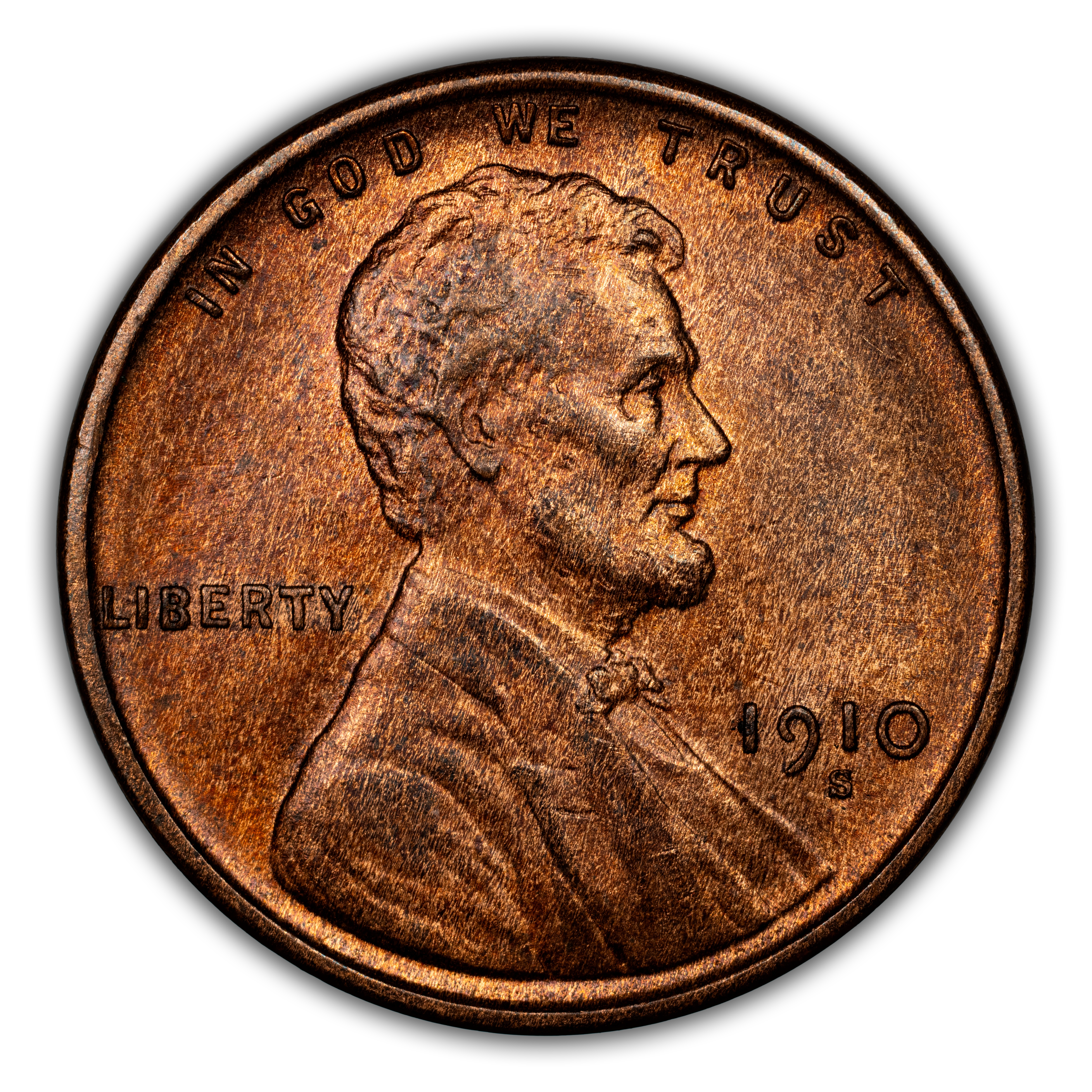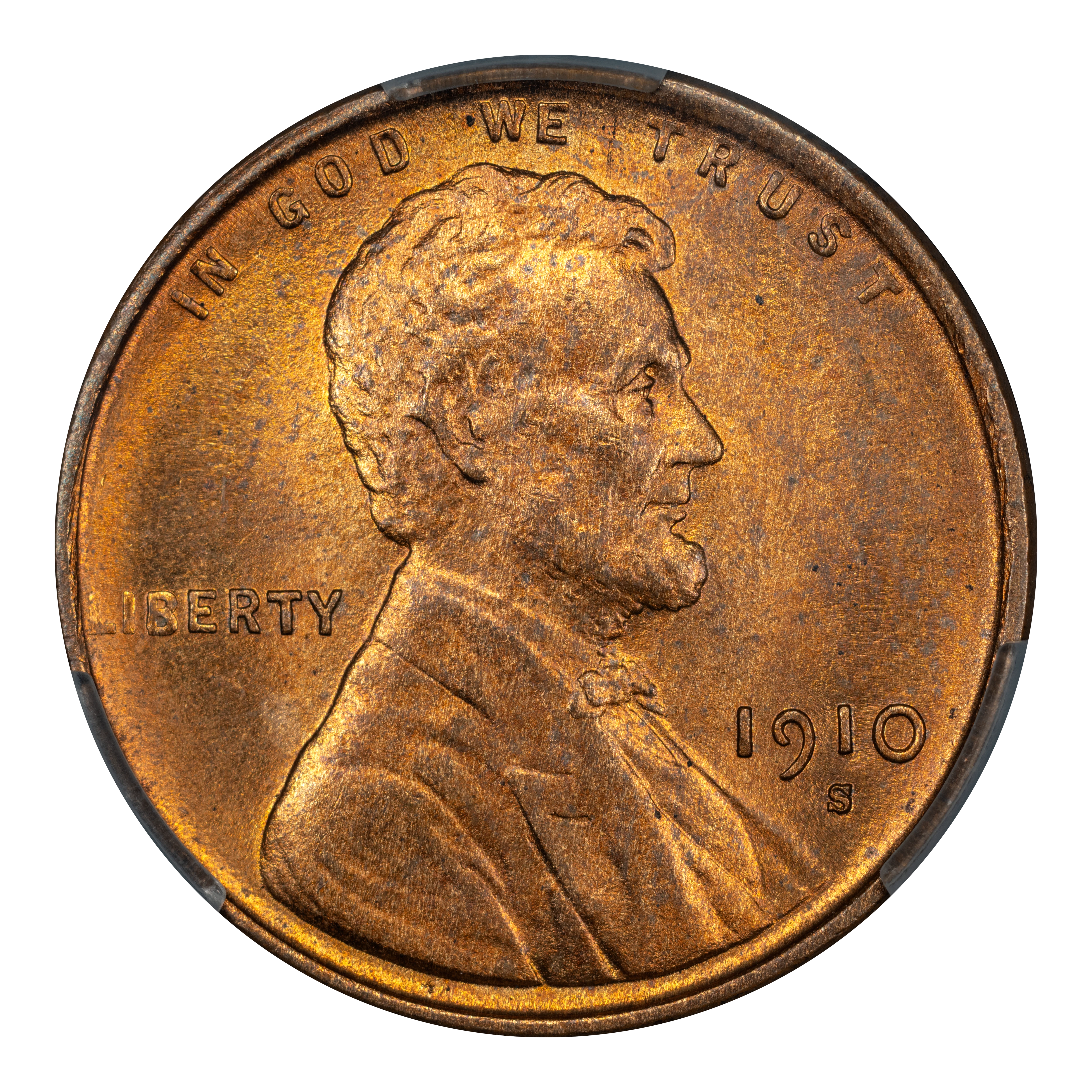 The 1910-S Lincoln cent is considered a semi-key date coin, as are all mint marked Lincoln cents dating before 1916. It, along with the 1913-S Lincoln penny are much easier to find in circulated grades than the other early S-mint Lincoln cents. Also similar to the other early branch-mint Lincolns, the 1910-S is scarce in uncirculated grades, though not nearly as much so as many other examples. Also, unlike most early branch-mint Lincolns, the 1910-S features a rather decent strike.