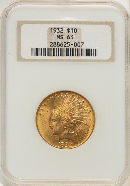 Reverse: The reverse features a majestic eagle perched atop a branch, holding an olive branch in its talons. The words UNITED STATES oF AMERICA, E PLURIBUS UNUM, and TEN DOLLARS appear at the top periphery, right of the eagle's neck, and the bottom periphery, respectively.