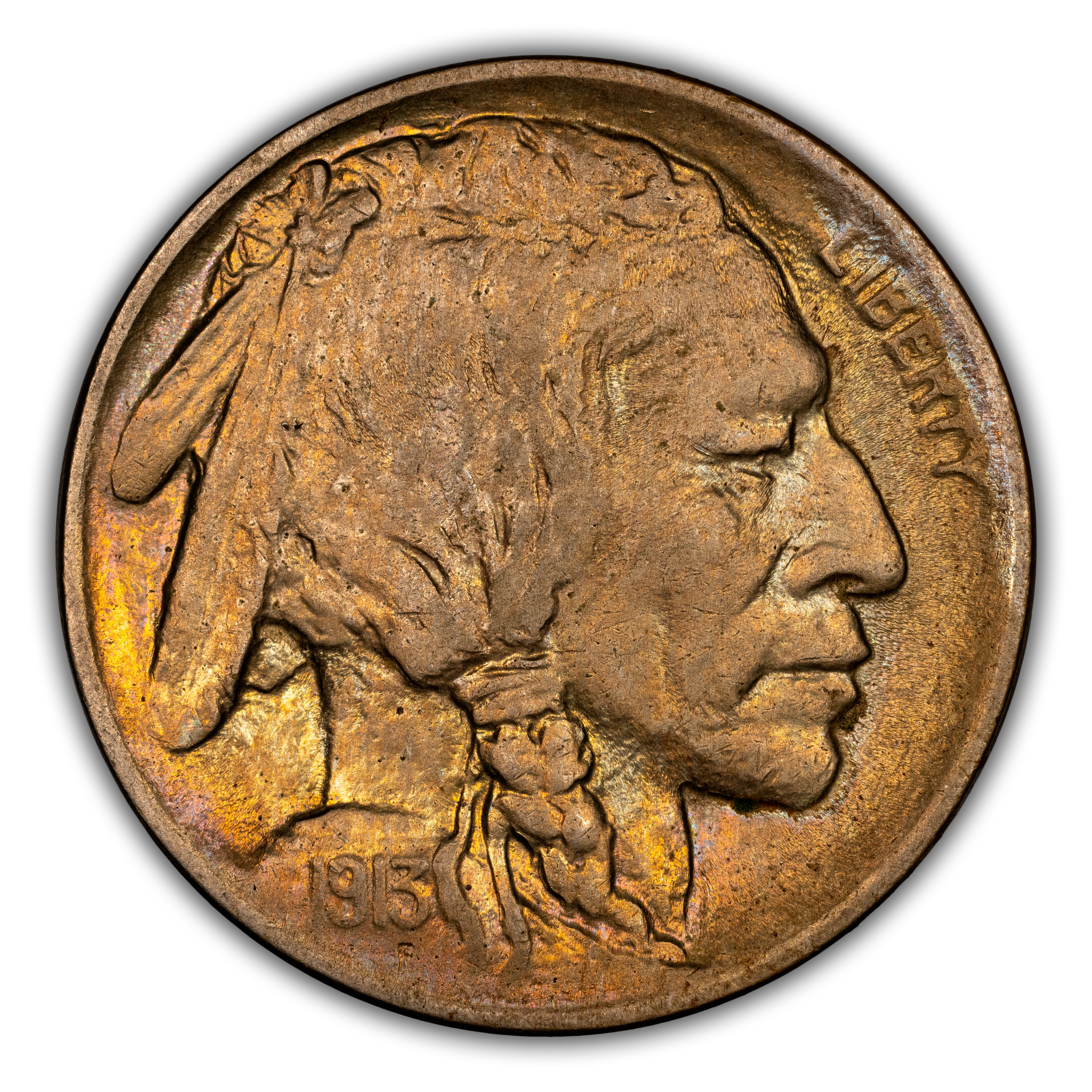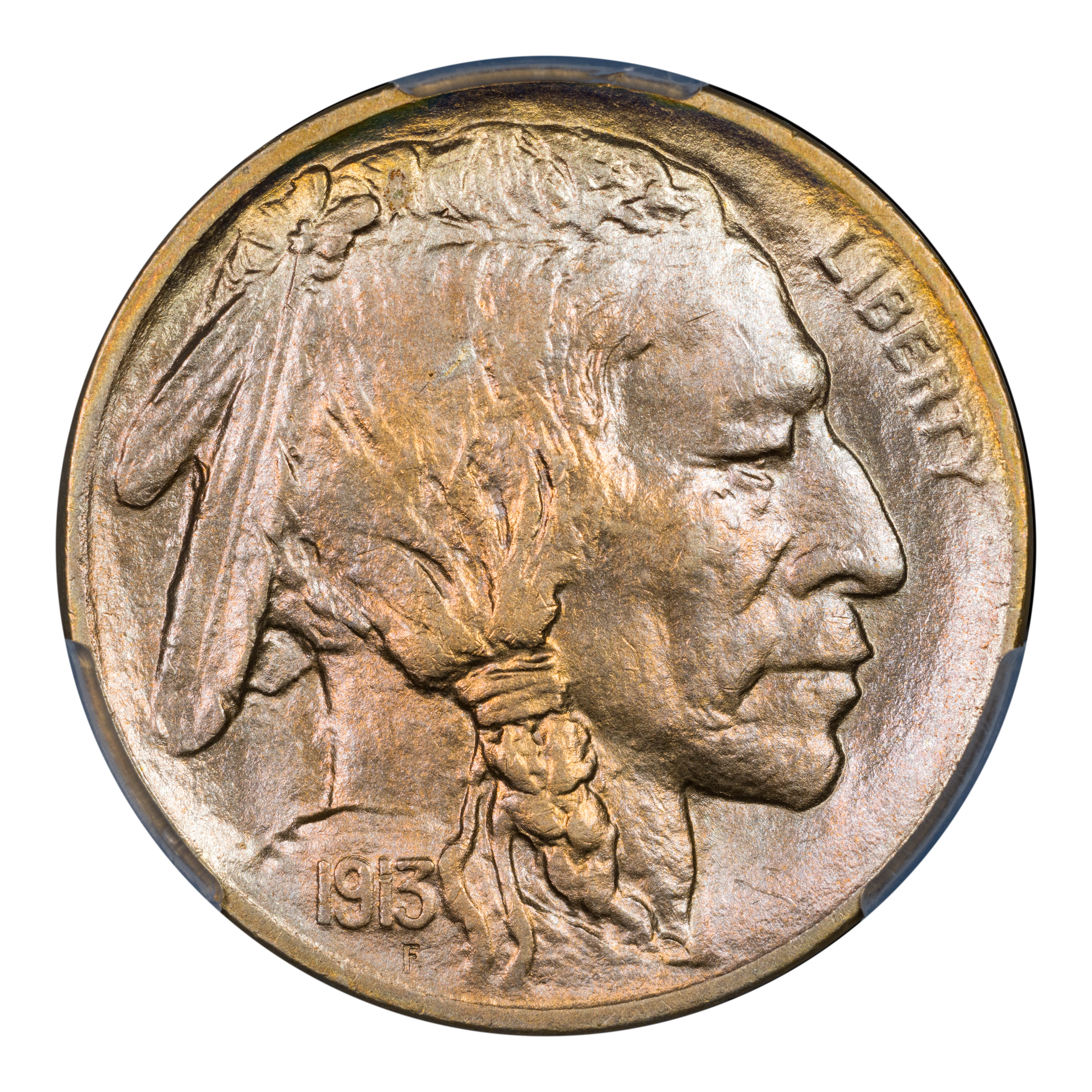 With a mintage of 30,992,000 pieces, the 1913 Type 1 Buffalo nickel from the Philadelphia Mint is the most common of the Type 1 Buffalo nickels. The Type 1 design features the bison standing on a mound and was struck only during 1913. This Philadelphia issue is popular both as a first-year type coin and is also sought by collectors assembling the entire date-and-mintmark run of Buffalo nickels. There are many specimens available even in the higher Mint State grades. Specimens are plentiful through MS65 and MS66, with both PCGS and NGC have certified several hundred examples grading MS67 or higher.