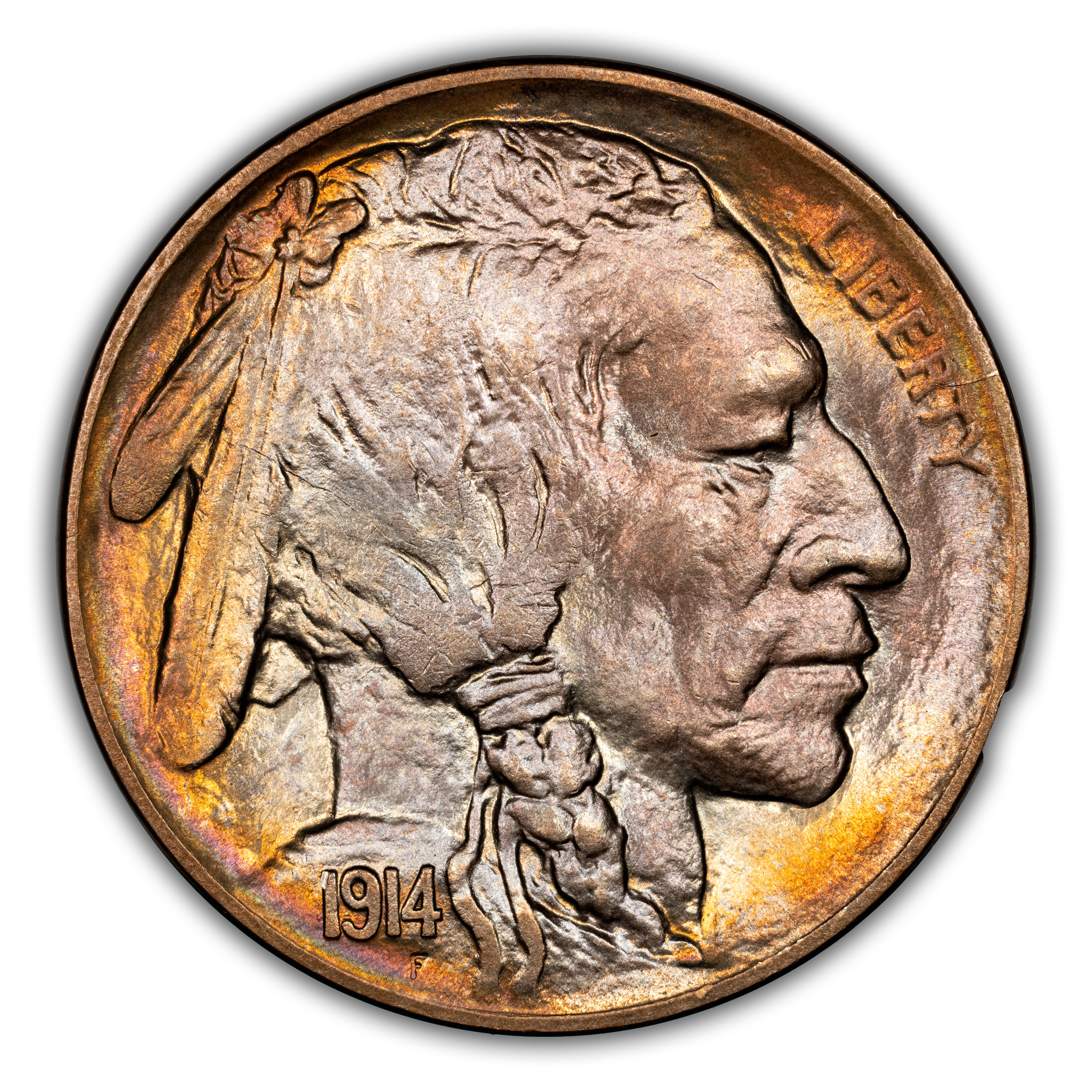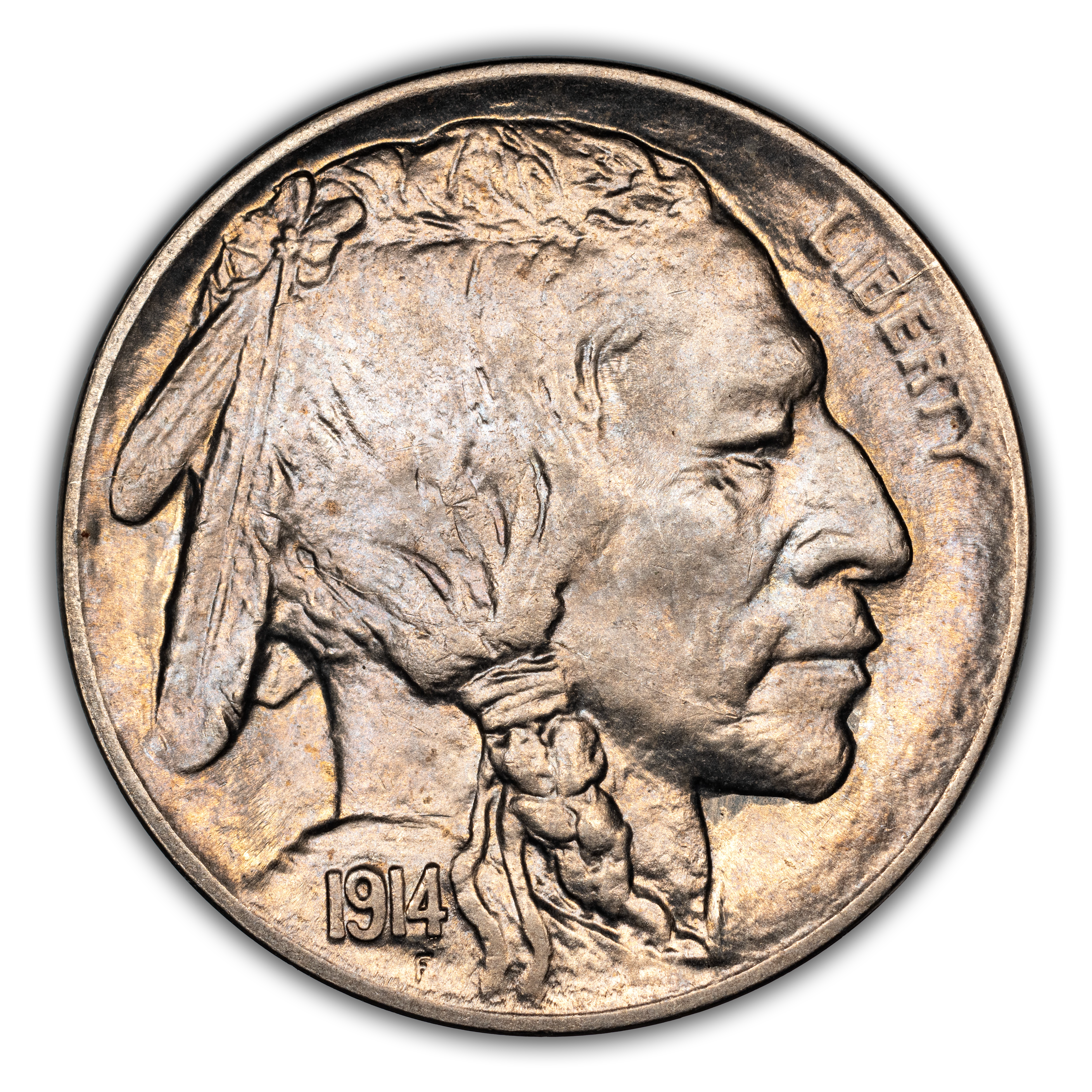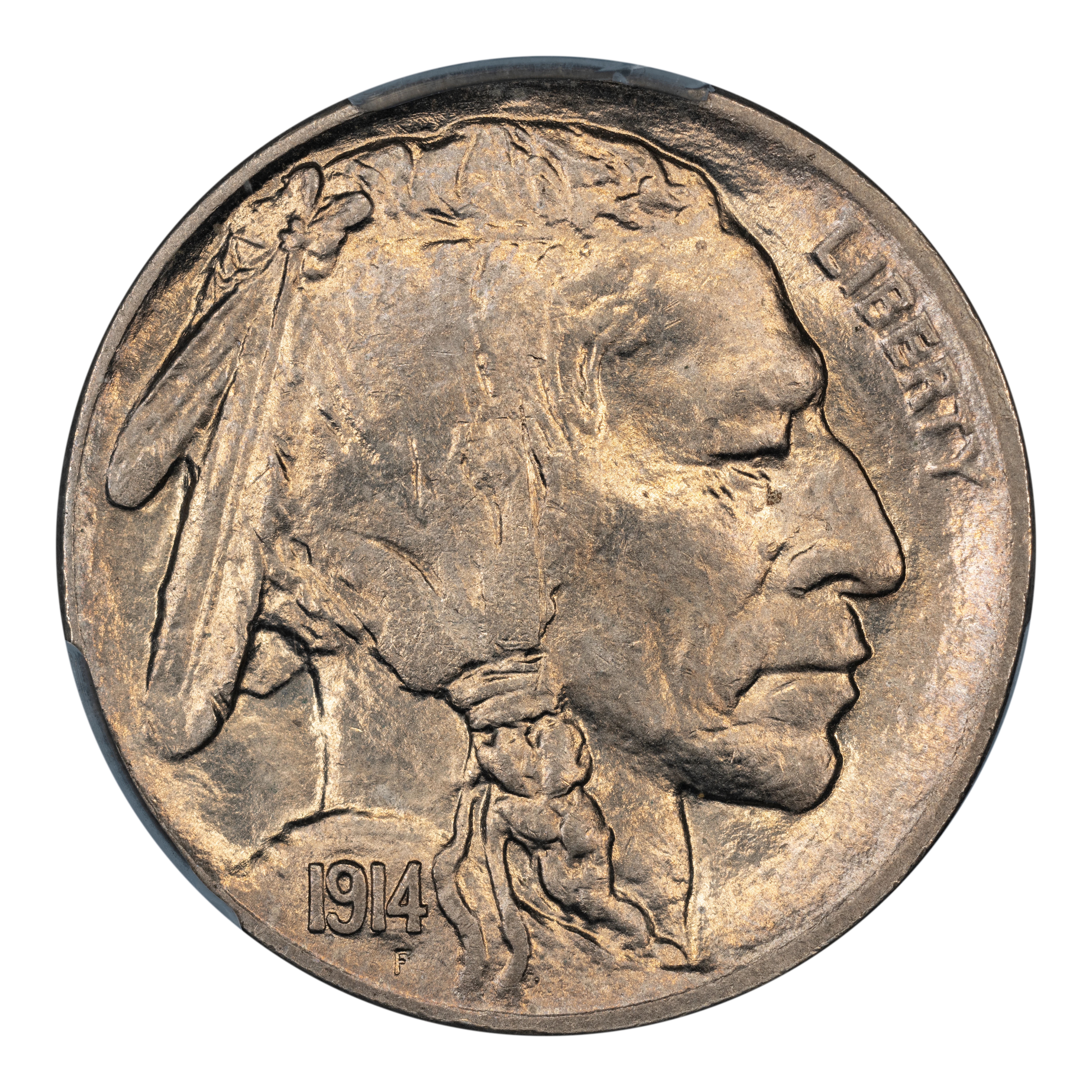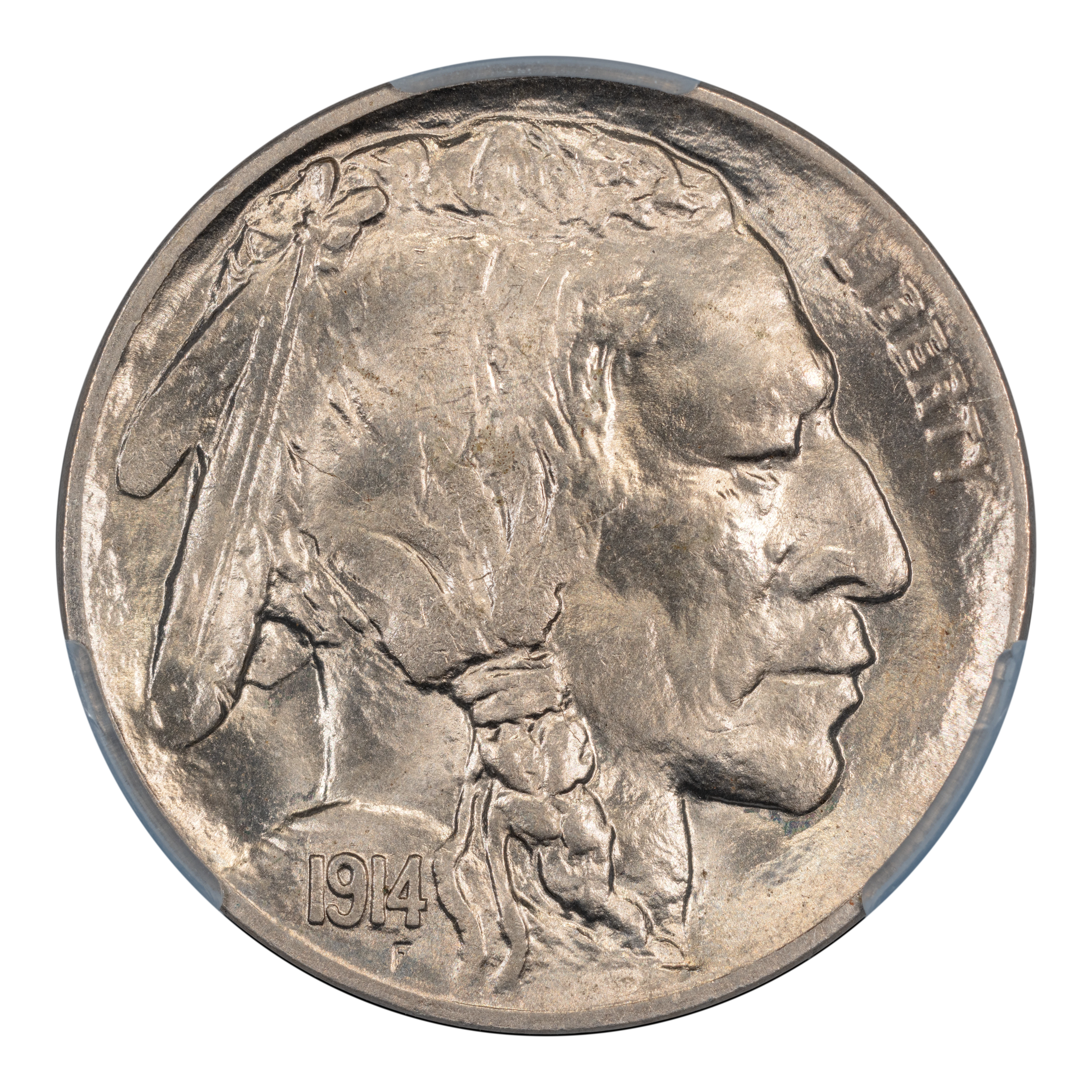The 1914-D Buffalo nickel is among the scarcer mintmarked issues in the series, with only 3,912,000 struck and just about 8,000 known examples across the grading spectrum. This semi-key coin is sought after in all grades, with even circulated examples proving scarce. While it was not common for collectors to save early mintmarked Buffalo nickels, there are more than 1,000 such known examples. A decent number of Gems are available, though the coin is fairly difficult to locate in MS66 or above.