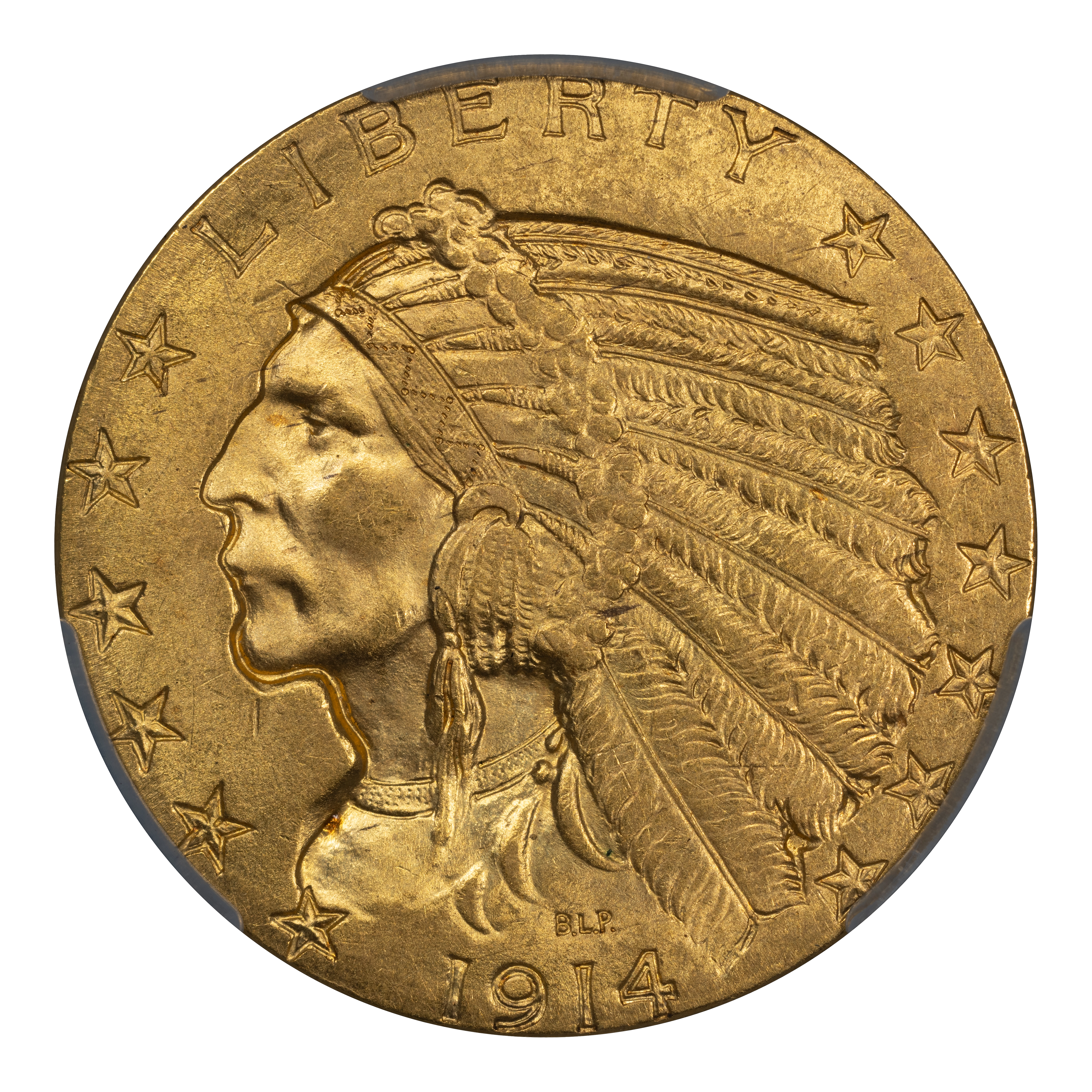 The 1914 Half Eagle is quite common up through MS63 but beyond that it becomes very scarce like most issues in this series. This date is comparable in many ways to other Philadelphia minted Indian Half Eagles around this year. Not many high quality gems exist but when they come around they demand a well-deserved premium.