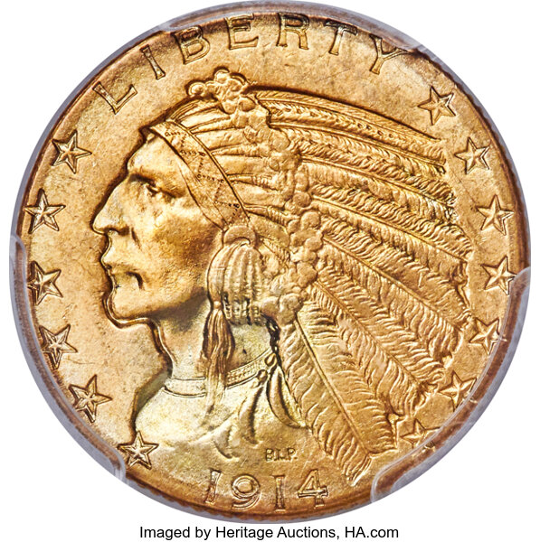 Reverse: The traditional American eagle struck incuse in the center with the words, UNITED STATES OF AMERICA at top, E PLURIBUS UNUM left of the eagle, and IN GOD WE TRUST to the right of the eagle. The denomination 5 DOLLARS struck below the eagle.