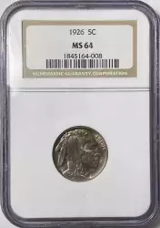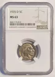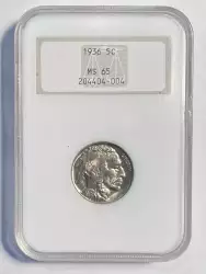 Reverse: A full portrait of the bison, Black Diamond, with the words UNITED STATES oF AMERICA at the top periphery with the motto E PLURIBUS UNUM just underneath. The denomination FIVE CENTS is spelled out at the bottom. For the Type 1, the denomination is embossed on a flat surface.