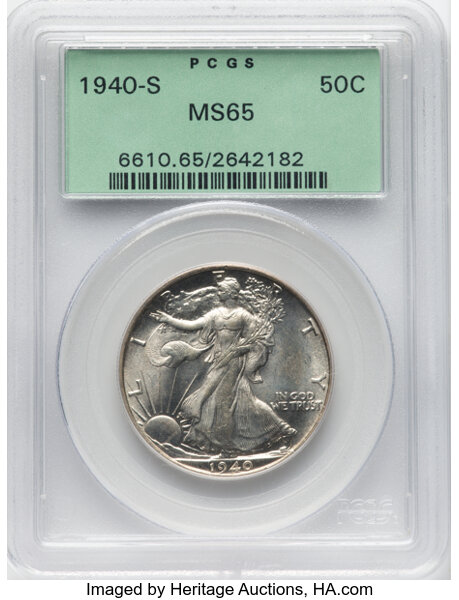 This Walking Liberty Half Dollar variety has the mintmark appearing on the obverse, though many collectors just view it as part of the regular set. Three others have a similar distinction but, this issue happens to be the most common in uncirculated condition. Circulated grades are relatively plentiful but not common. This variety is scarce through MS64, very scarce in MS65 and considered rare in MS66.