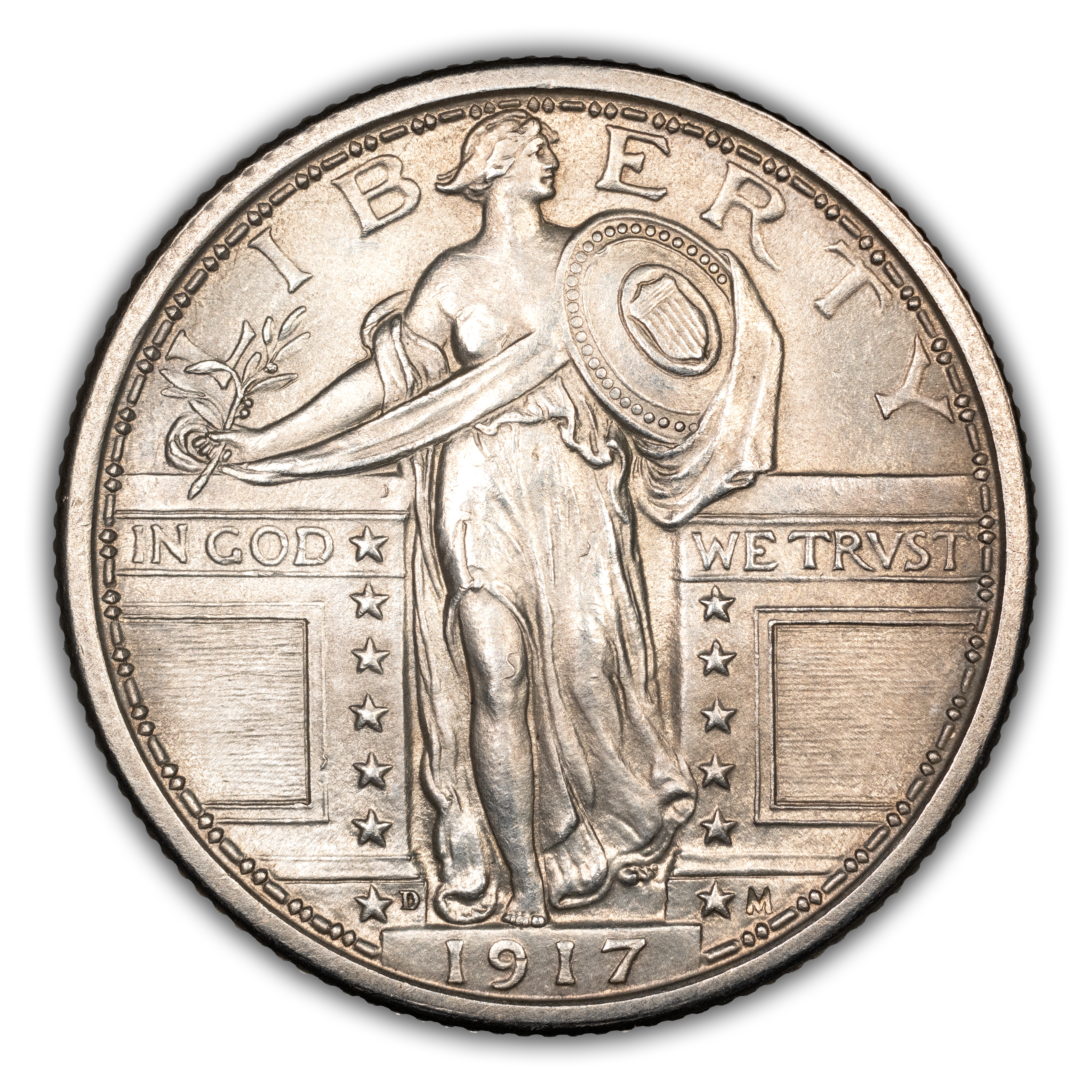 The 1917-D Type 1 Quarter is a considerably more scarce than its counterpart from Philadelphia. Better date in circulated grades but not very difficult to locate up until the gem level. It is still accessible in MS65, with scarcity only in MS66 or finer. This issue is known to have a strong strike, quality luster and even some attractive toning.