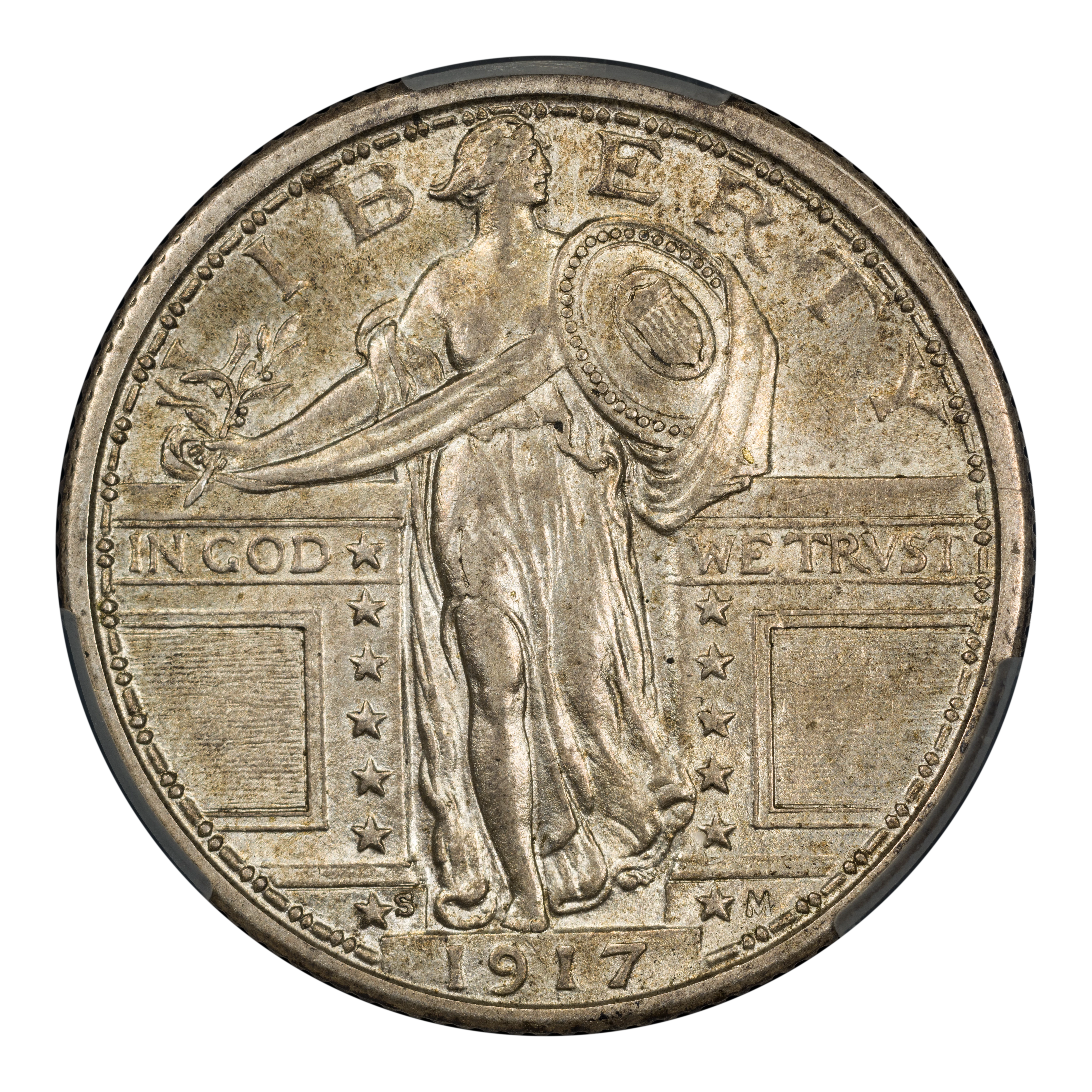 The 1917-S Type 1 Quarter is slightly more scarce than its counterparts from Philadelphia and Denver. A slightly scarcer issue when found with a Full Head as striking was not as good as the other mints for this date. Better date in circulated grades but is not very difficult to locate until MS64 with rarity increasing gradually into MS67 and finer.