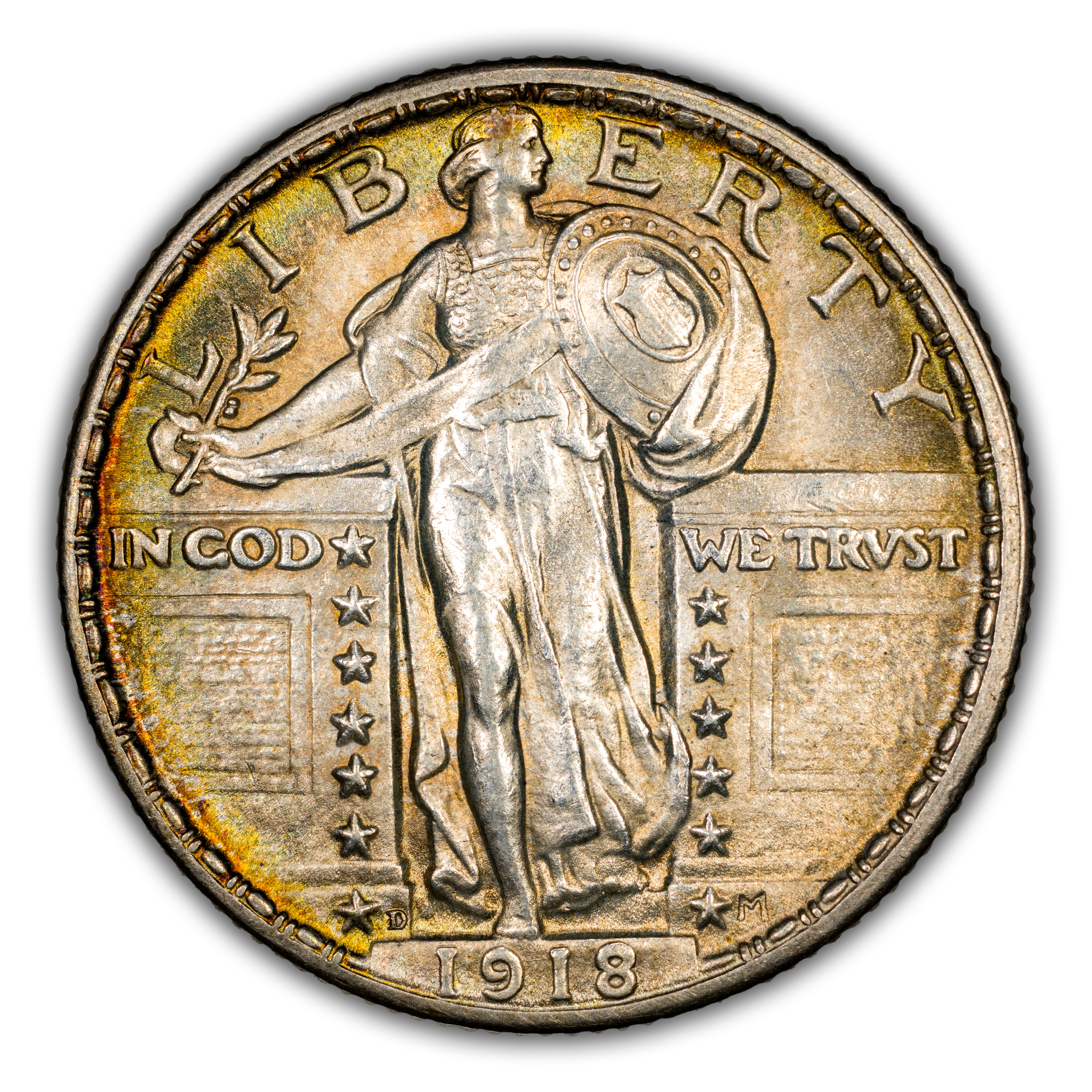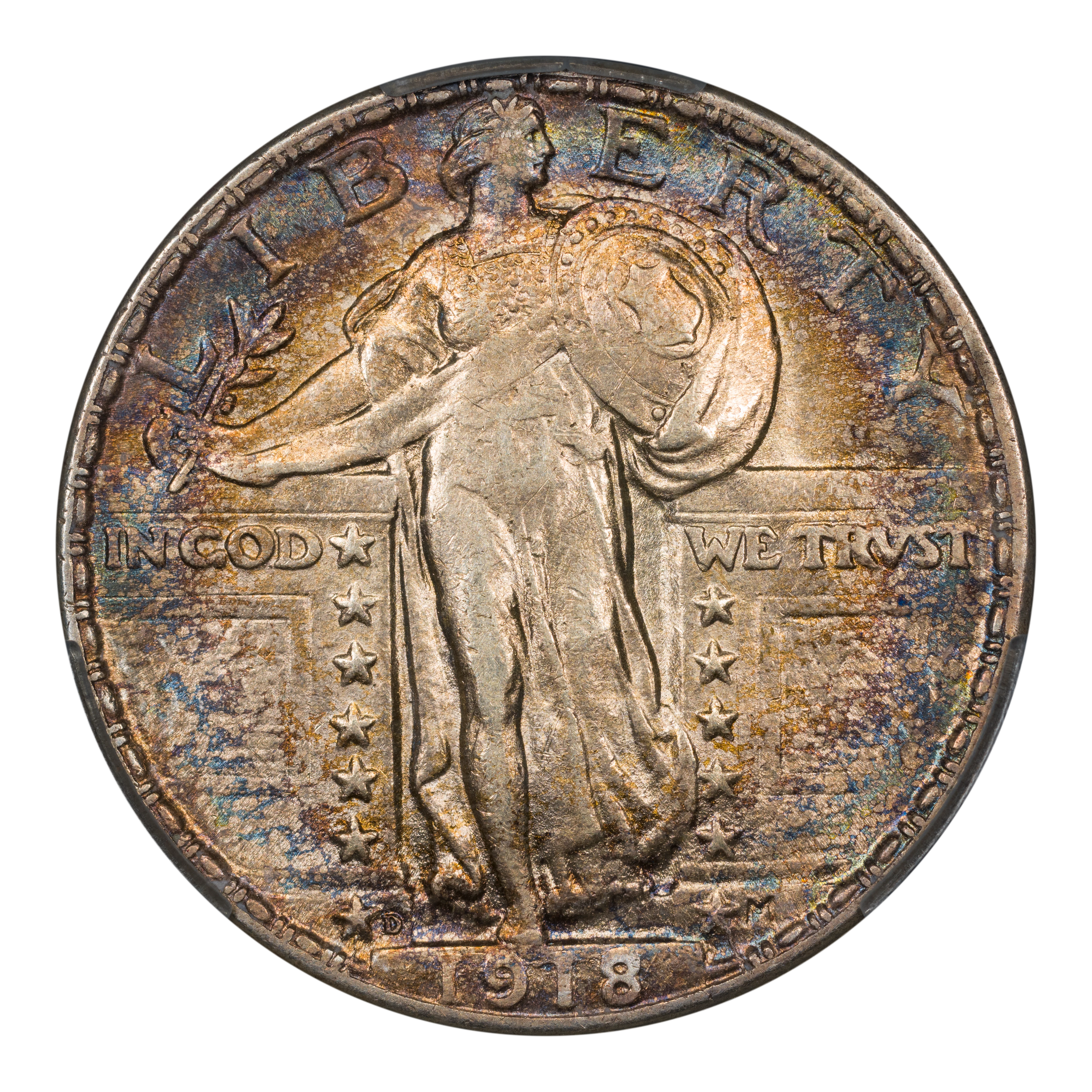 The 1918-D is a slightly scarcer date across all grades in the Standing Liberty Quarter Series. A better date in circulated grades whose scarcity increases gradually into Mint State. Once this issue hits the gem level it gains some rarity with MS65 and MS66 being very scarce. MS67 and finer are considered rare.