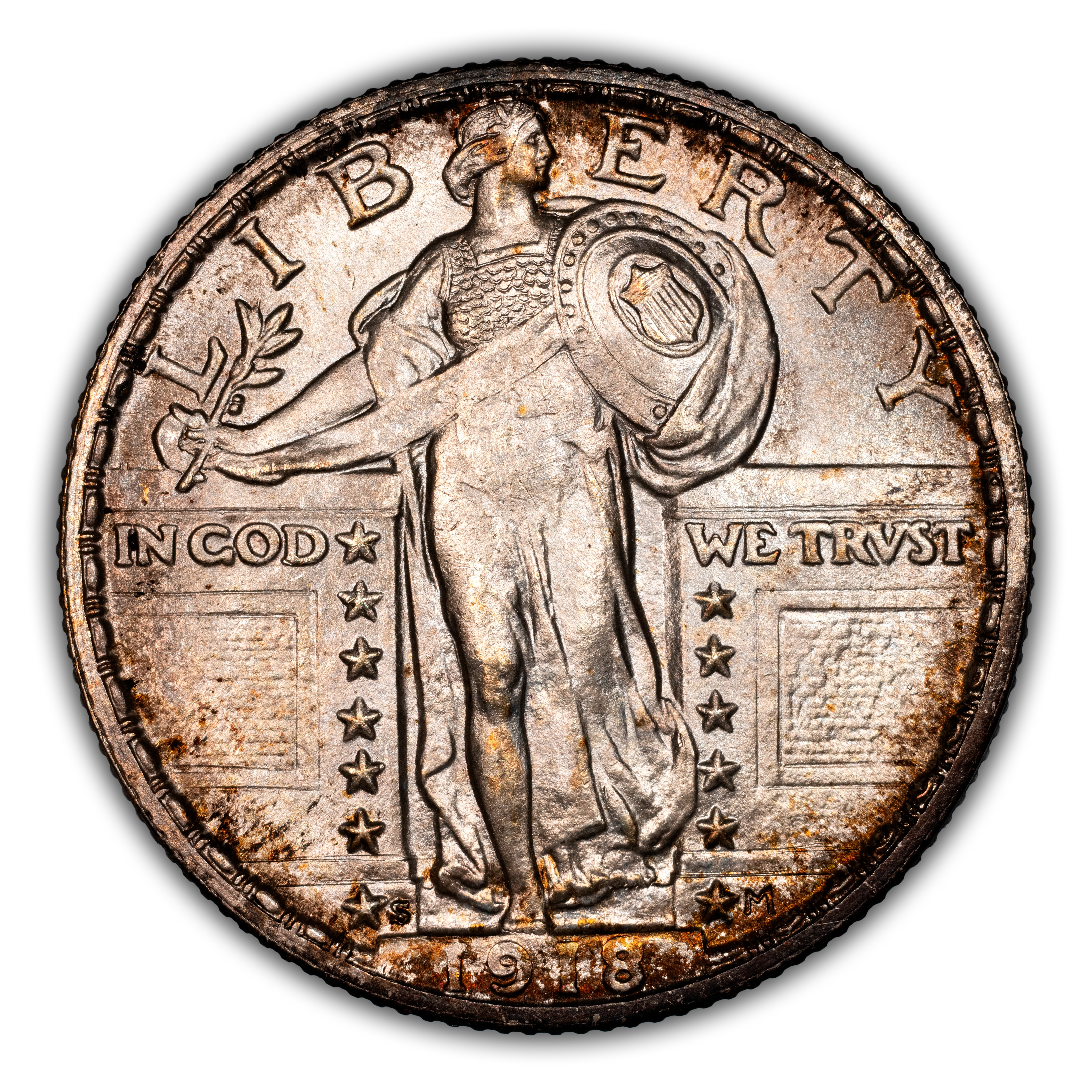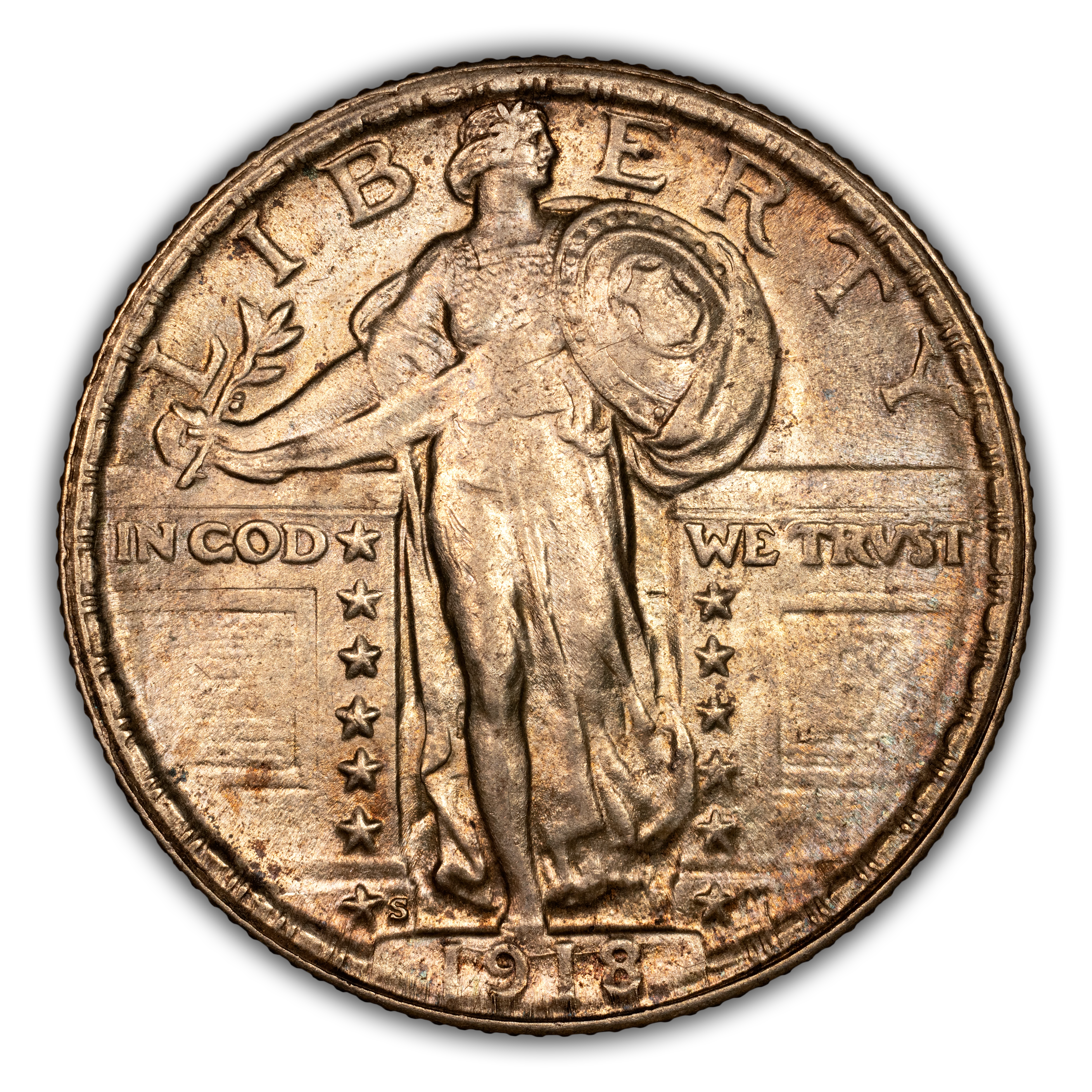 Due to striking being such a problem for the 1918-S, this issue is one of the most rare across the Standing Liberty Quarter Series with a Full Head. This coin is uncommon even at the AU to low Mint State level. MS62 through MS64 are scarce at which point there is a value/rarity jump into gem as MS65 and MS66 are very rare. That leaves anything finer being an extreme rarity.