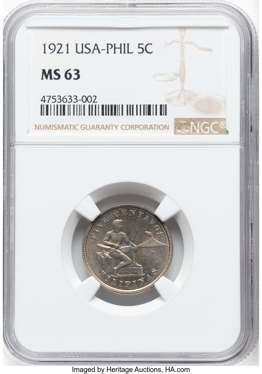 1918-S 5C Philippines Five Centavos Mule, KM-173, Allen-4.08b, MS62 PCGS. ...