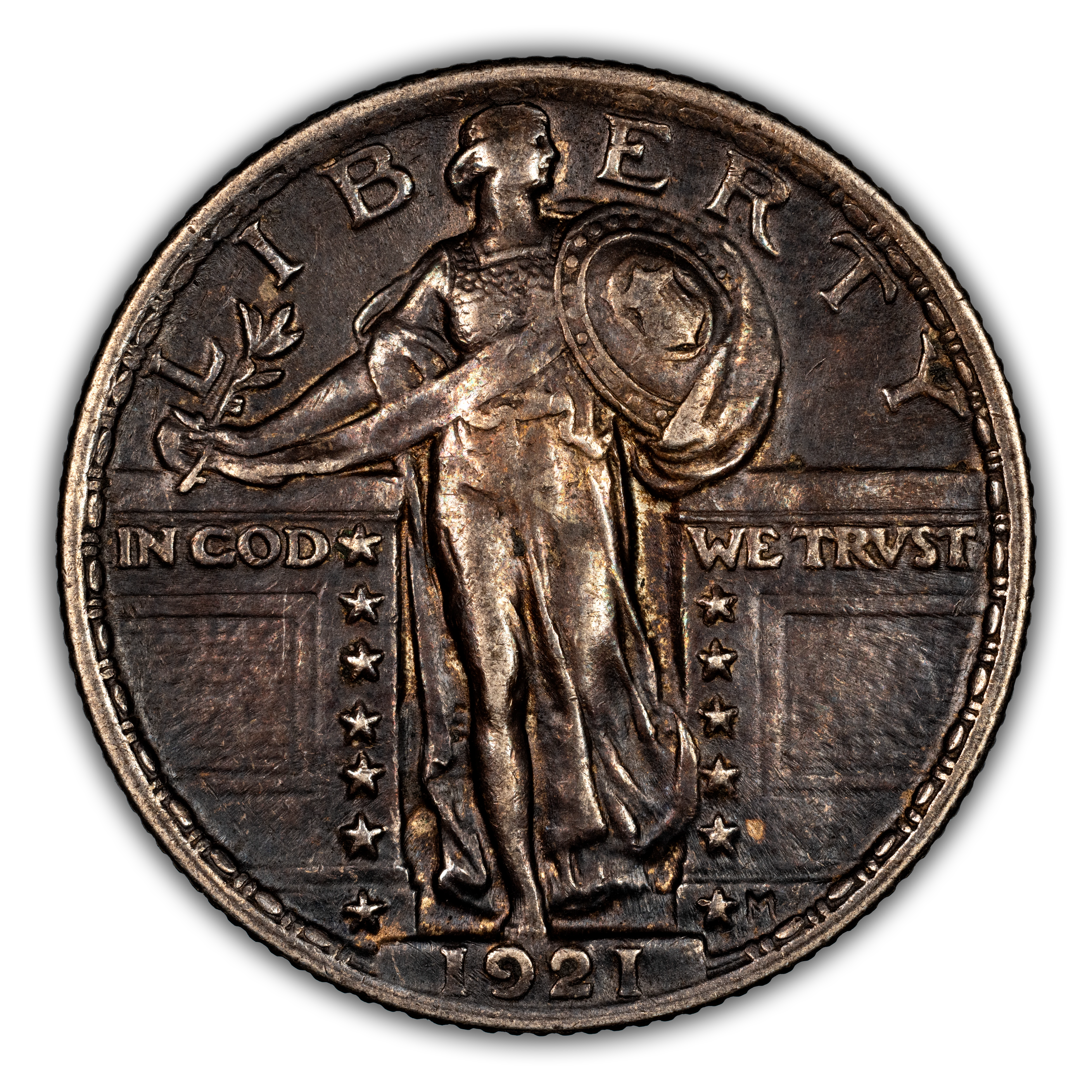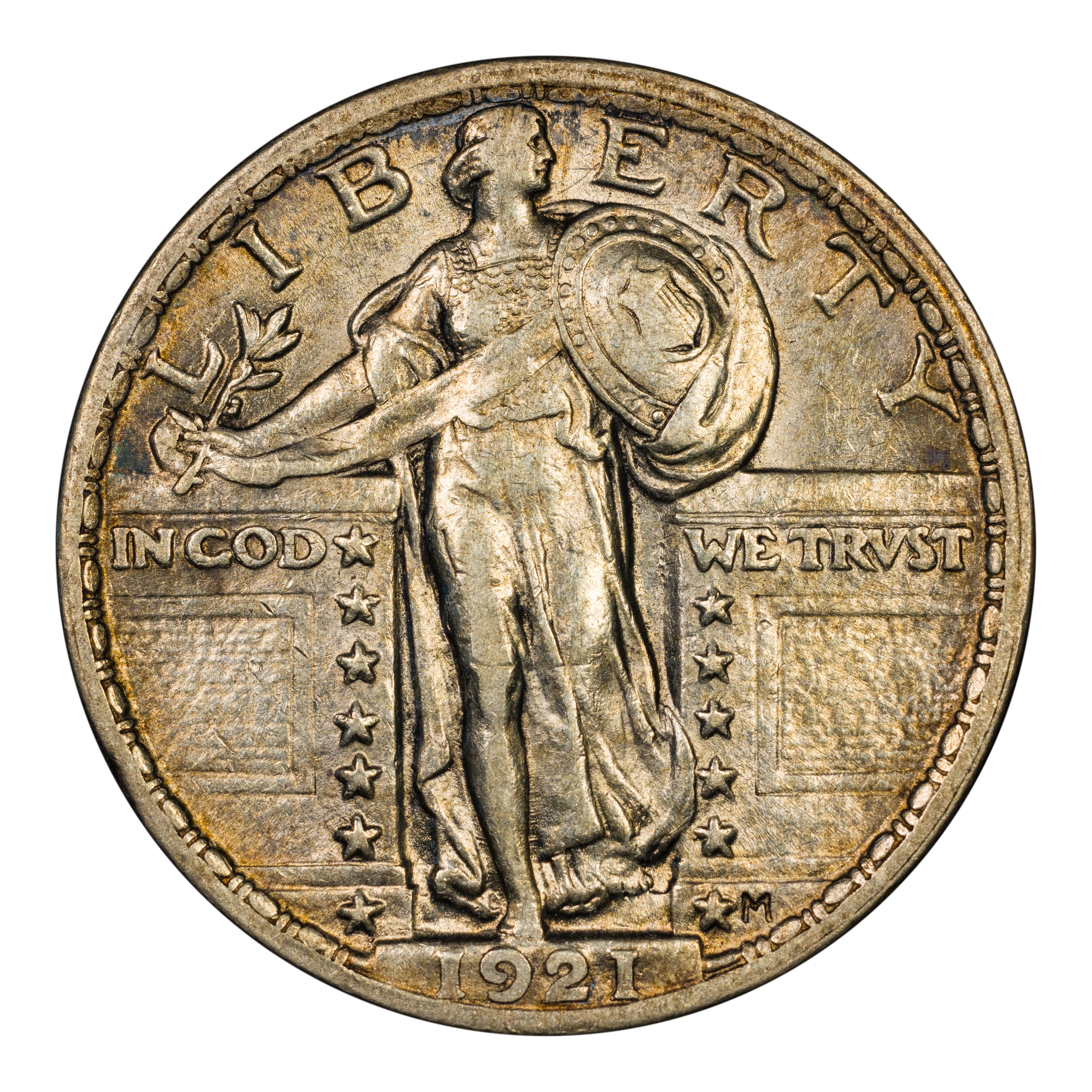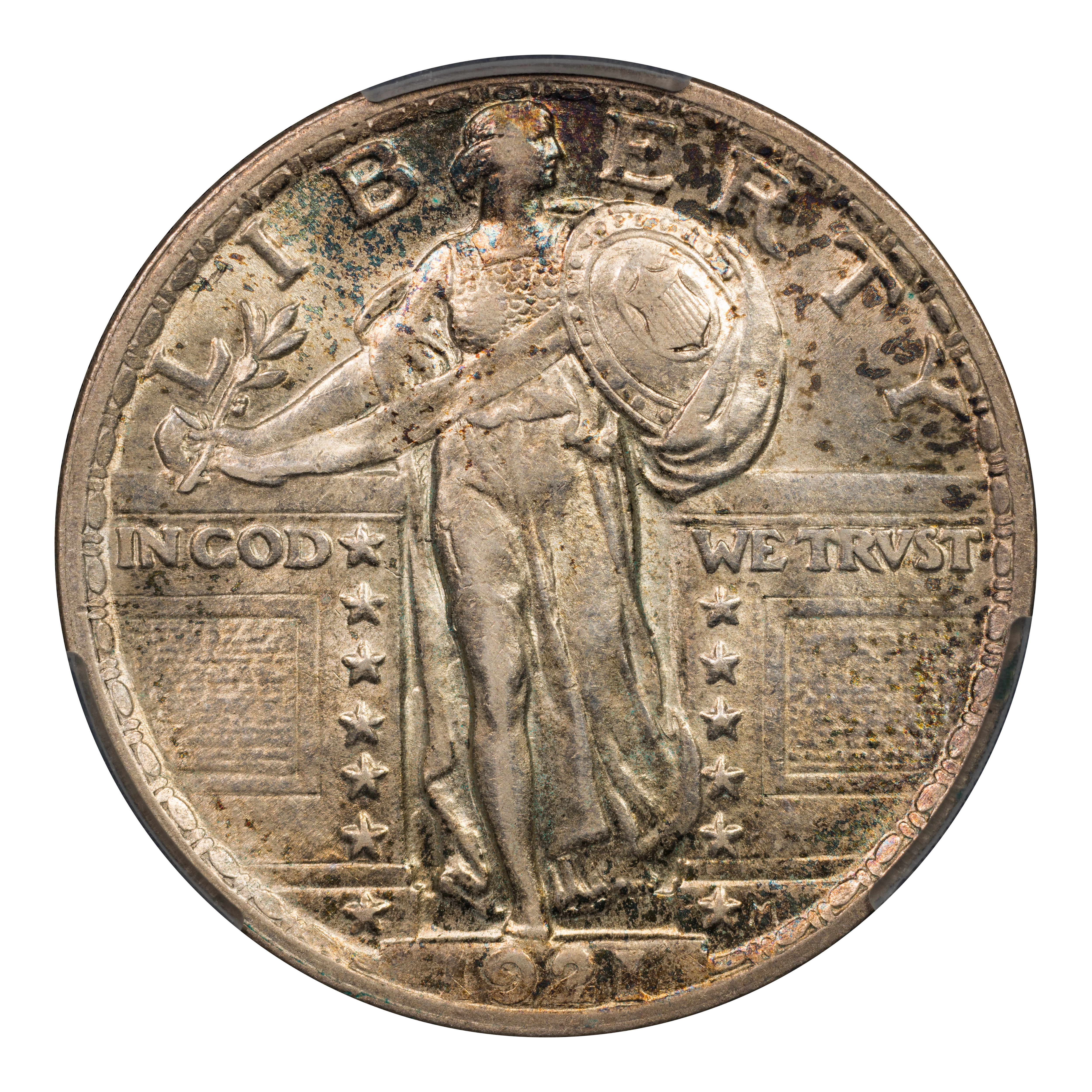 The 1921 Standing Liberty Quarter is a popular key date in the series and possibly the best Philadelphia date of all the Type 2’s. Collectible in all grades with a gradual increase in value from circulated to uncirculated where it becomes truly scarce. Very scarce as a gem in MS65 and MS66, then it takes a jump into MS67 in which that grade or finer is considered rare.