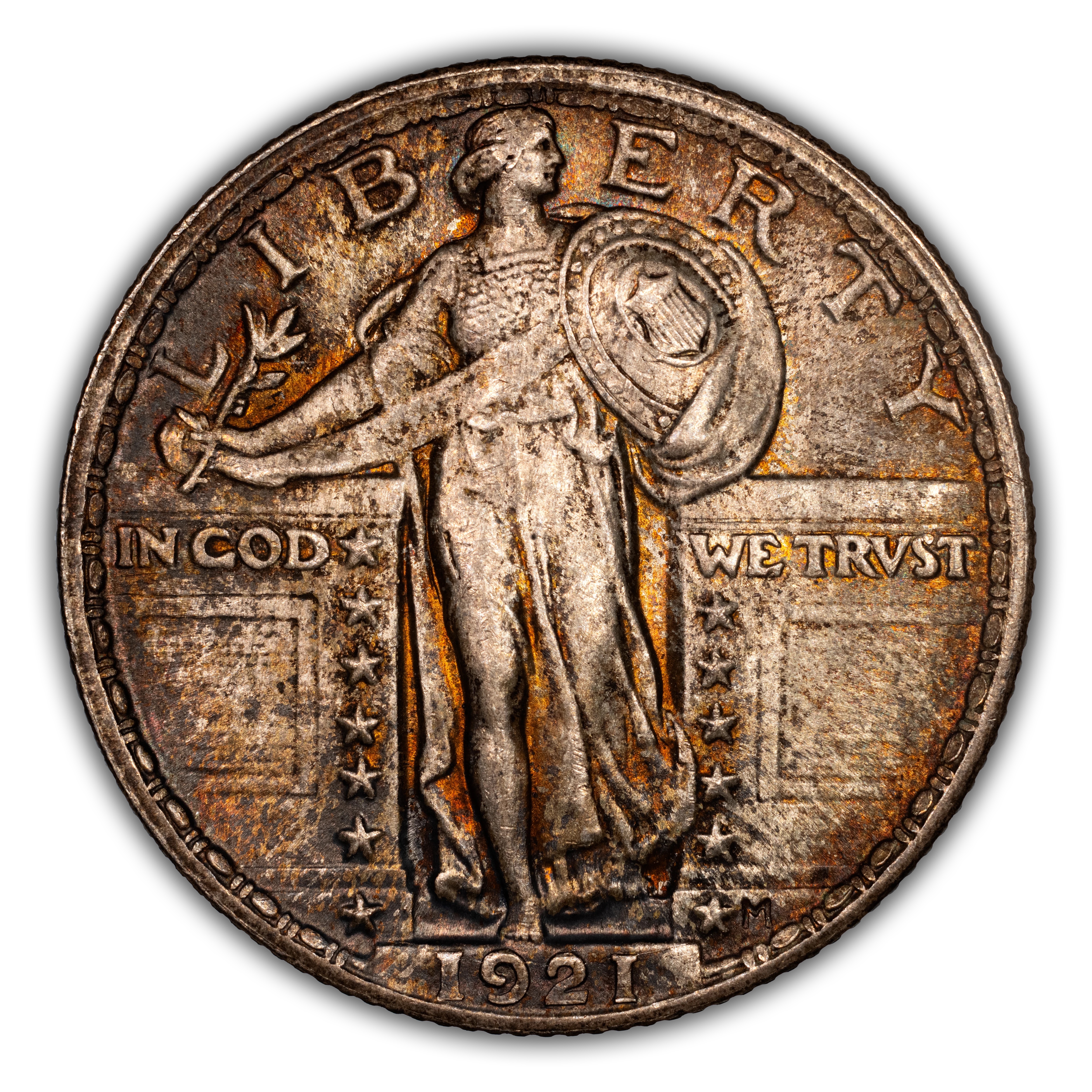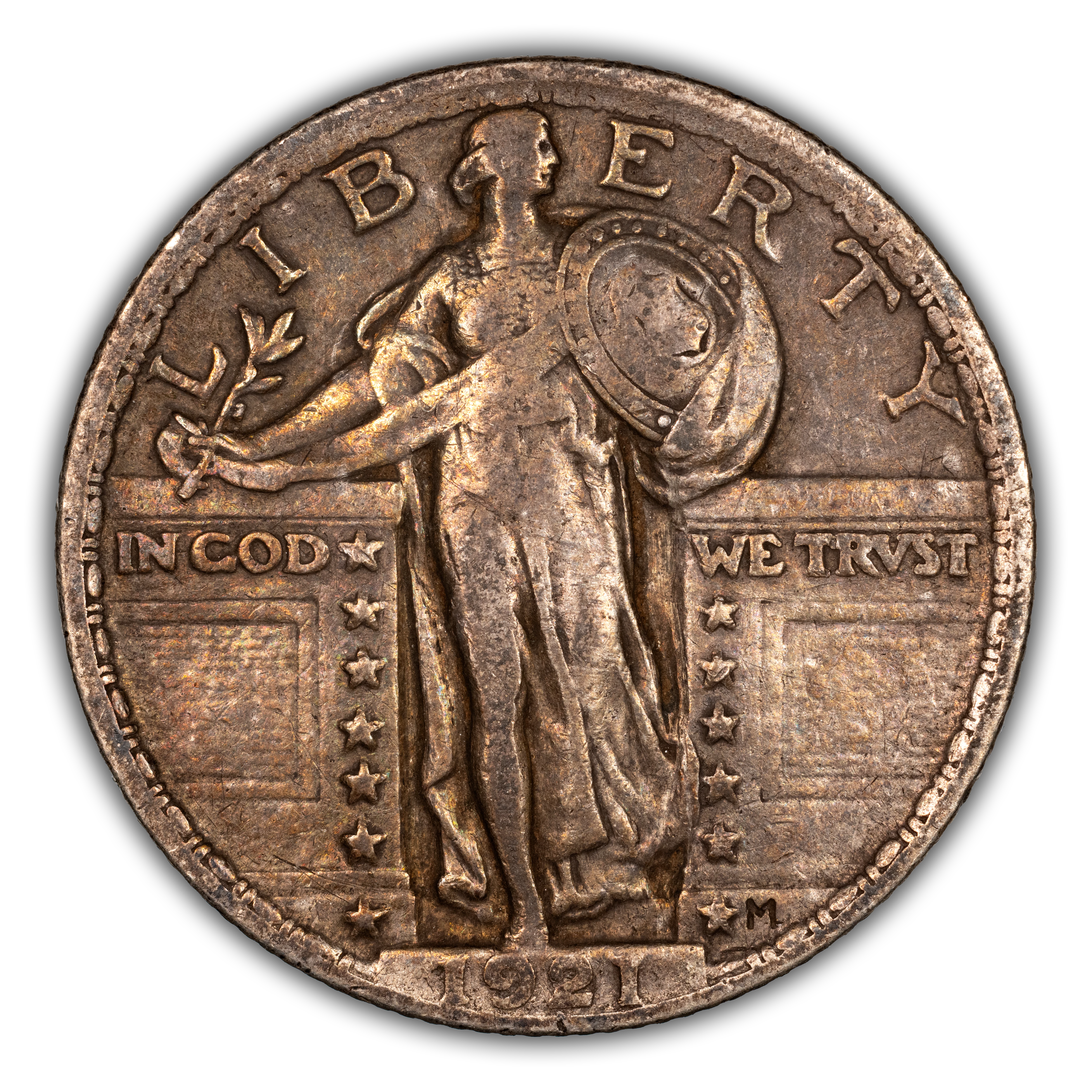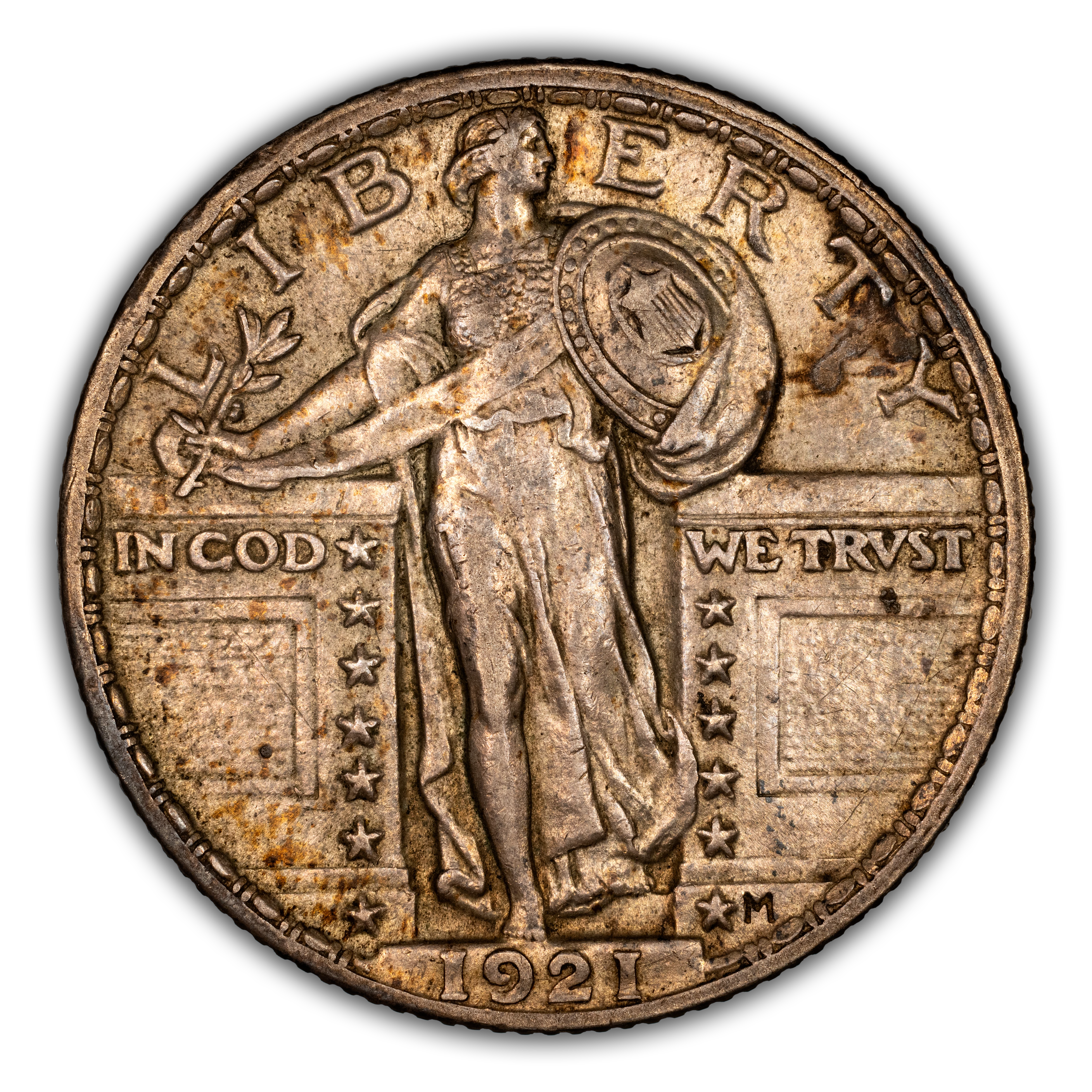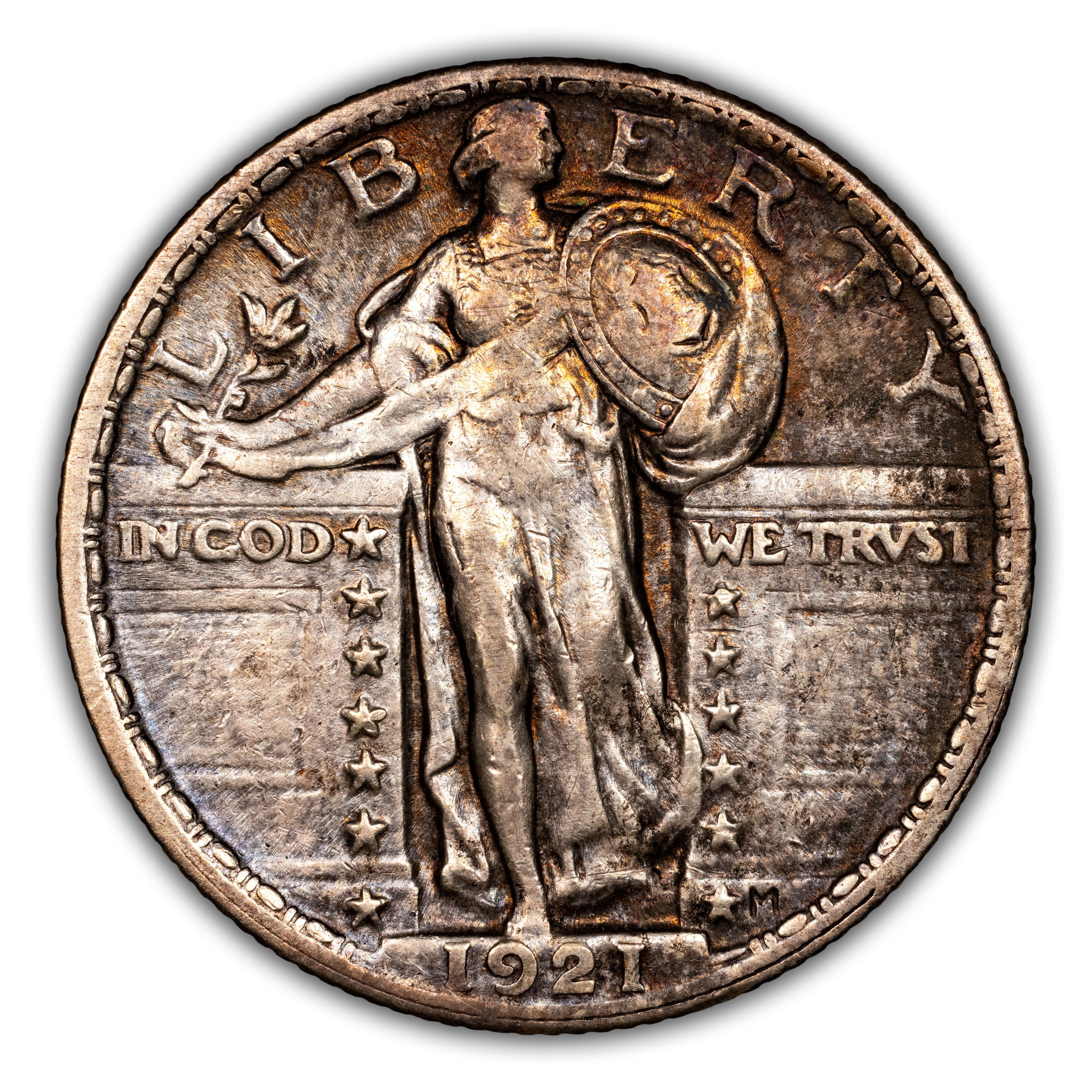 The 1921 Standing Liberty Quarter is a popular key date in the series and possibly the best Philadelphia date of all the Type 2’s. Collectible in all grades with a gradual increase in value from circulated to uncirculated where it becomes truly scarce. Very scarce as a gem in MS65 and MS66, then it takes a jump into MS67 in which that grade or finer is considered rare.