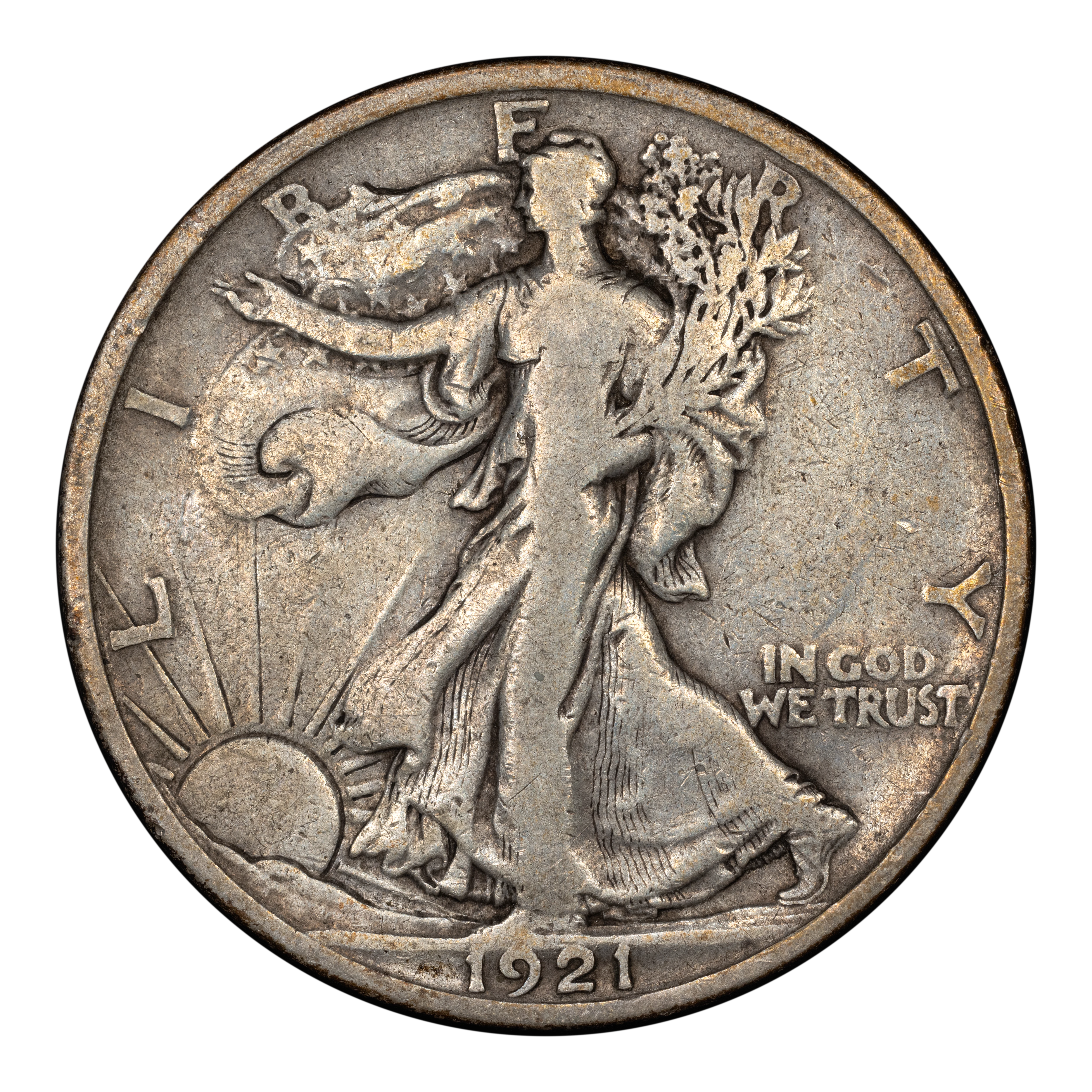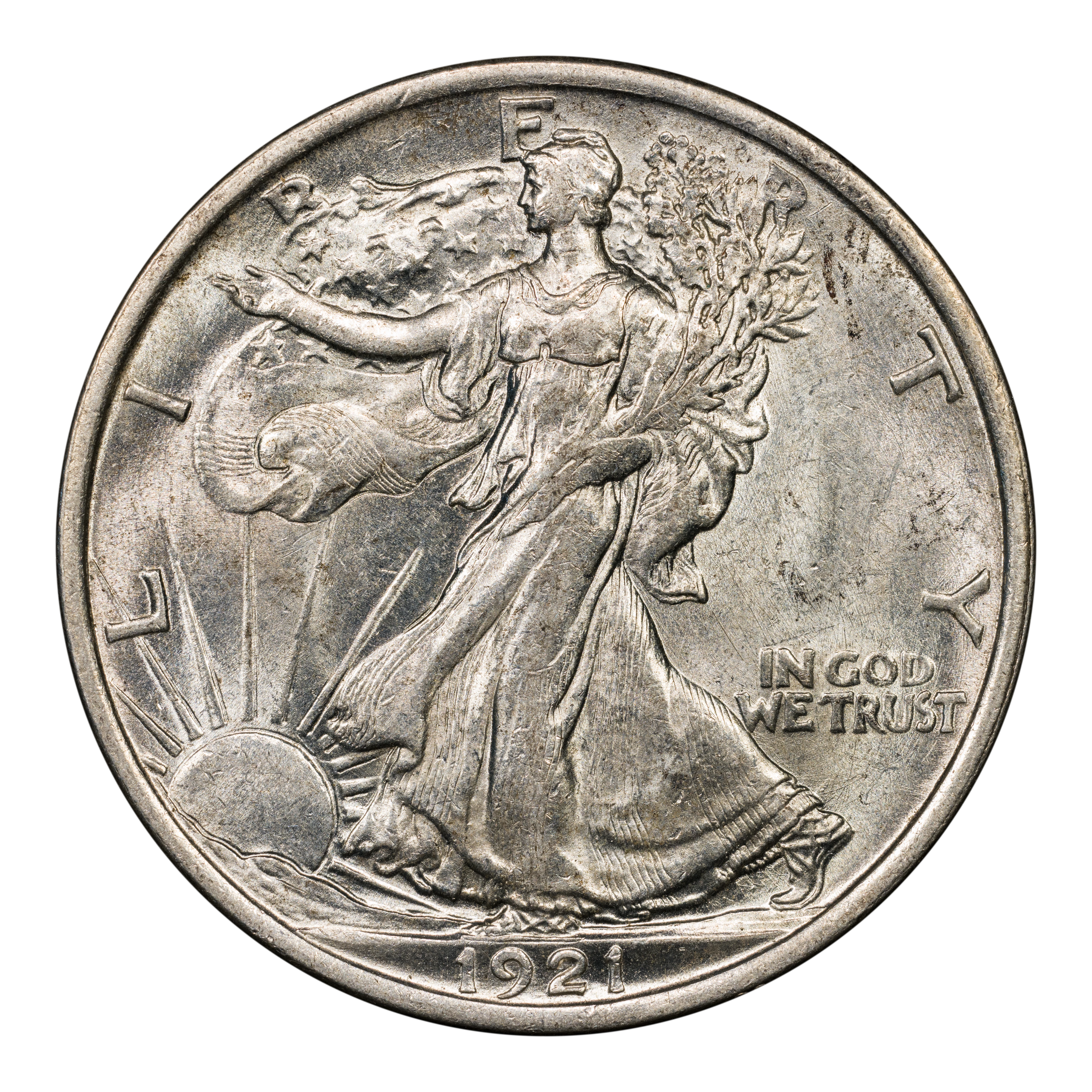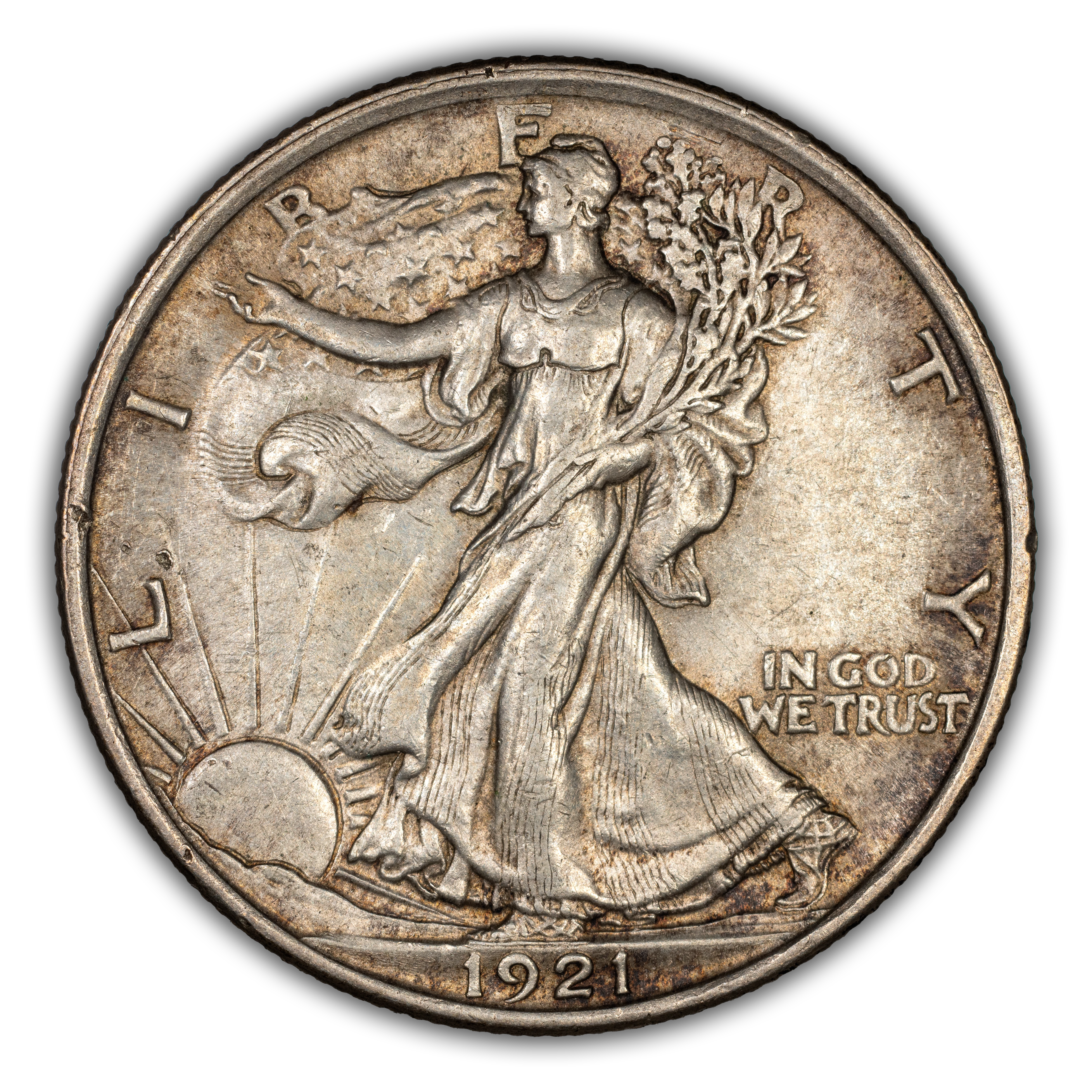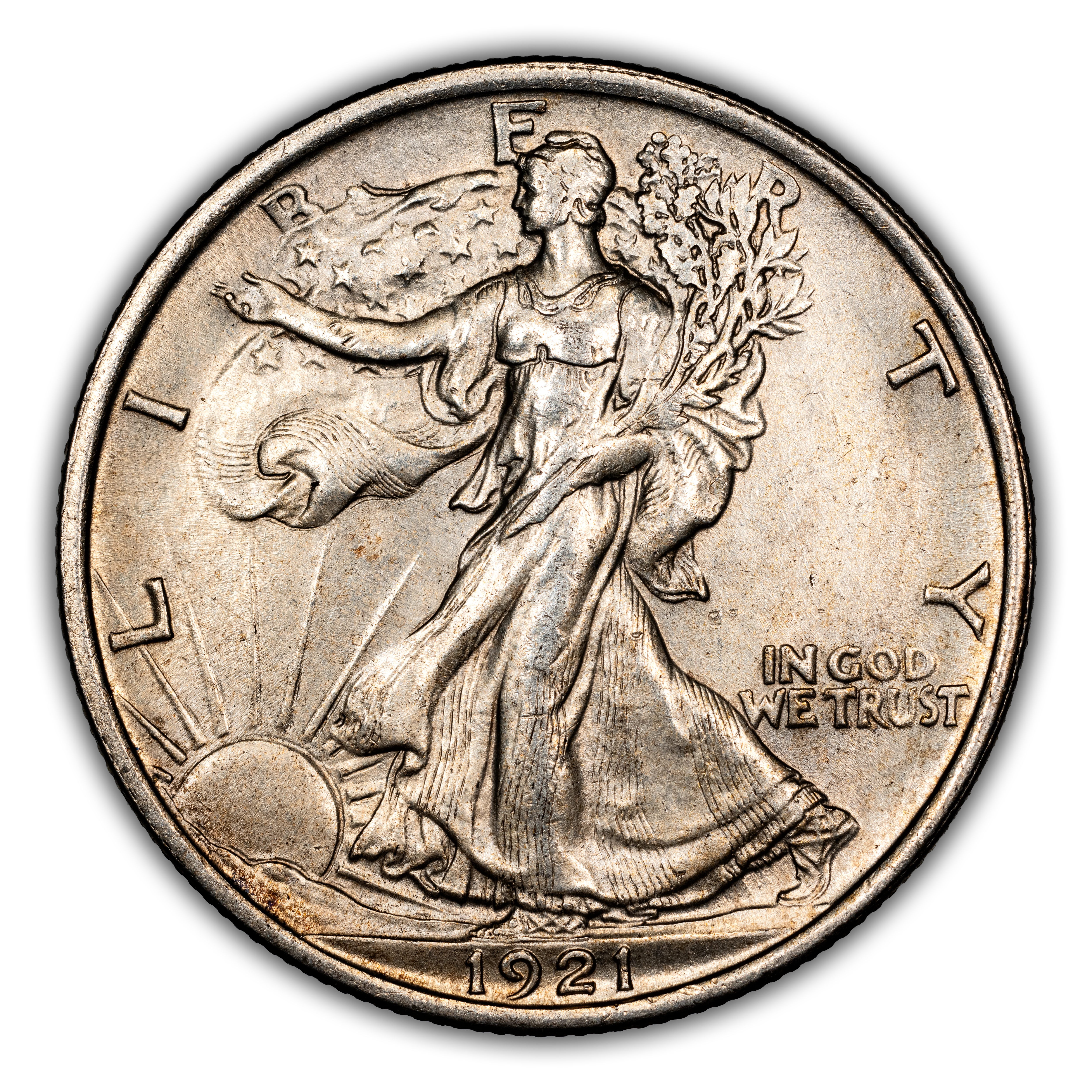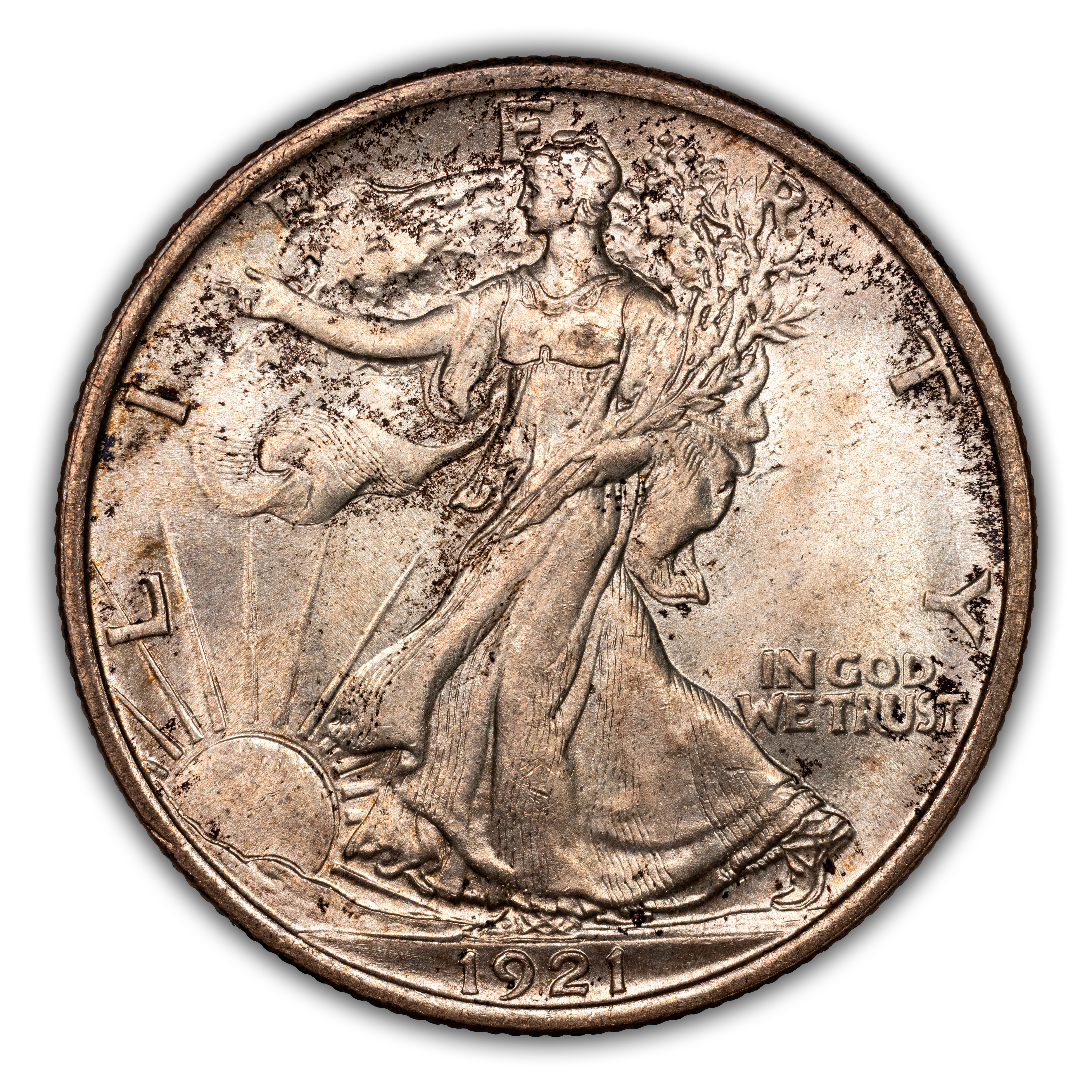 The 1921 Philadelphia Mint Walkers come from a very low relative mintage of just 246,000. Only the Denver Mint issue of this date had a lower mintage. The 1921 is very scarce in circulated grades, very rare in Mint State and not a gem rarity like its counterpart minted in San Francisco that same year. It is known for a very strong strike, with many having nice luster and toning.