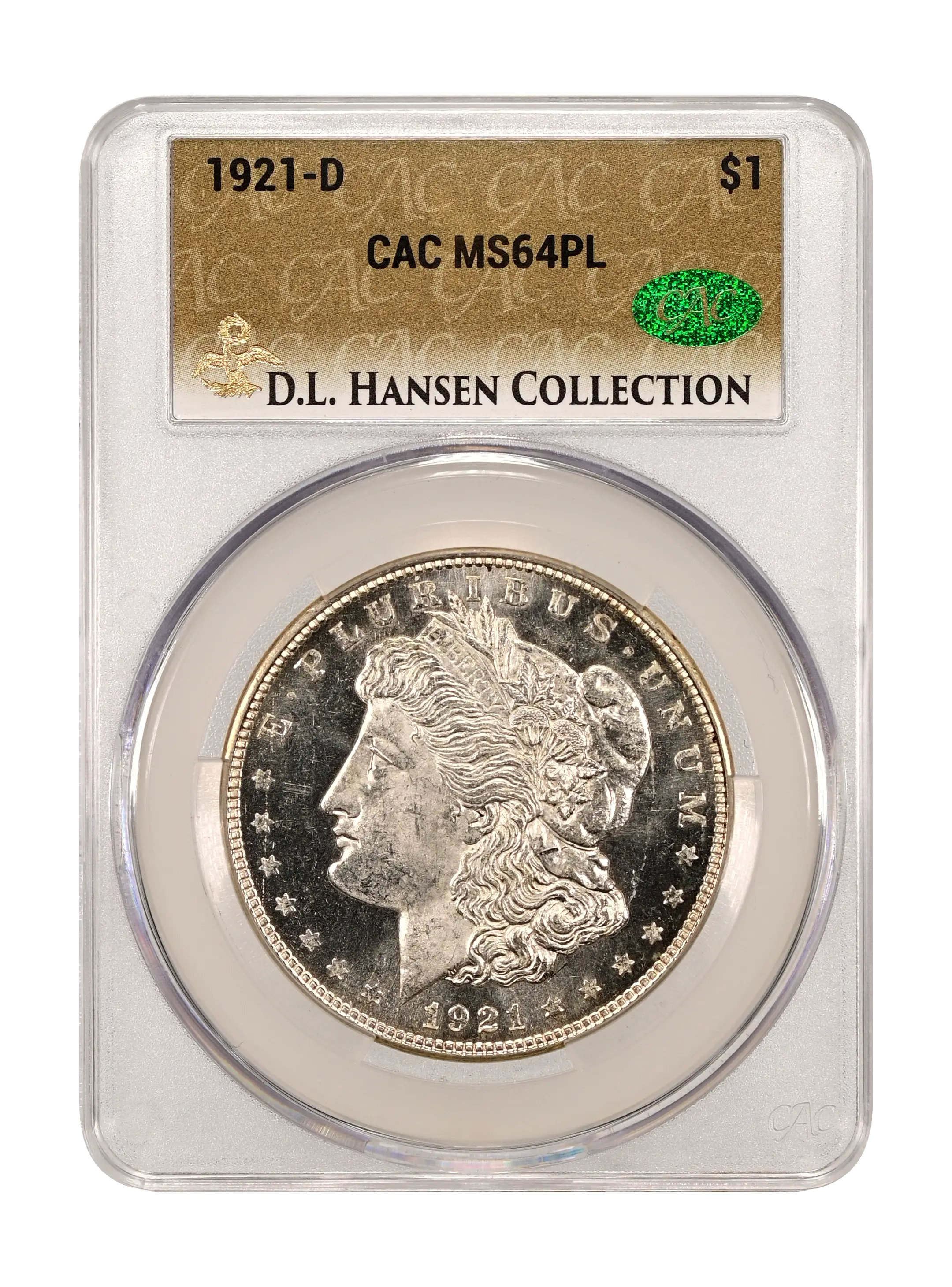 1921-D $1 PCGS/CAC MS63 PL - Rare Prooflike Morgan