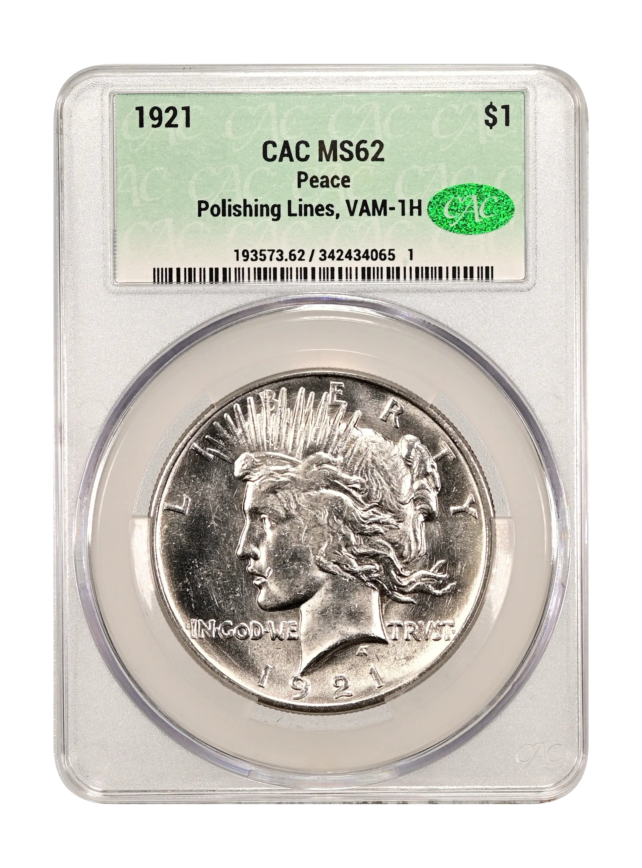 1921 Peace $1 Polishing Lines, VAM-1H CAC MS62