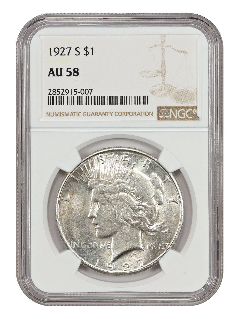 Reverse: Perched eagle standing on a rock facing the right with UNITED STATES oF AMERICA and E PLURIBUS UNUM at the top periphery. The denomination of ONE DOLLAR left and right of the eagle's tail and the word PEACE at the bottom. Mintmark, if any, appears below the word ONE on the left side.