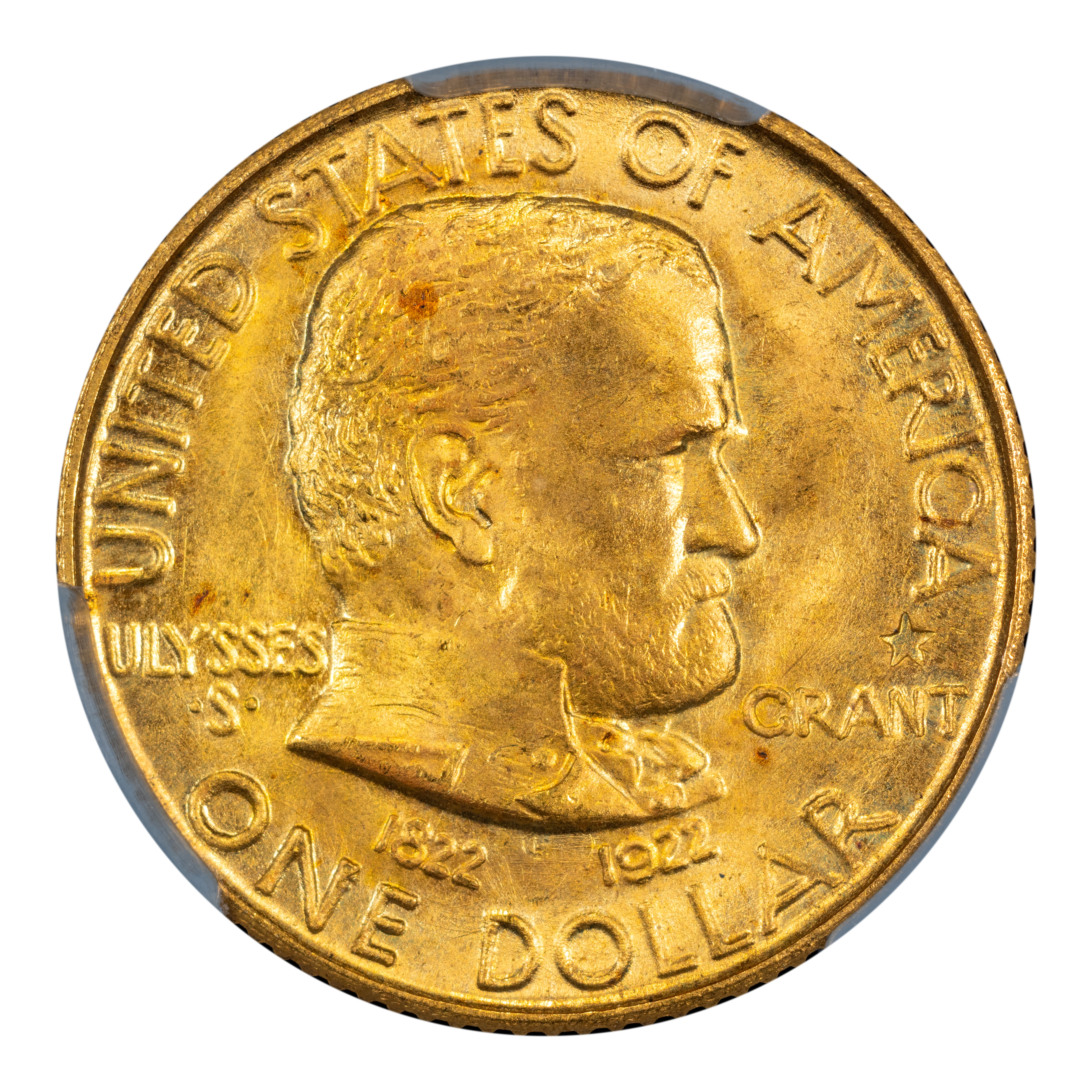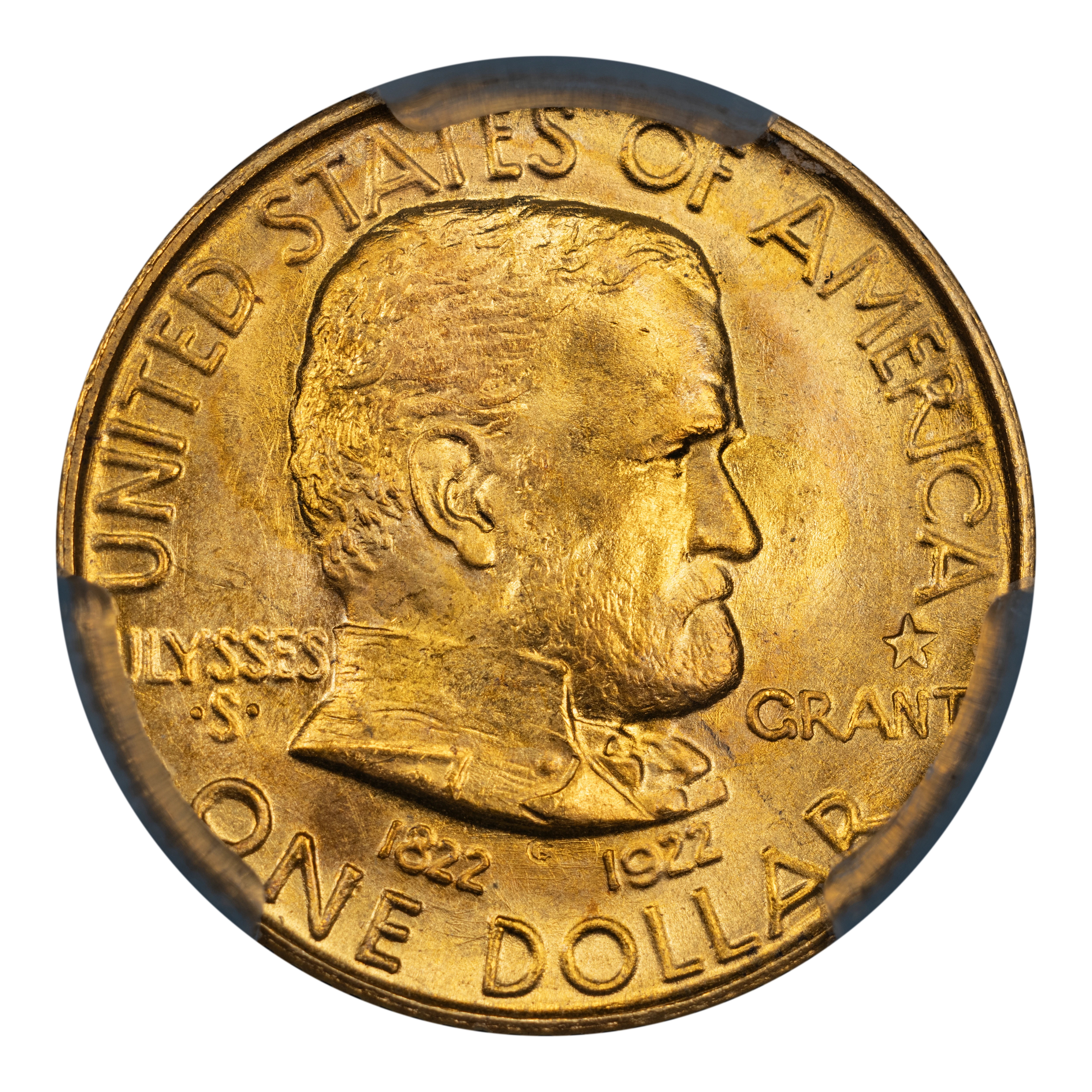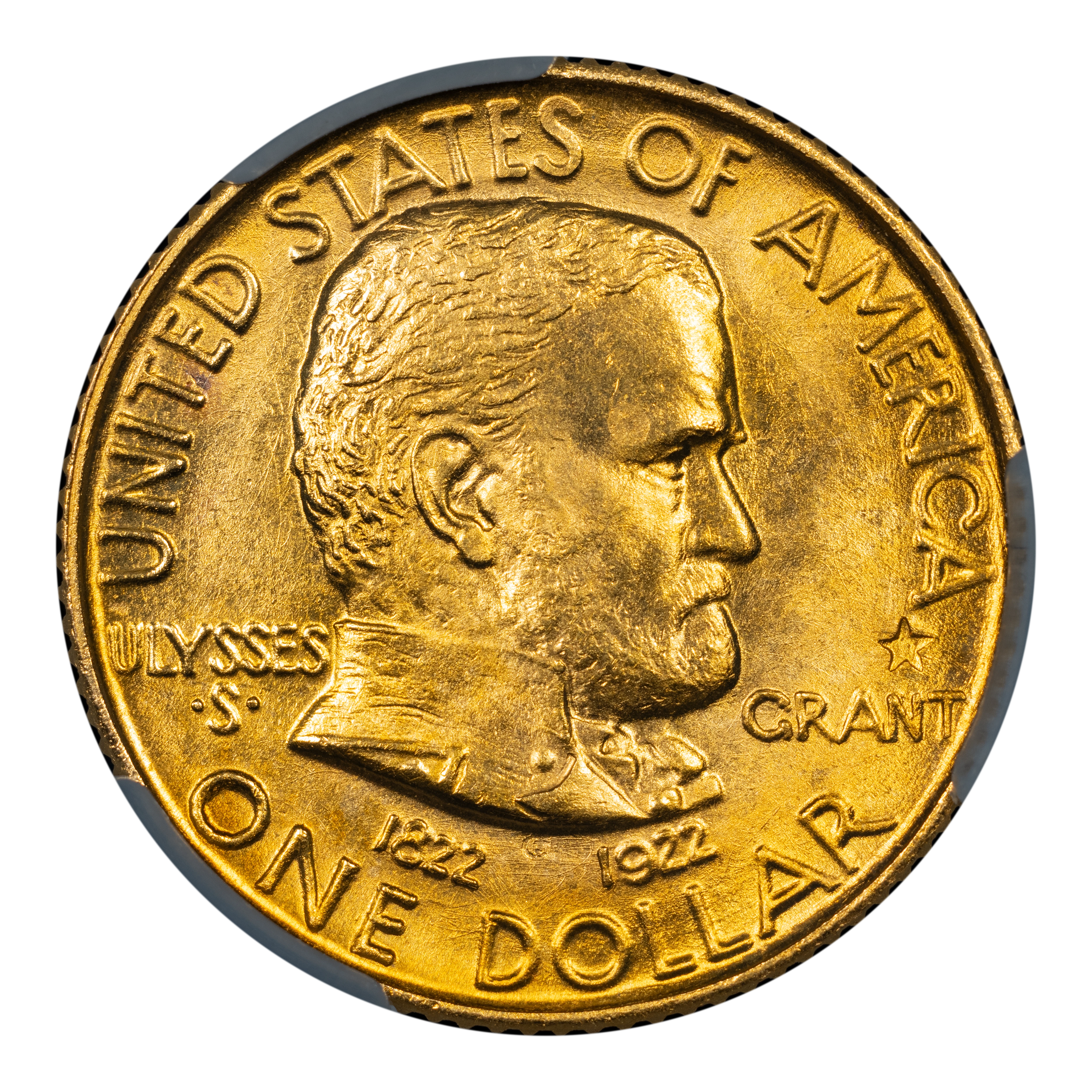 The 1922 Grant With Star gold commemorative dollar honors the 100th anniversary of Ulysses S. Grant's birth. The former Civil War general and president is honored on this coin with an obverse portrait, designed by Laura Gardin Fraser.