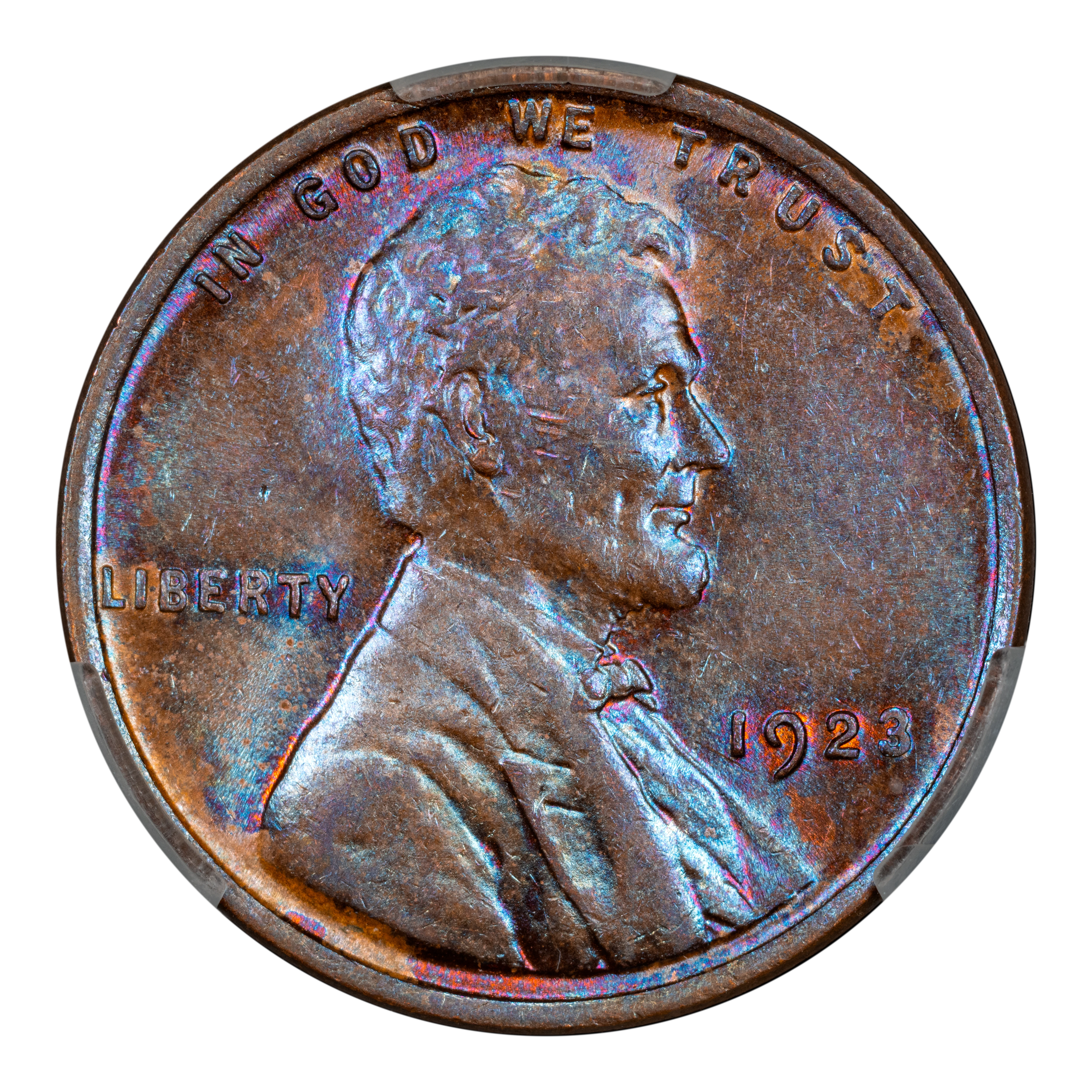 The 1923 Lincoln cent is a common coin in circulated grades and offers ample supplies in Mint State grades up through the MS65, even in full Red. Many more pennies were made at the Philadelphia Mint in 1923 than during the low-mintage year of 1921, yet the 1923 cent still has the lowest mintage of any other Philly one-cent coin from the 1920s.