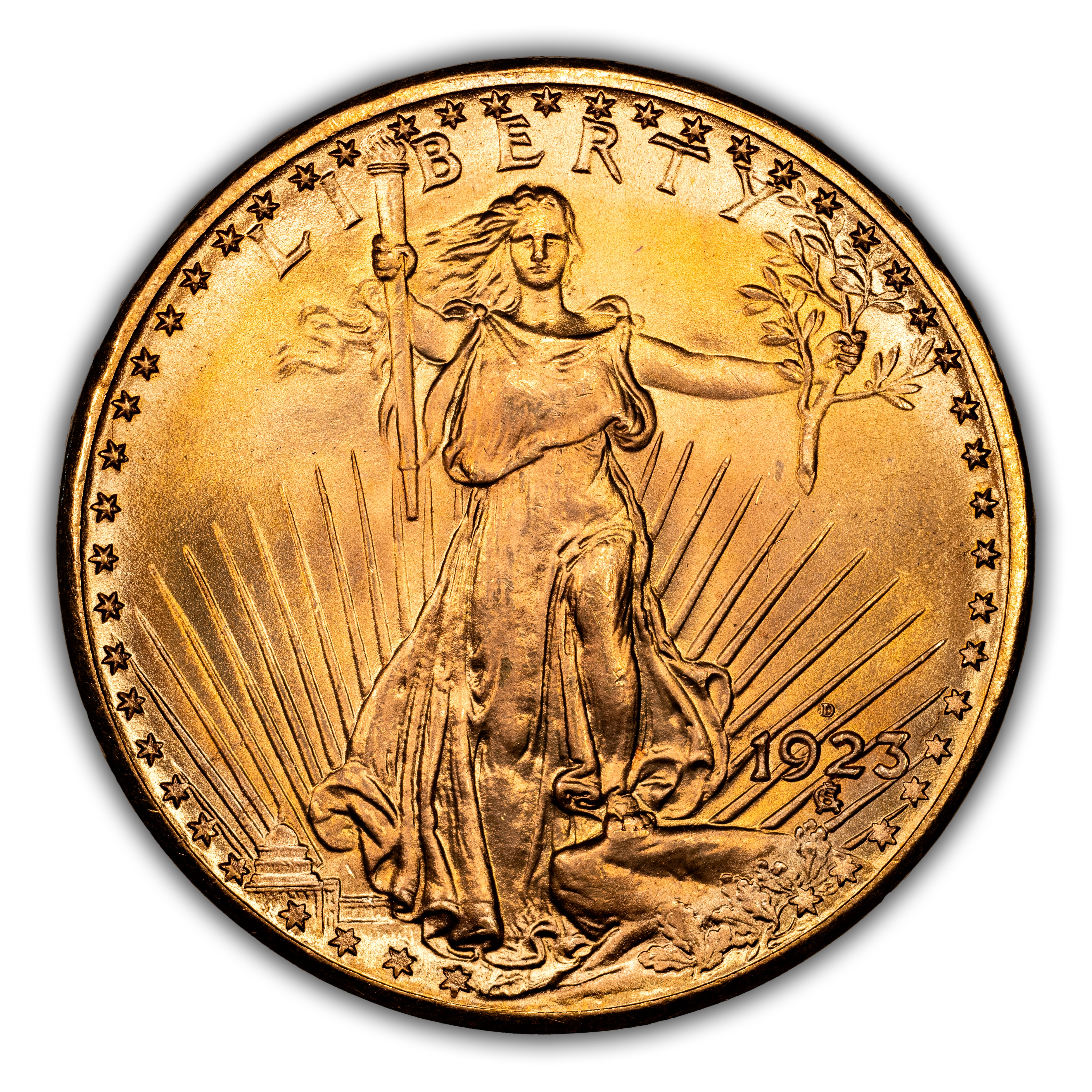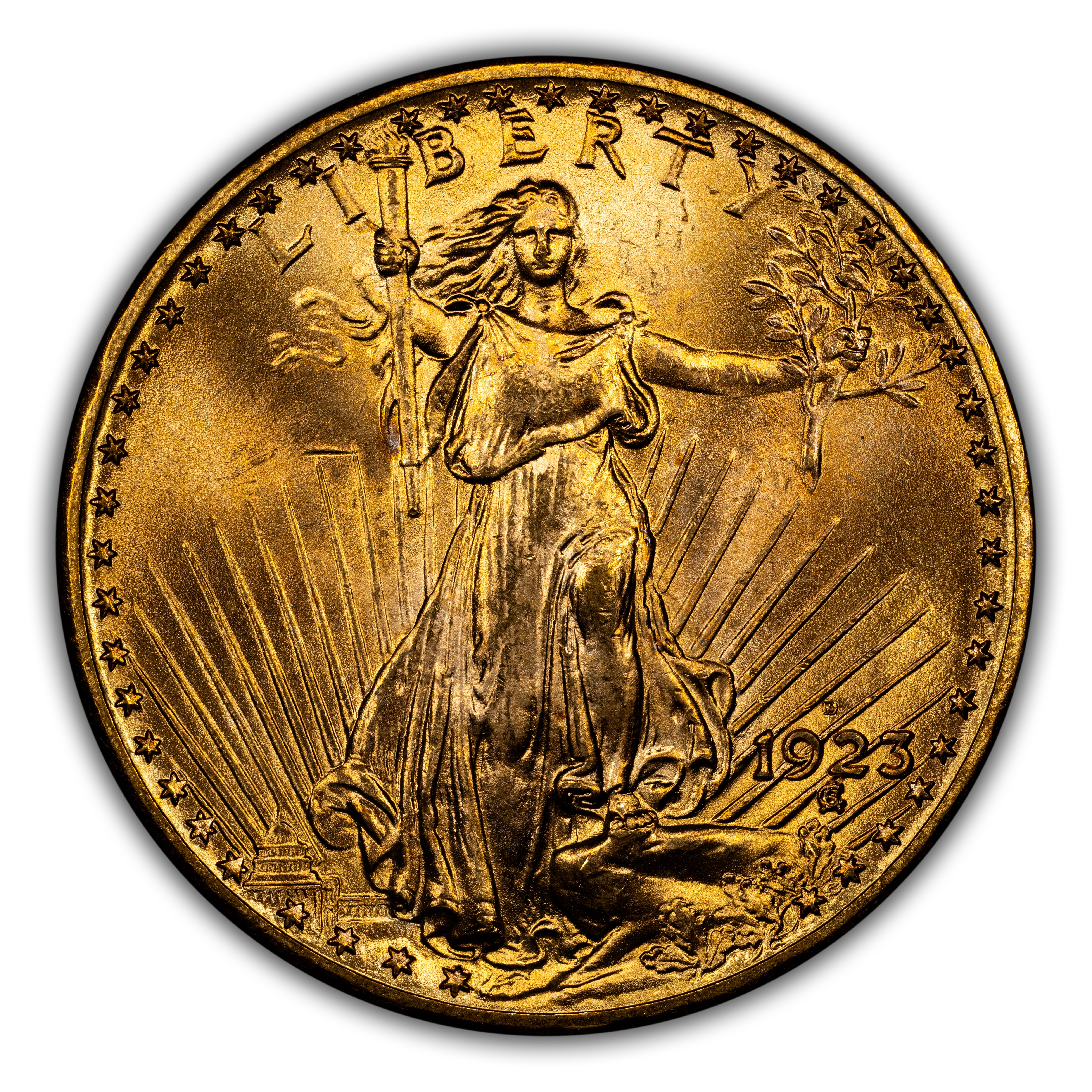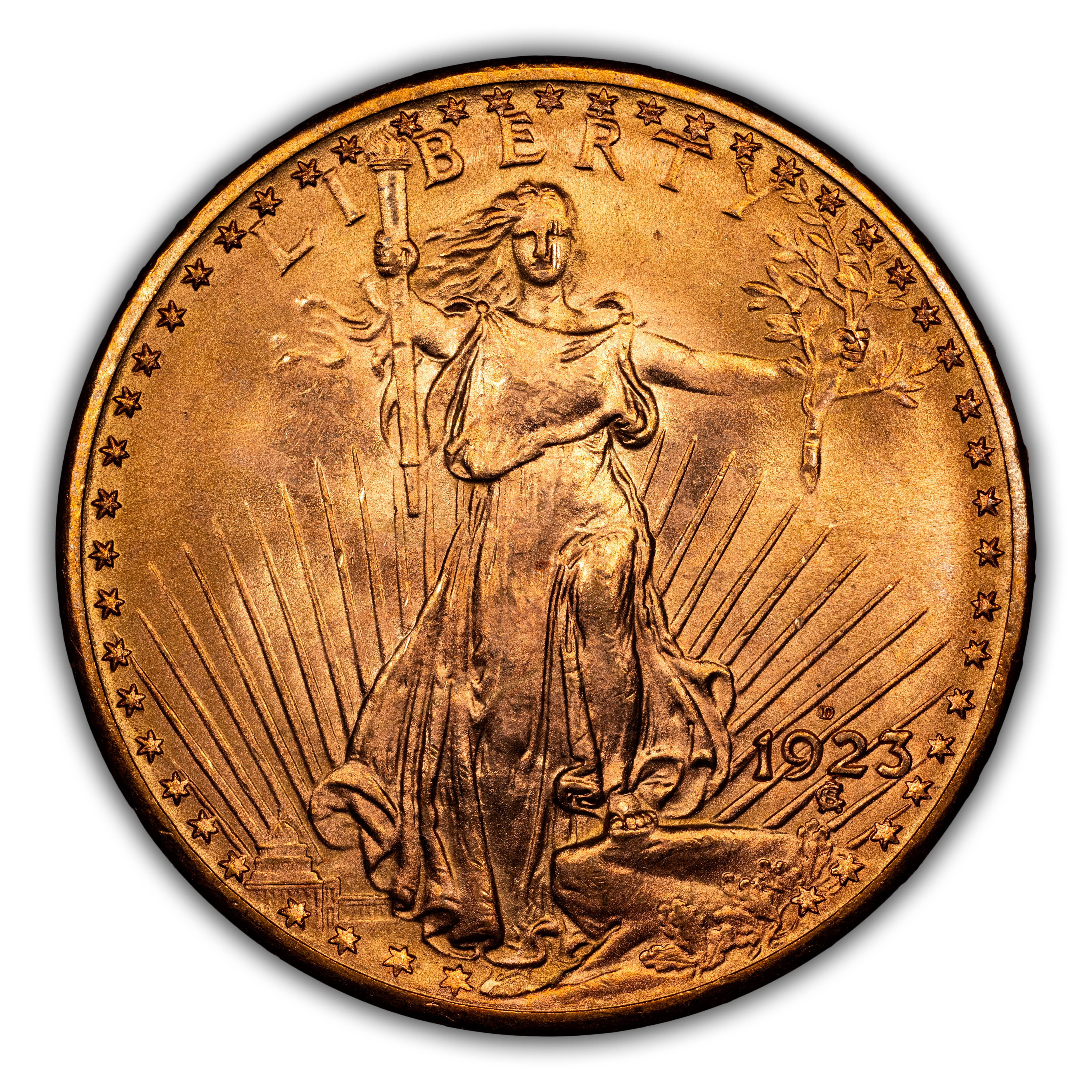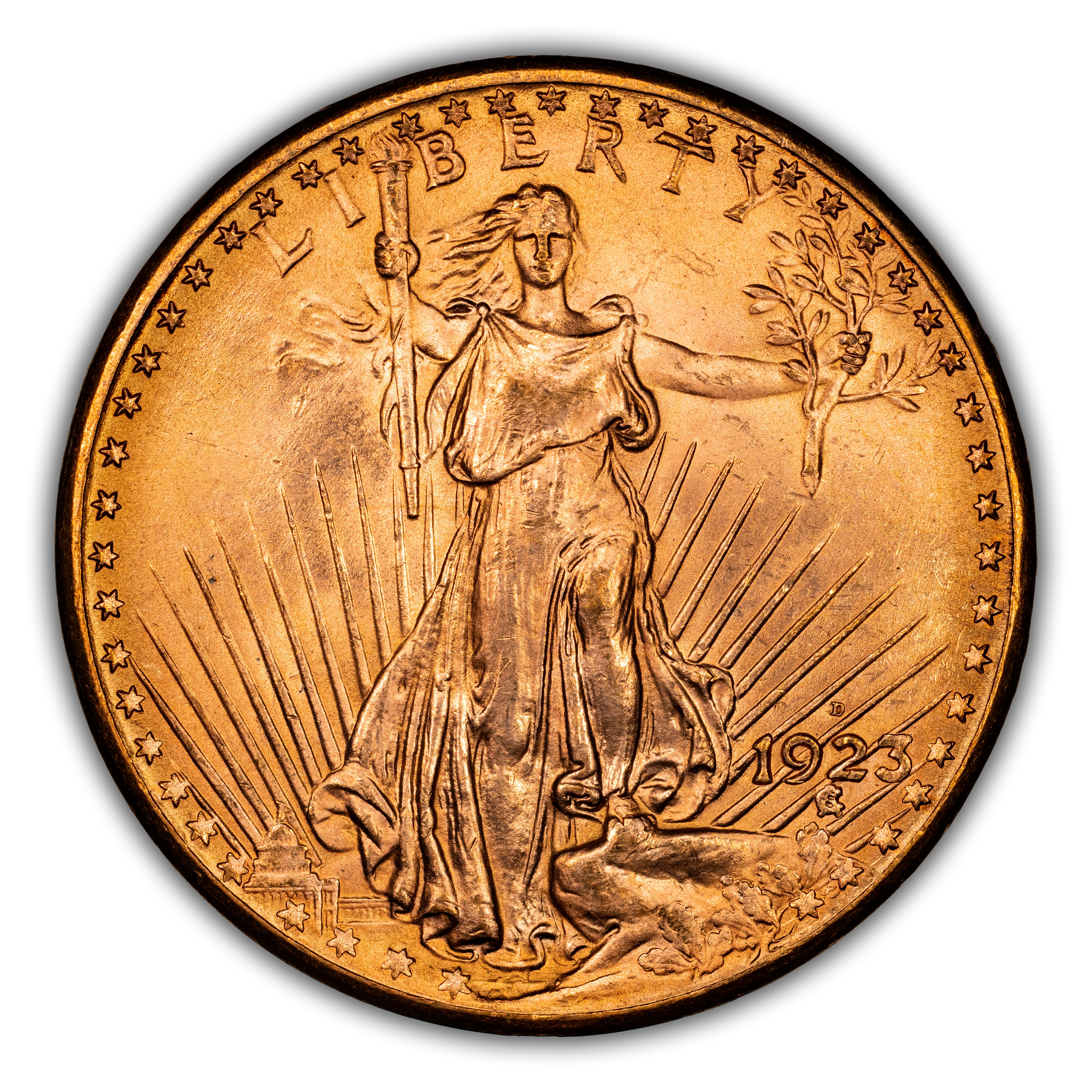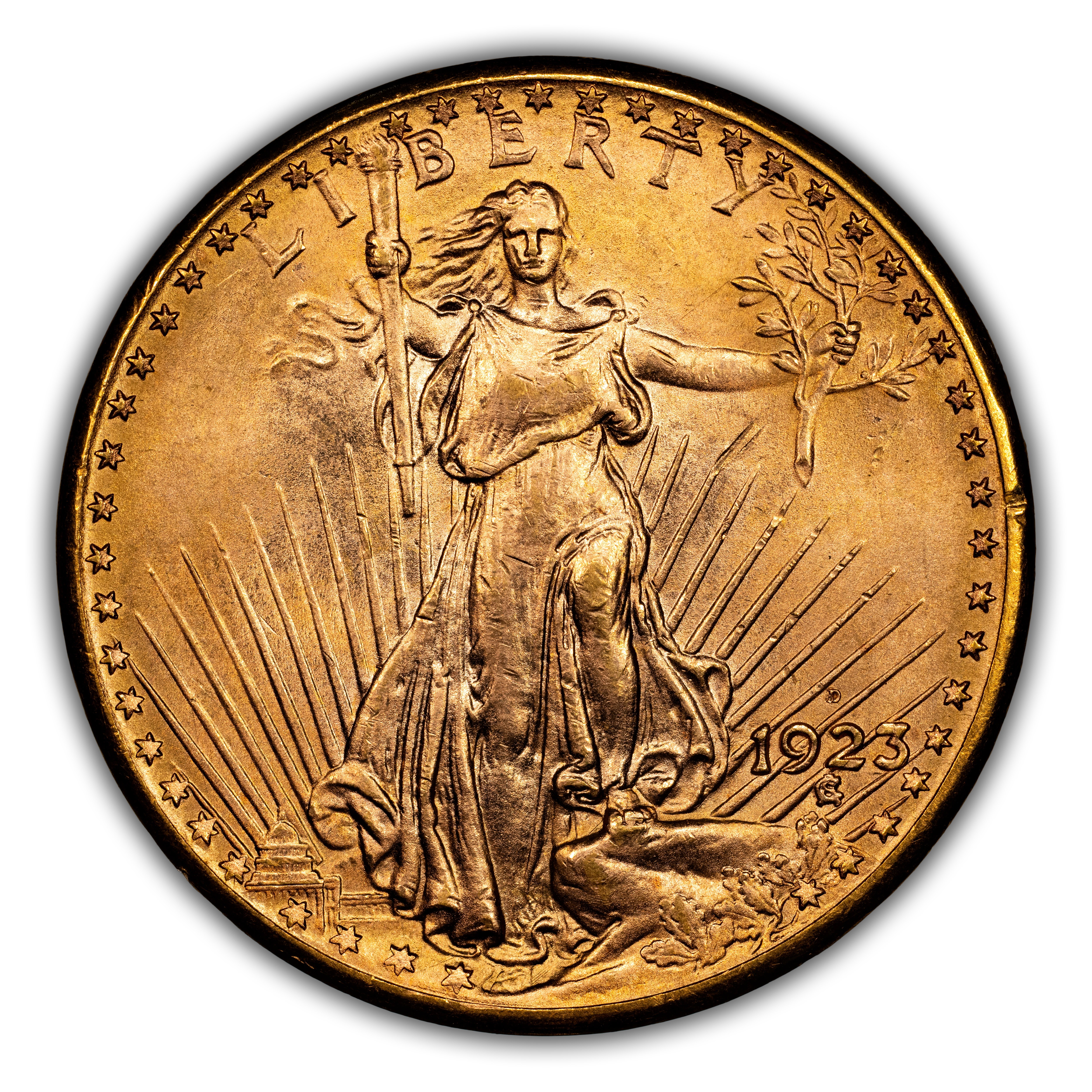 The 1923-D Saint-Gaudens double eagle ranks as one of the most common issues in the series and certainly one of the most frequently encountered branch-mint pieces. Even Gems are easy to locate, with MS66s proving plentiful and even a few dozen or so MS67s appearing on the market from time to time. Most uncirculated examples showcase great luster and strike, making for excellent eye appeal.