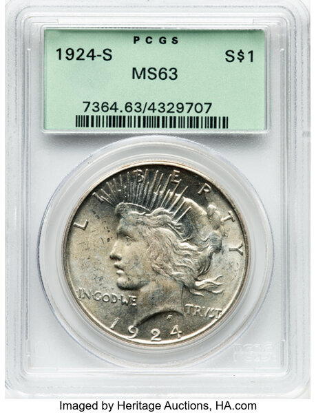 Greysheet/Greensheet prices are wholesale market levels for collectible coins/paper money intended to indicate what a dealer, or wholesale, buyer would pay for the described item in the specified grade. Greysheet/Greensheet represent "sight-seen" values based on a buyer's in-hand review. The actual value can be more or less than this depending on factors including eye appeal and market timing.