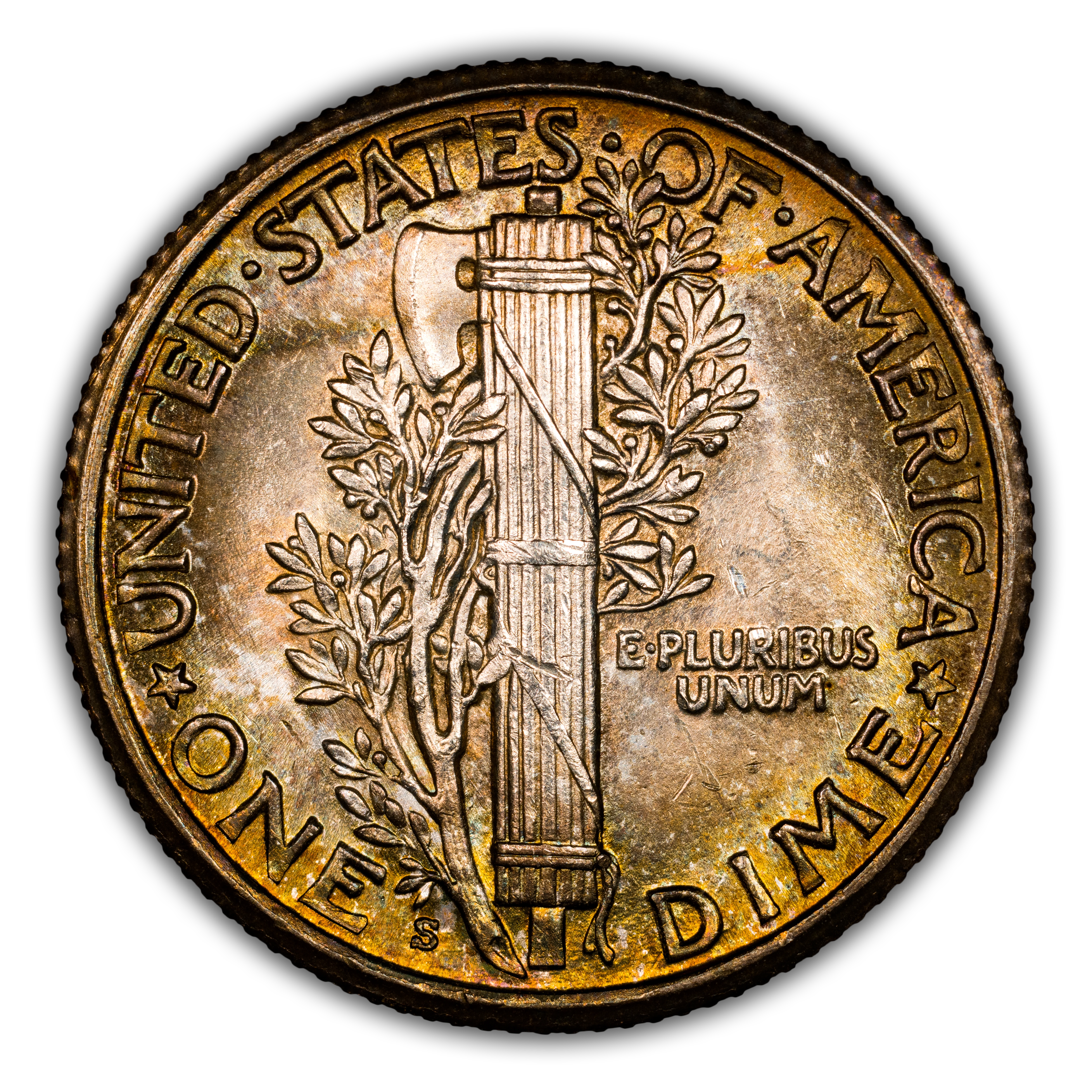 The 1924-S Mercury is common in circulated grades and scarcer in the Mint State level, with Gems particularly tough, regardless of whether or not it has earned a Full Bands designation. All pieces grading higher than MS65 are decidedly rare.