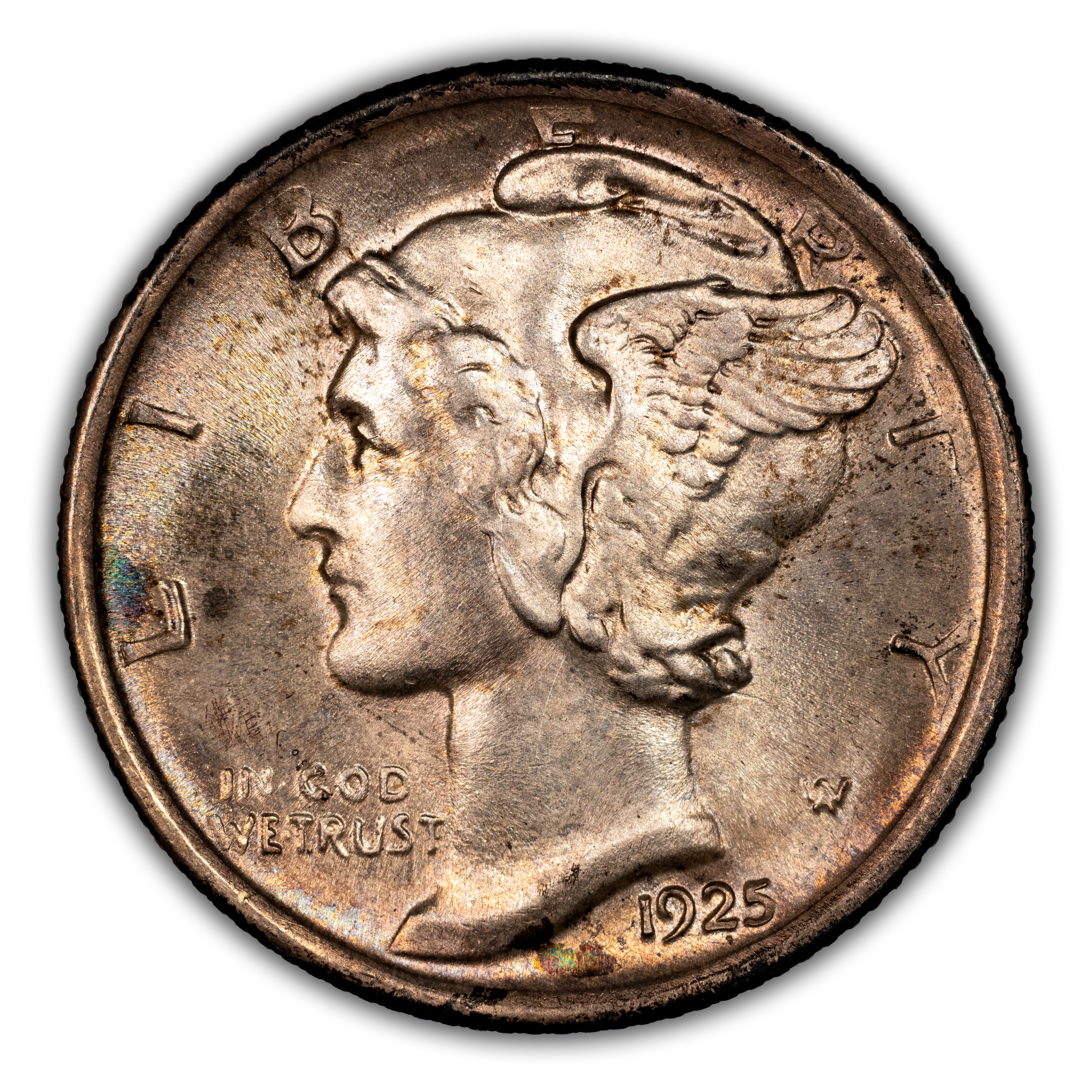 The 1925-D Mercury dime is a common Denver-mint issue in the lower circulated grades but becomes much more difficult in grades of XF to AU or better. In uncirculated grades, 1925-D Mercury dimes are tough with those in the Gem levels -- especially MS66 and above -- very scarce. Many of the surviving uncirculated specimens are quite well struck, and this lends to a small but significant number of Full Bands examples.