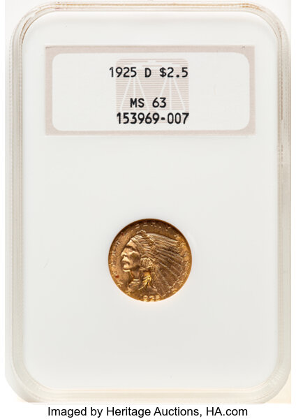 <B>1925-D $2 1/2 MS65+ NGC.</B></I> CDN: $1,320 Whsle. Bid for NGC/PCGS MS65. Mintage 578,000. ...