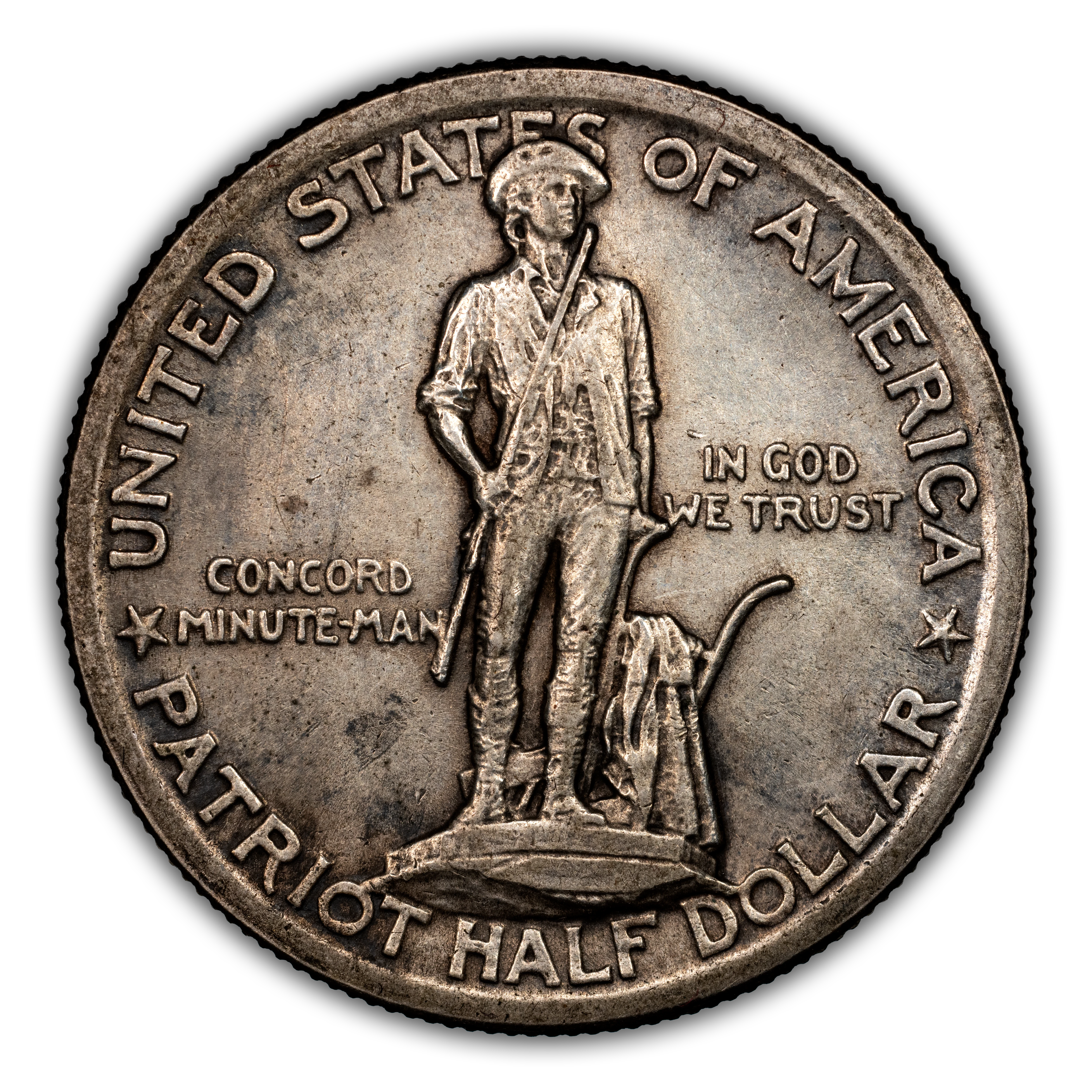 The Lexington half dollar remembers the shot heard 'round the world, when in 1775 the proverbial first gunshot fired during the start of the American Revolution at the Old North Bridge in Concord, Massachusetts, and the first British soldiers were wounded in the battles of Lexington and Concord. More than 160,000 coins were minted, and a whopping 60,000 were sold for $1 as souvenirs during associated 150th anniversary events in April 1925. Others were distributed through sales points in other areas of New England and were sold to collectors throughout other parts of the United States.