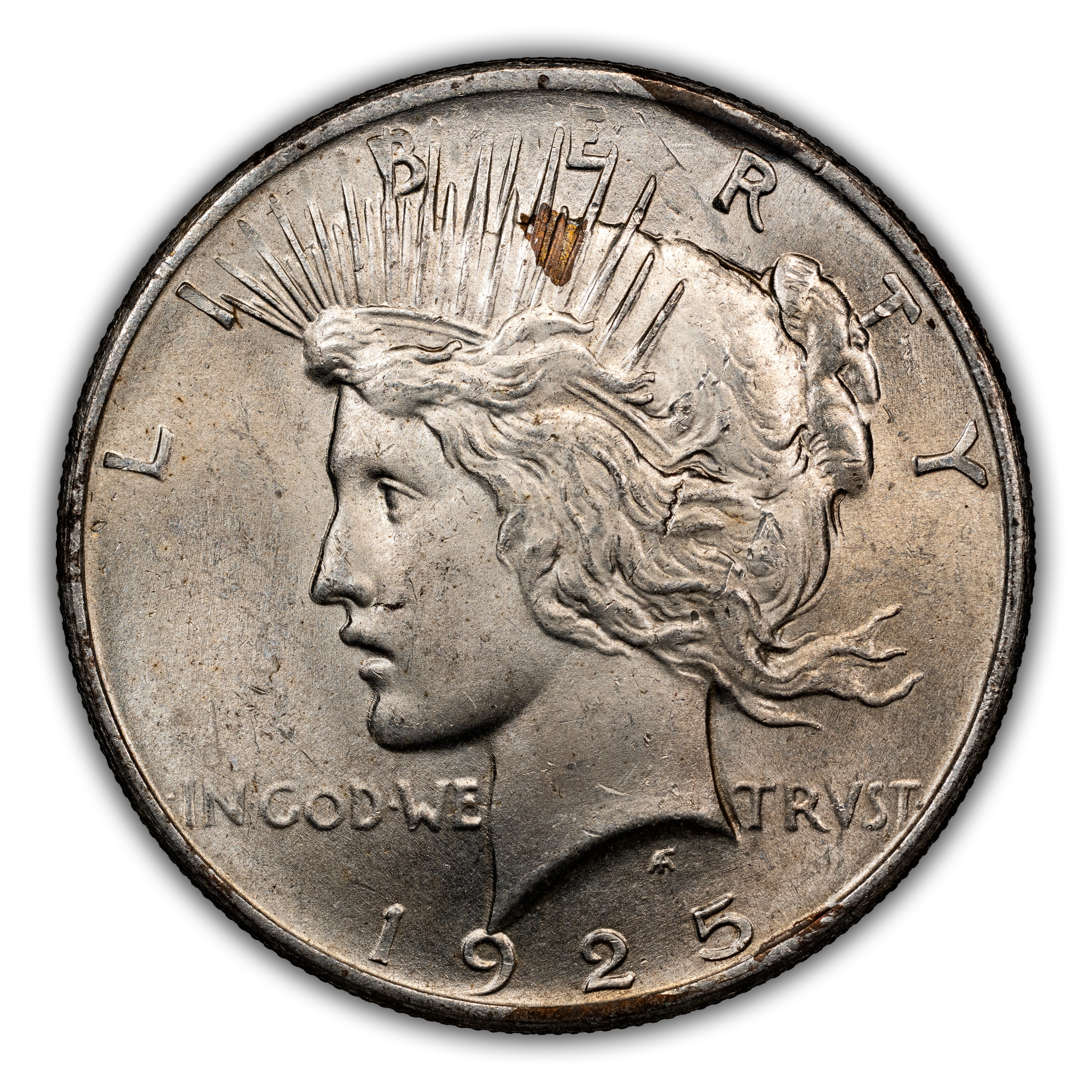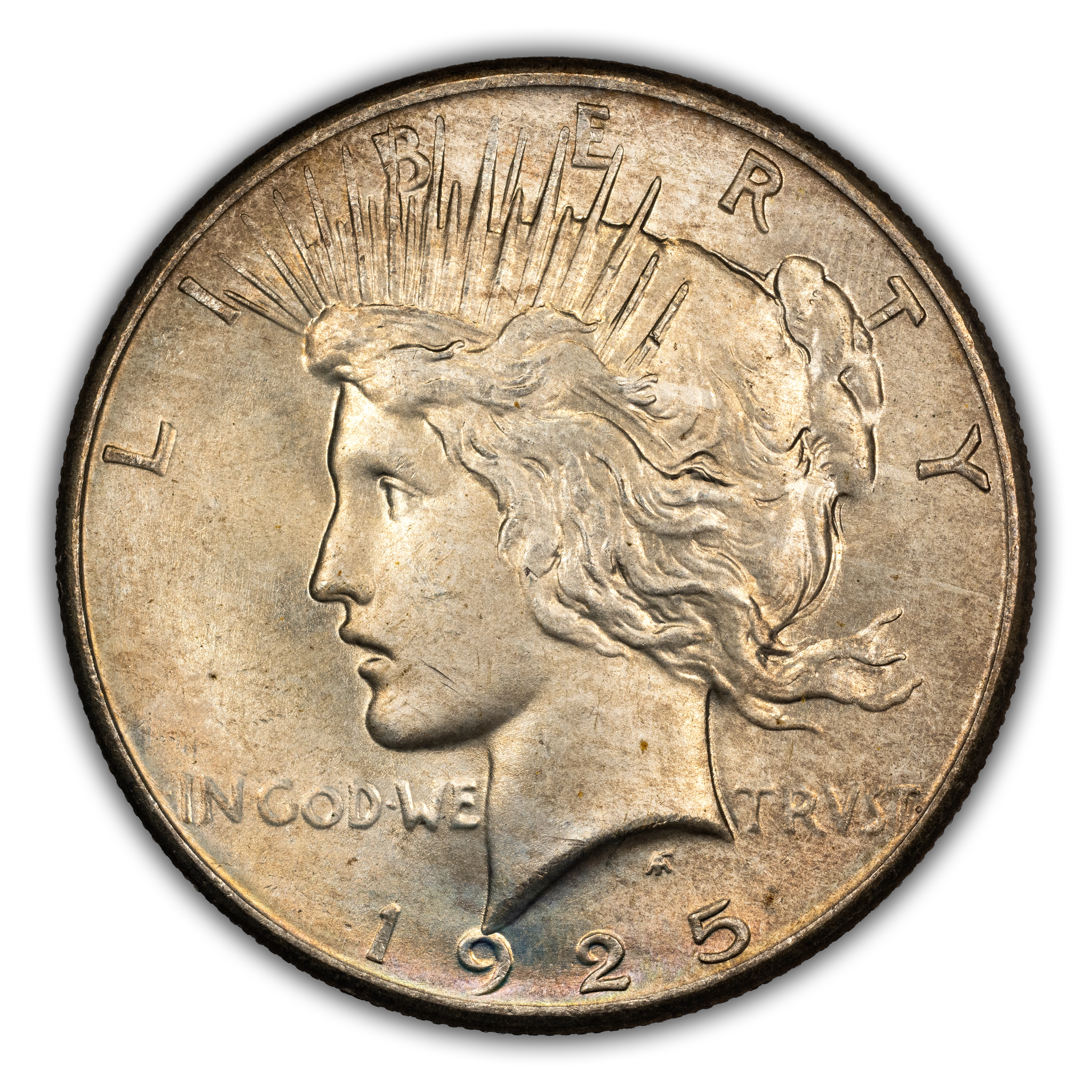 The 1925 Peace Dollar is a common date, nearly on par with the 1924 in terms of overall mintage; but not nearly as common as the 1922 and 1923.Luster and strike are incredible for this amazing type coin issue. Common and very affordable in all grades up through the gem level with MS67 being scarce and MS68 being a condition rarity.