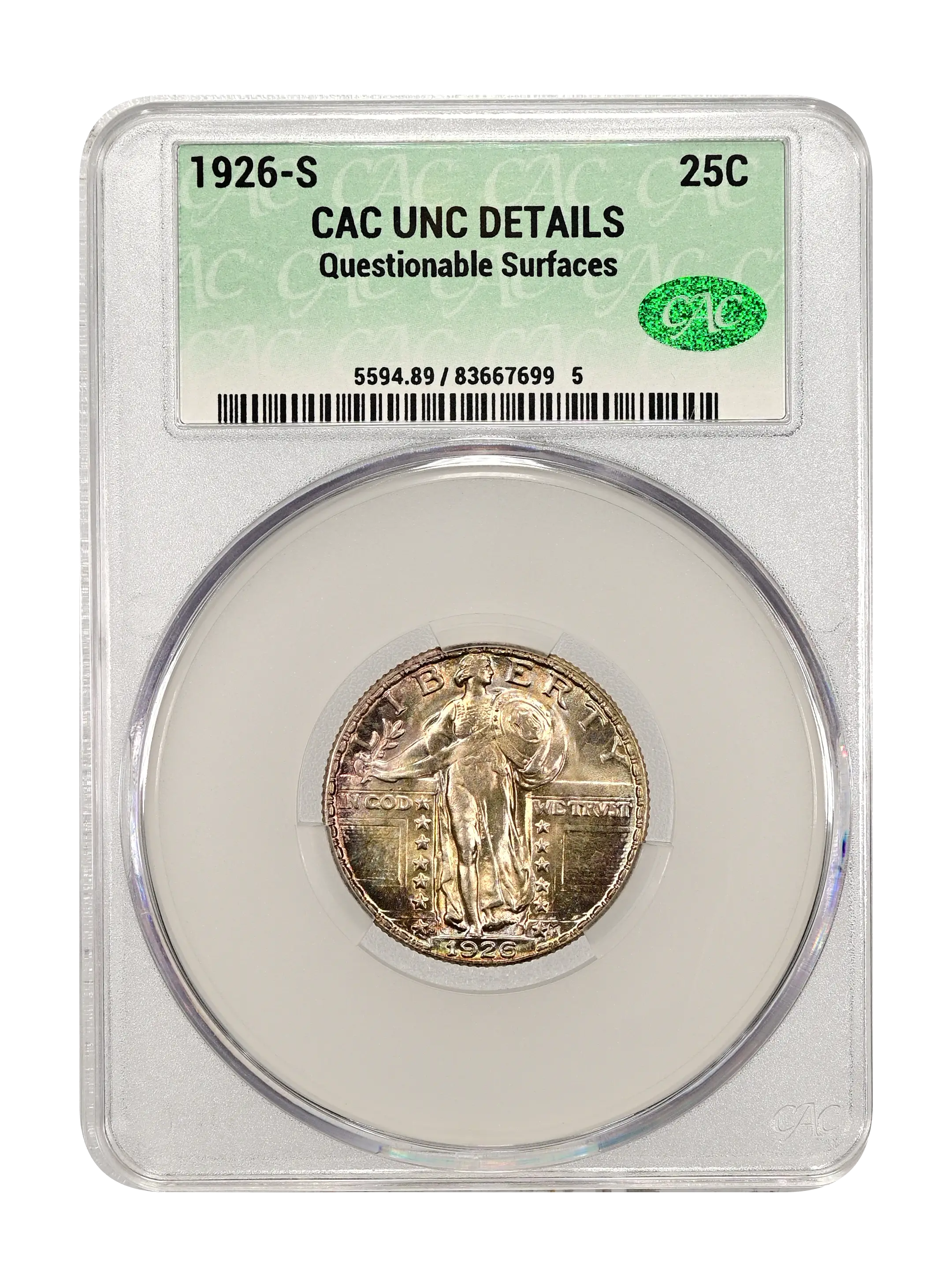 The 1926-S Standing Liberty Quarter is a moderately scarce issue that comes weakly struck; but, with a Full Head this same coin becomes an incredible rarity. Scarce as low as AU up to MS61 where the scarcity starts jumping significantly from MS62 through MS64. This issue with a Full Head is an extreme rarity in gem condition from MS65 up until MS66 where just a handful exist.