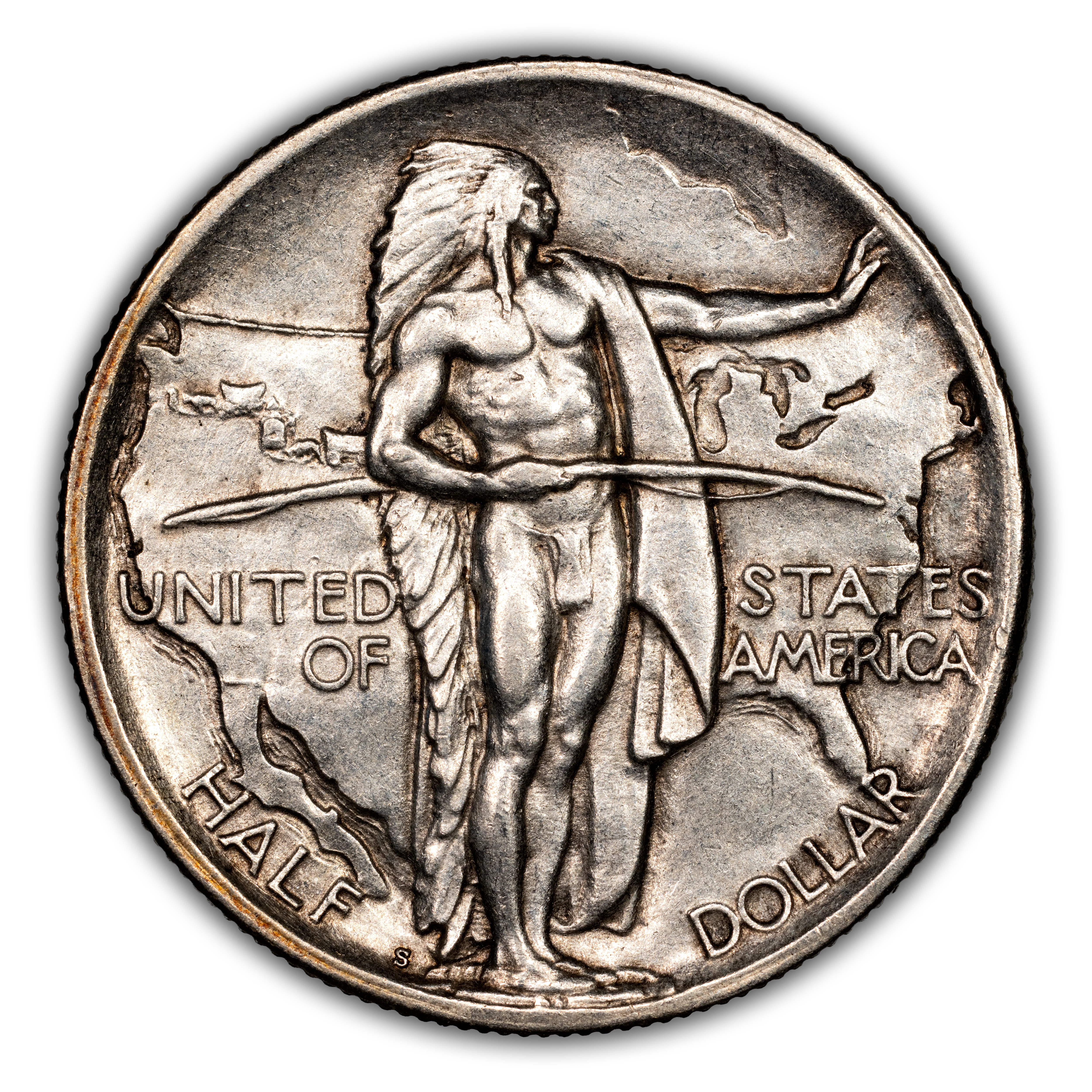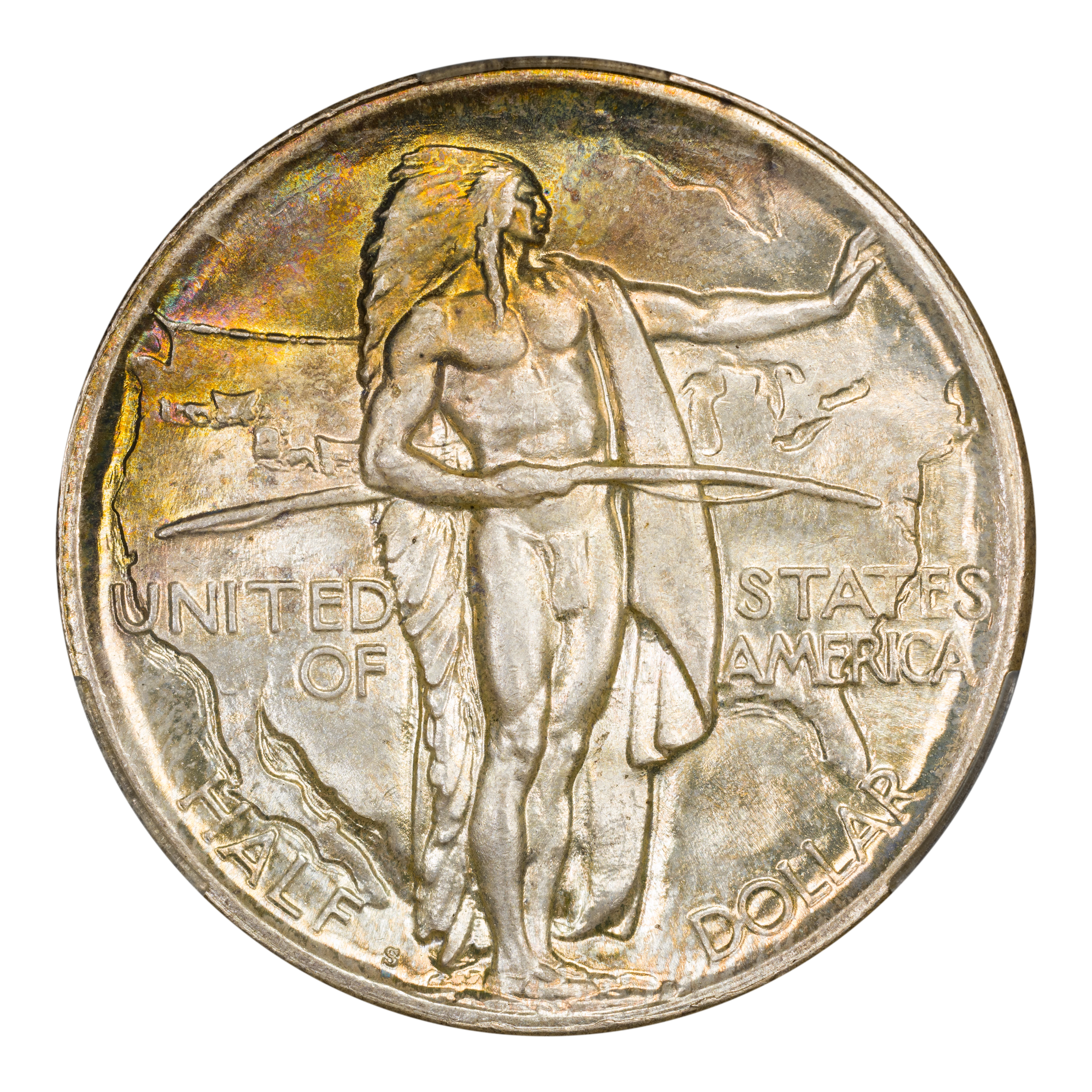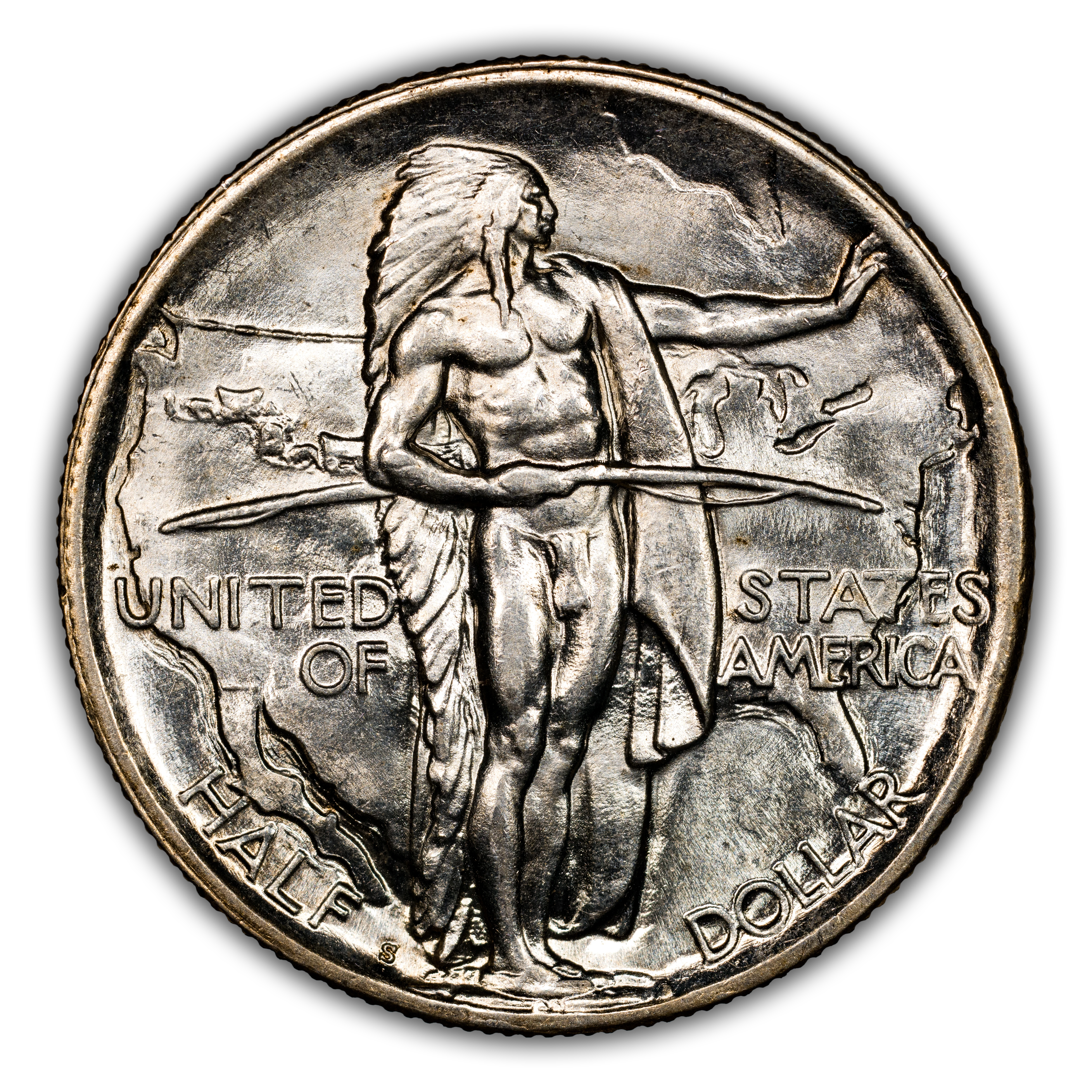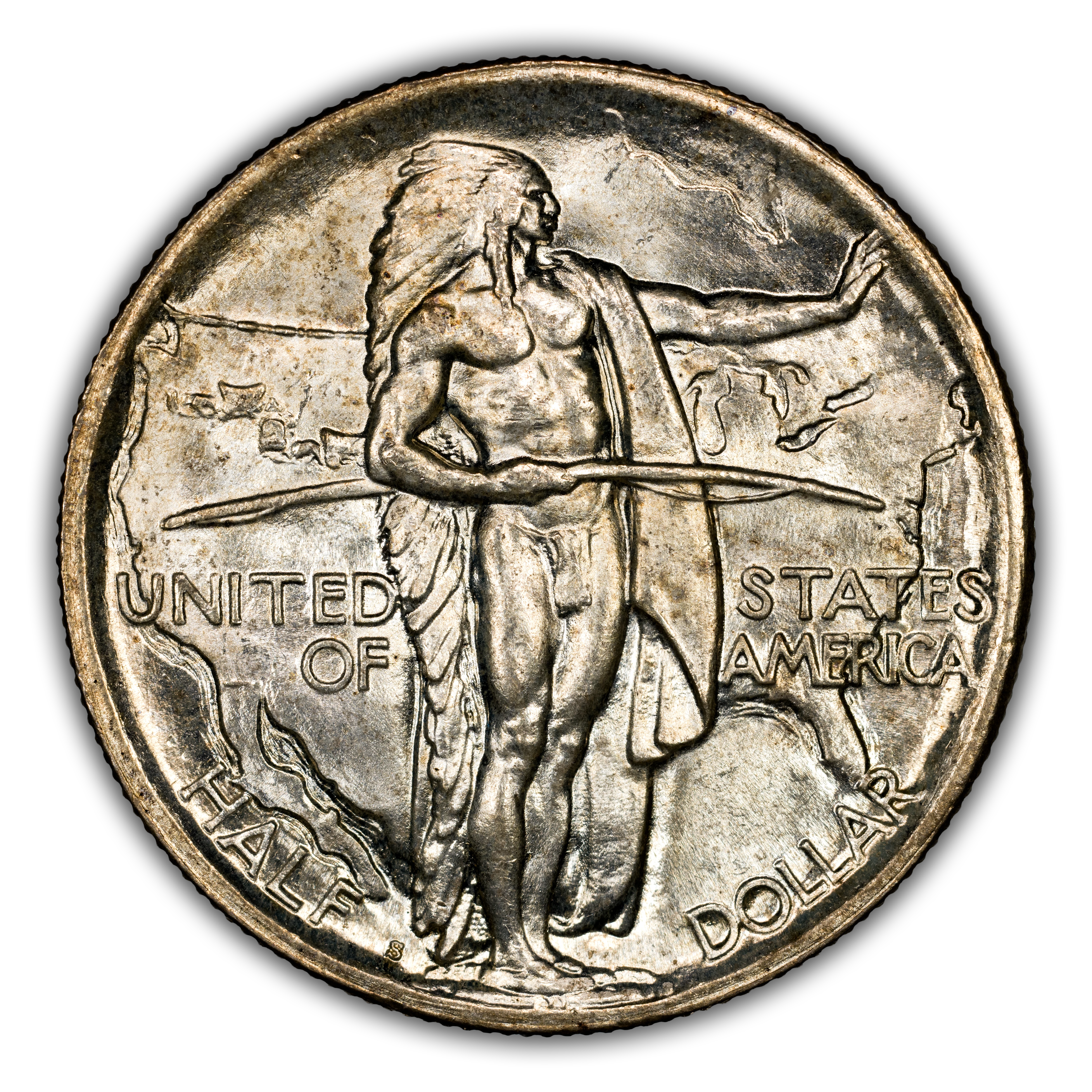 Many say the Oregon half dollar is one of the earliest types of commemoratives that was really afflicted by the abuses and manipulation that eventually brought an end to the commemorative coin program of 1892-1954. Regardless of the controversy surrounding this coin, which will be touched on in this and other listings for this piece, the Oregon half dollar is largely regarded as one of the most beautiful coins the United States Mint ever produced. It honors the 2,000-mile Oregon Trail and the many pioneers who charted the path and died along the route. The 1926 issues were sold for $1 each.