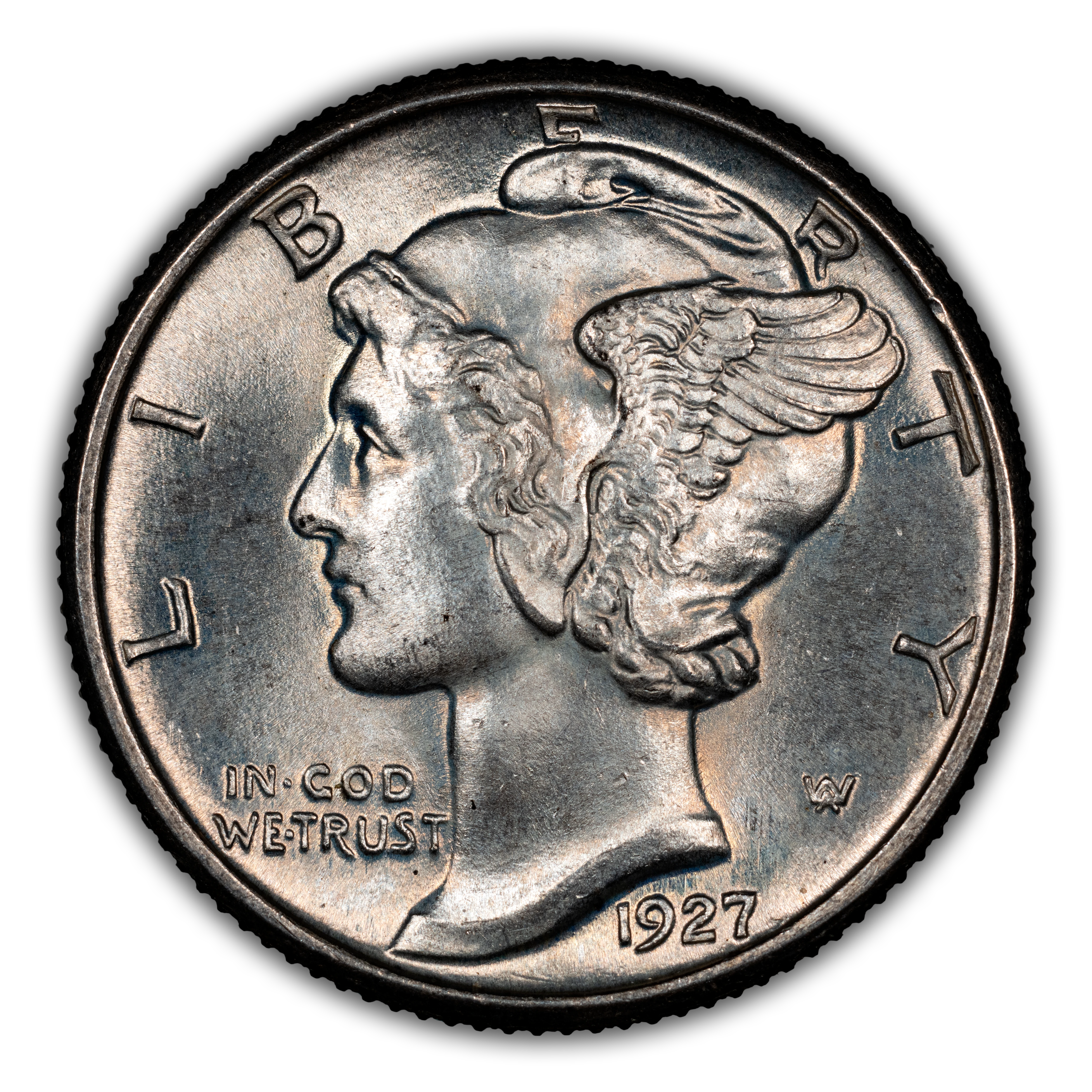 1927 Philadelphia Mercury dimes are common in circulated grades and are widely available even into the uncirculated grades. While this issue becomes scarcer in grades of MS65 and better, there are many remarkably well-struck specimens available, ensuring collectors have a small but healthy pool of Full Bands specimens to choose from.