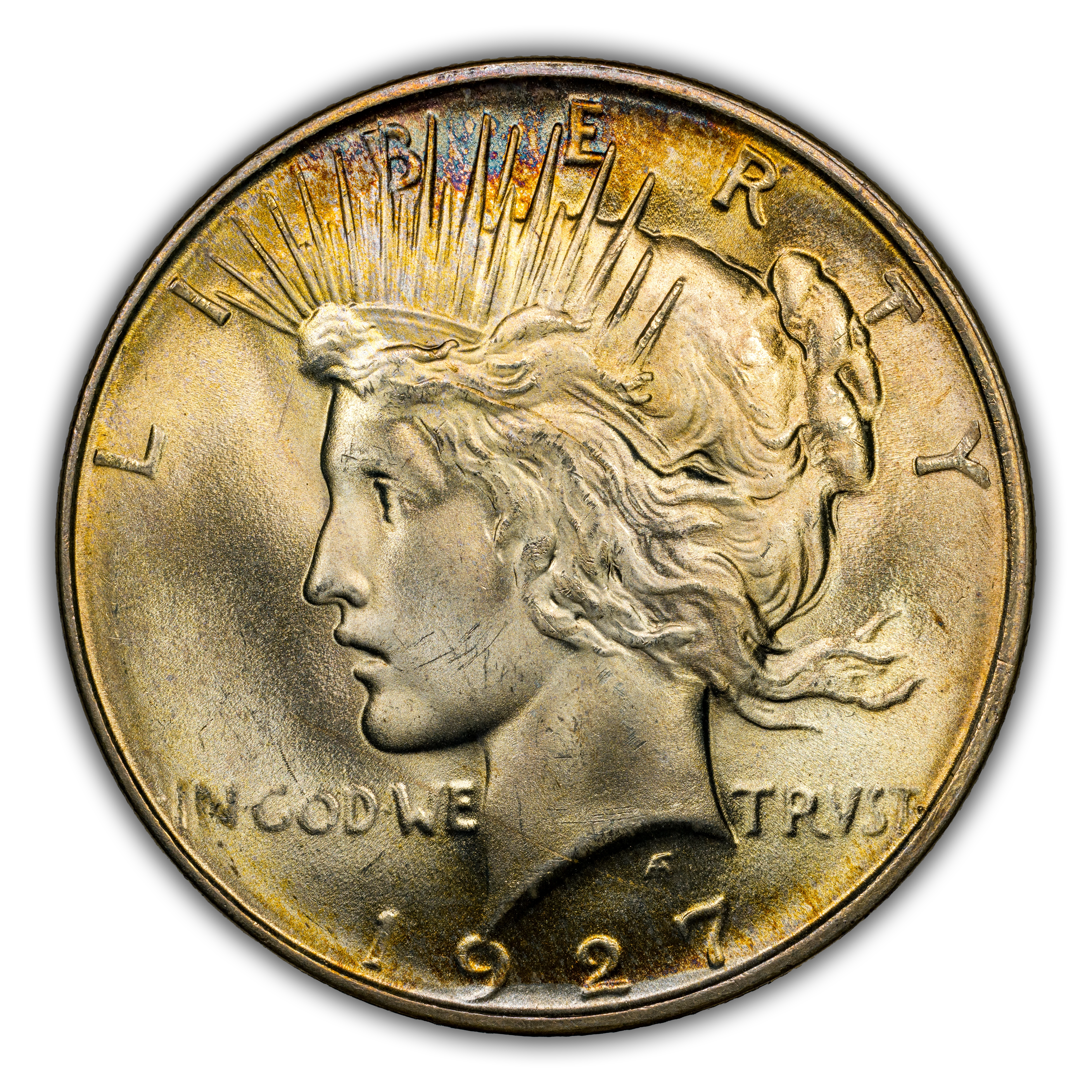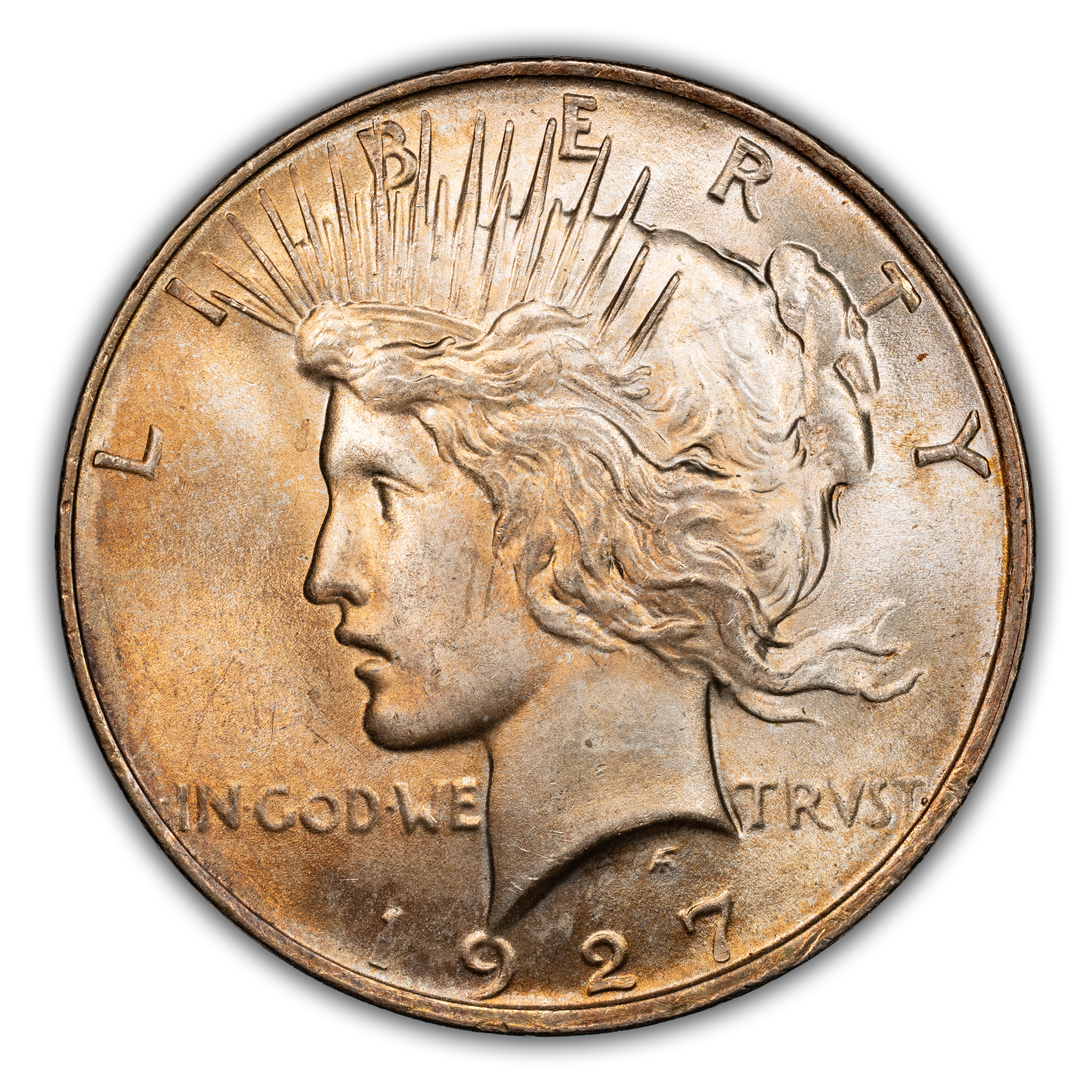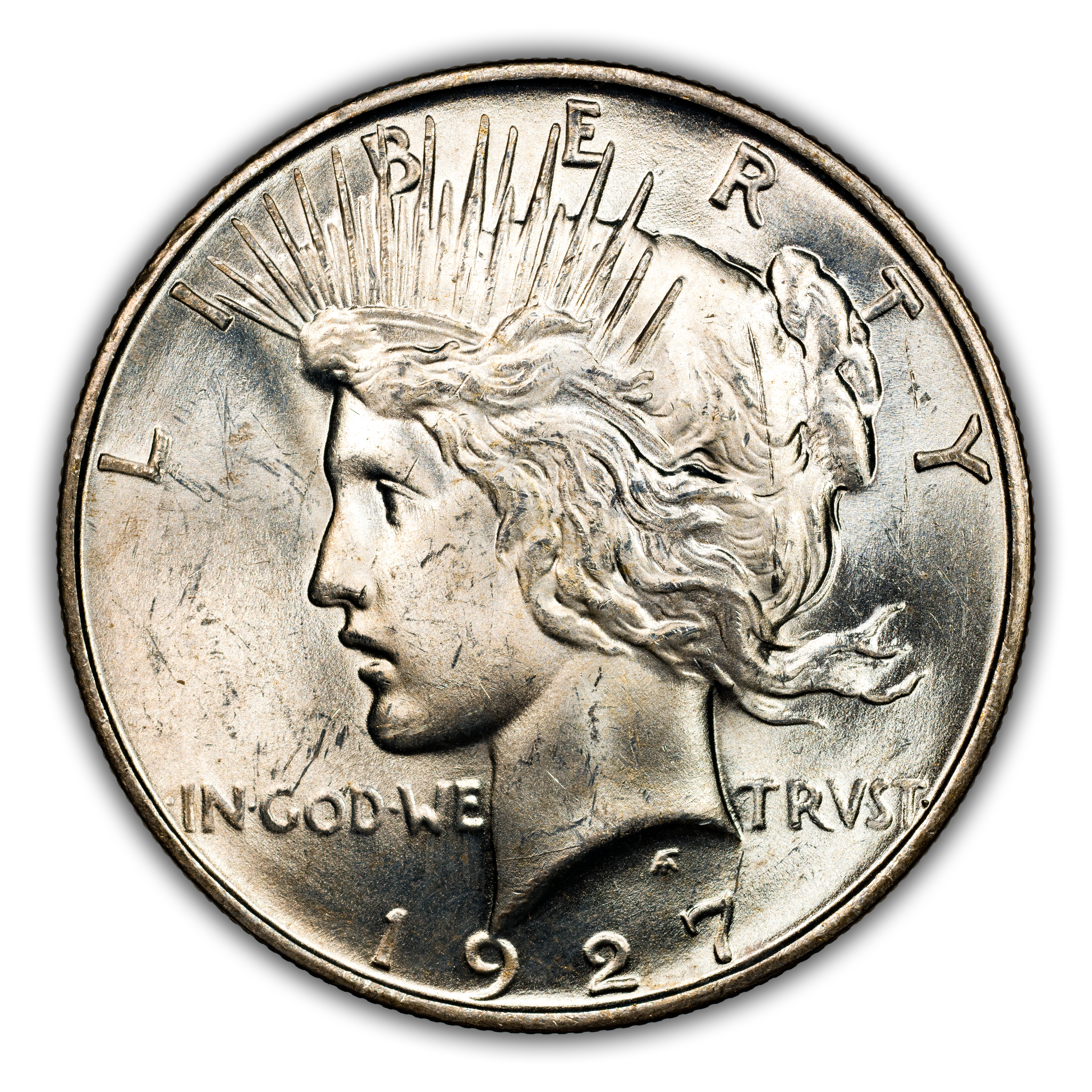 The 1927-D is one of the far scarcer dates minted in Denver. Luster is fantastic for this issue. However, striking is not as good as the Philadelphia minted issues making fully struck pieces worth a premium. Scarce in all grades with a rarity jump in gem condition as MS65 is very scarce and MS66 is extremely rare.