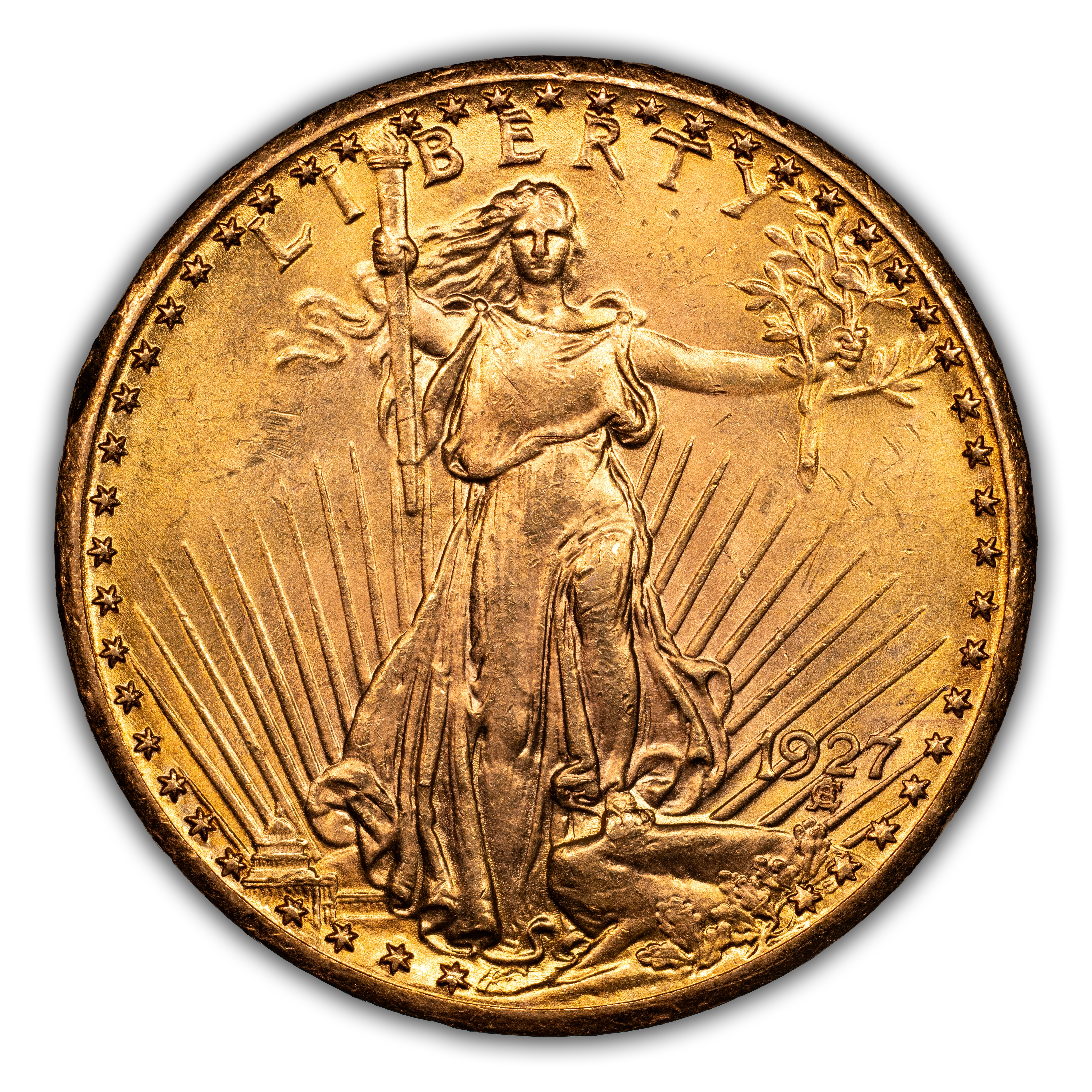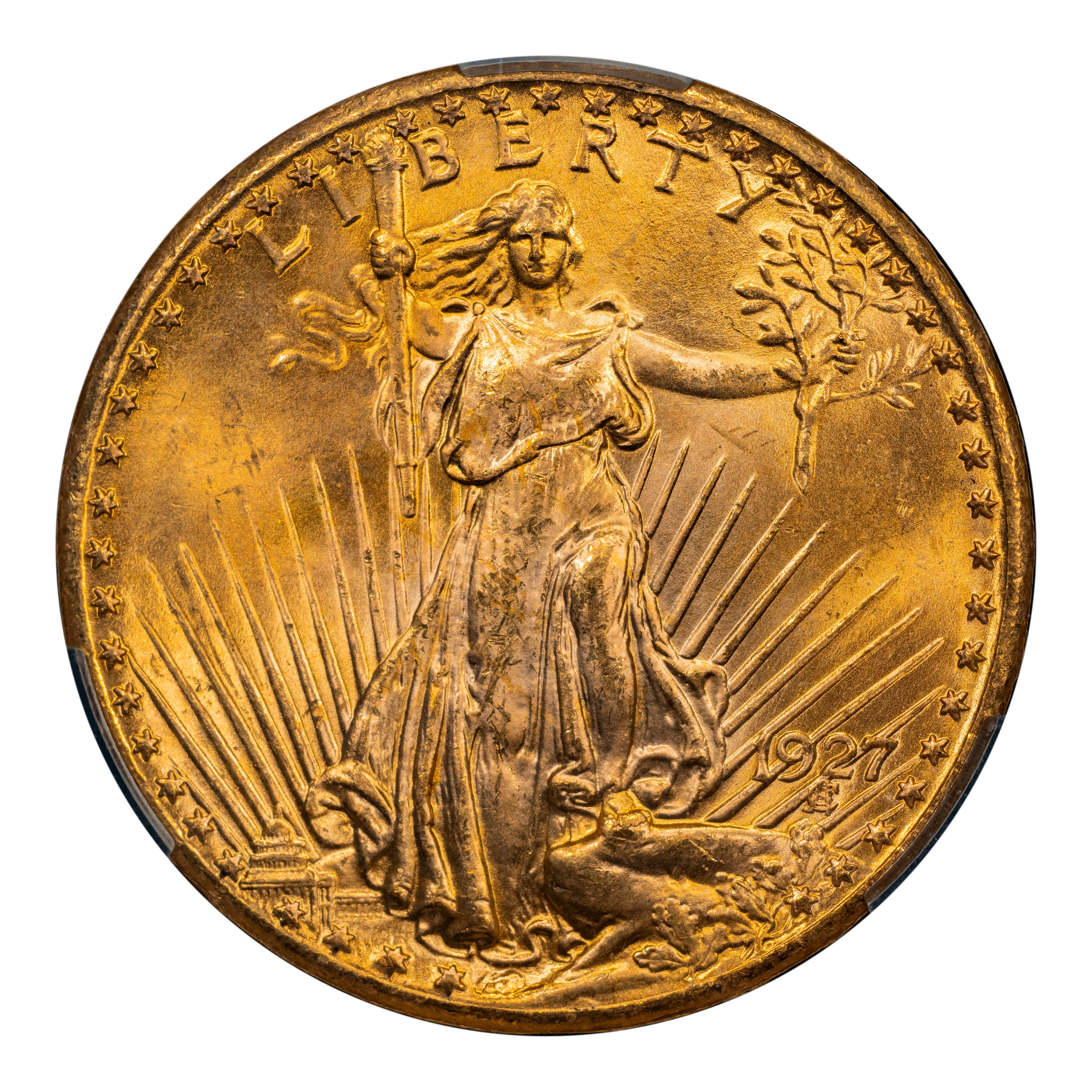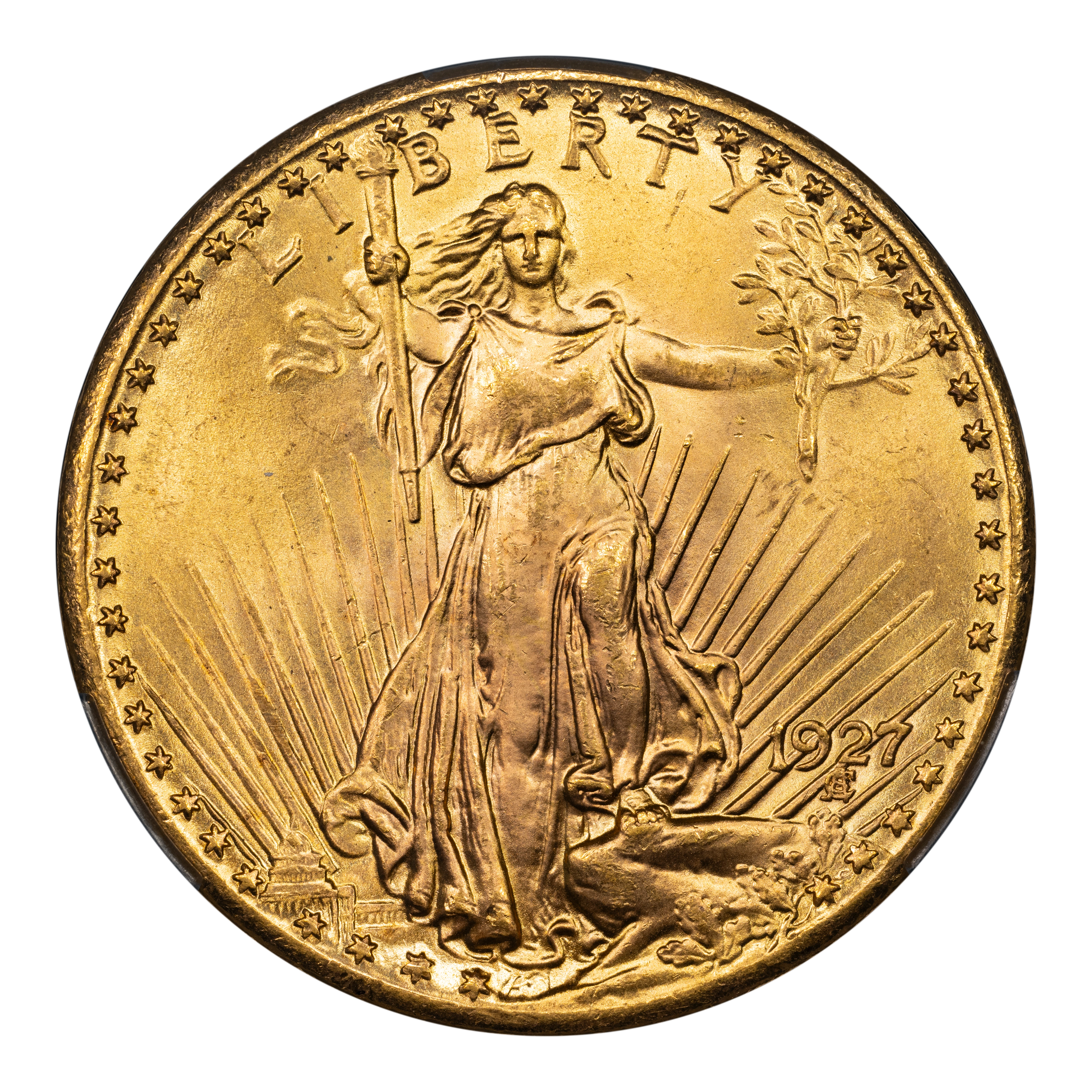 The 1927 Saint-Gaudens is one of the most common Saints. In fact, is frequently even purchased by bullion investors given that the price of lower-grade 1927 Philadelphia-minted $20s is closely tied to the bullion markets. The 1927 Philly Saint is readily found in grades through MS66, though availability drops off dramatically above that grade threshold. Pieces grading MS67 or higher are exceptionally rare.
