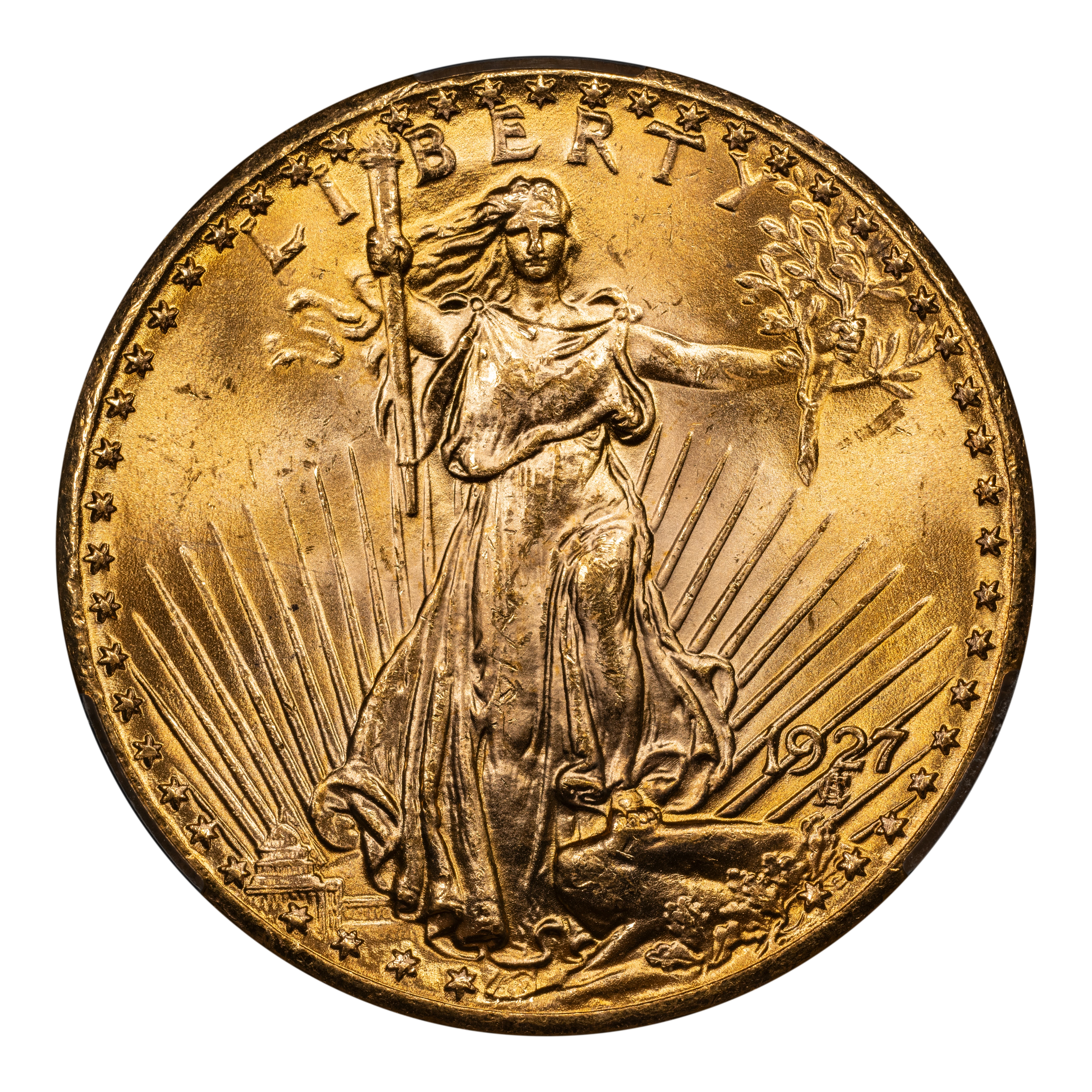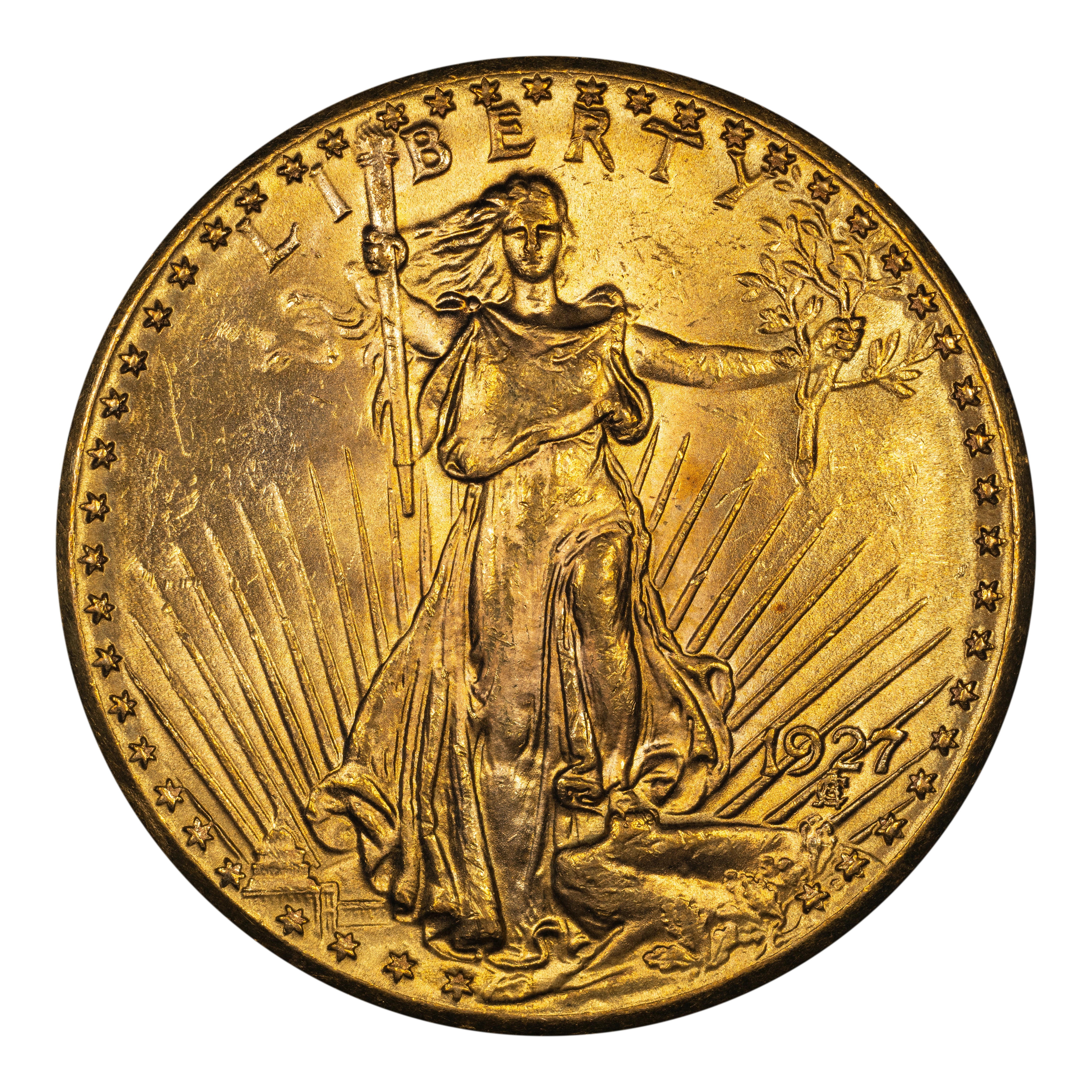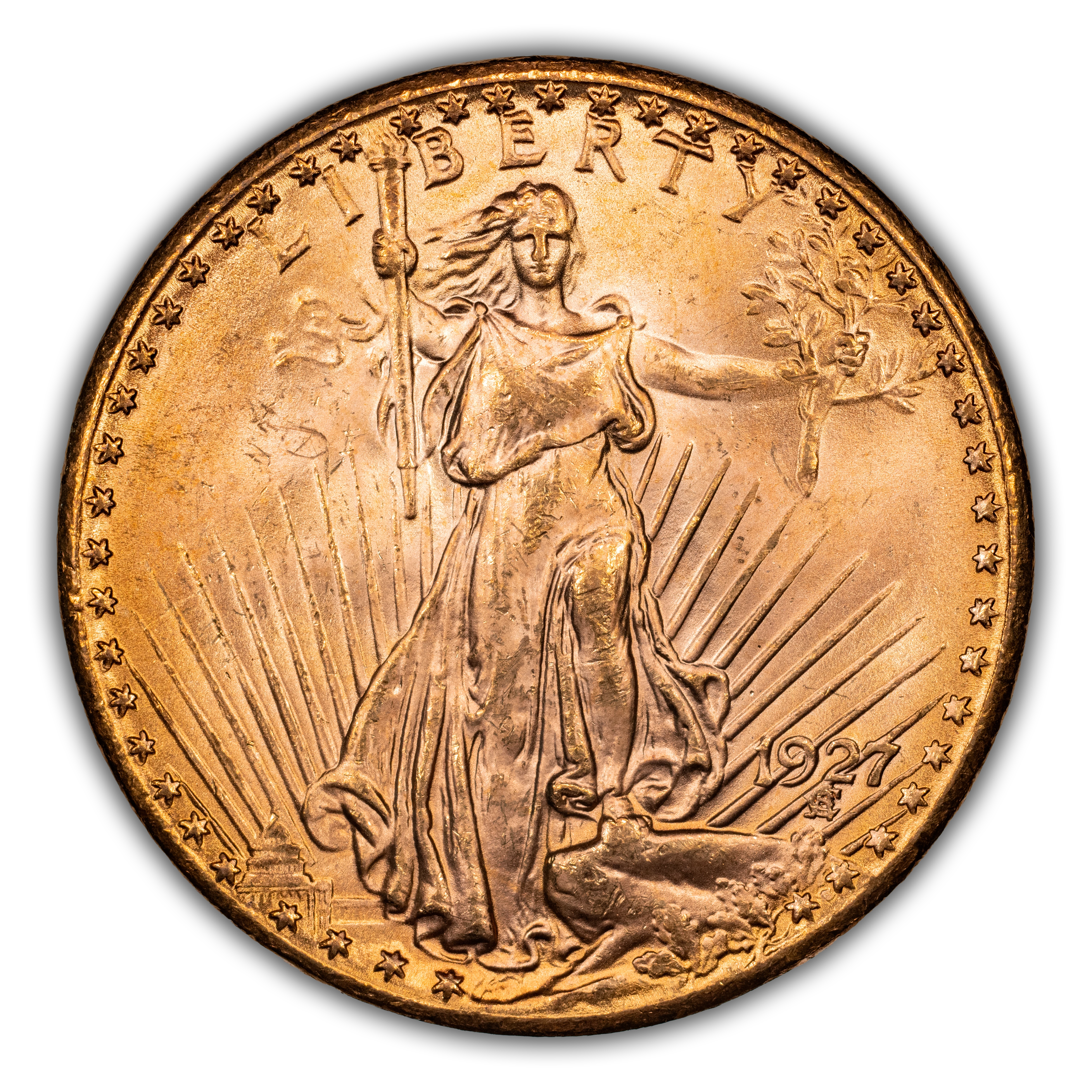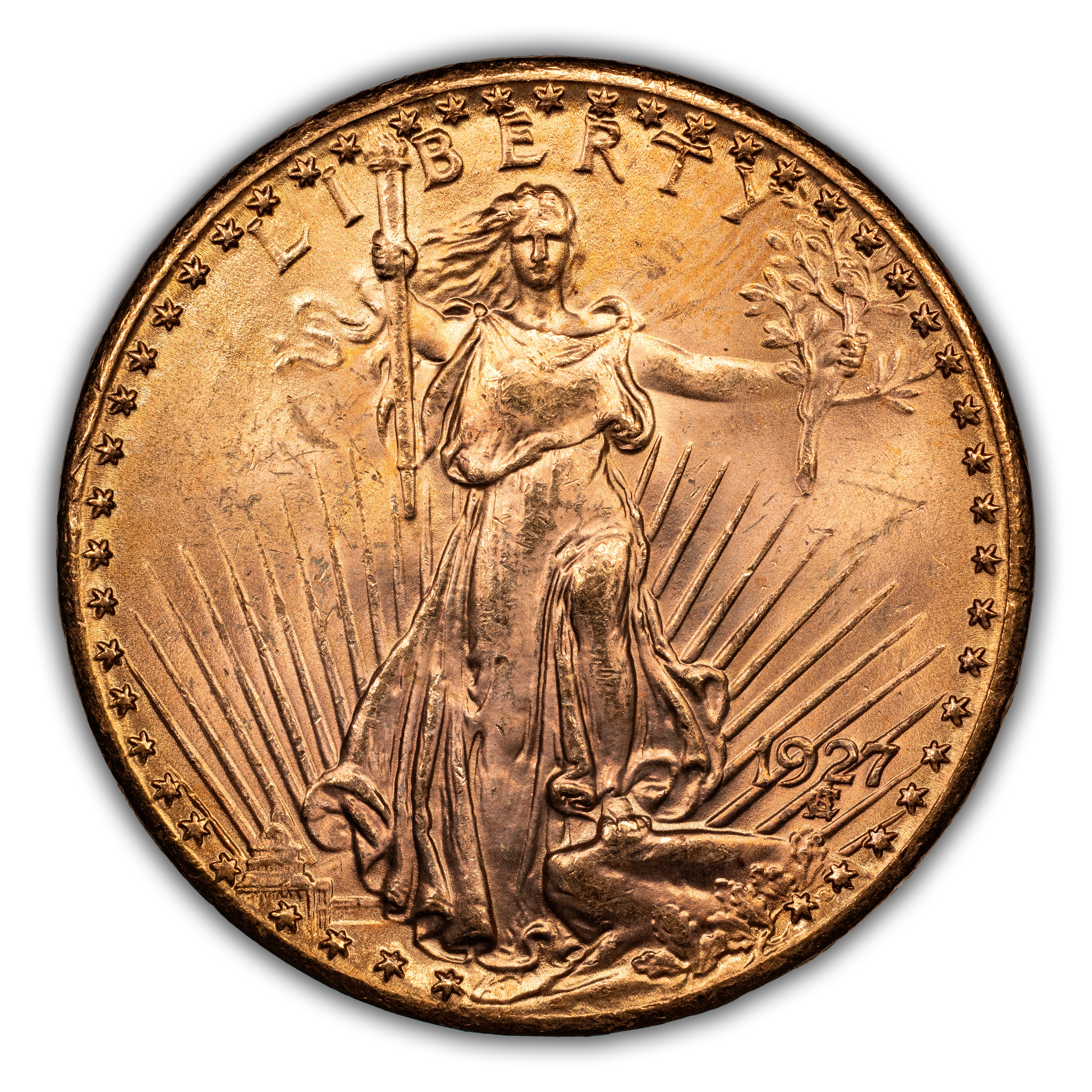 The 1927 Saint-Gaudens is one of the most common Saints. In fact, is frequently even purchased by bullion investors given that the price of lower-grade 1927 Philadelphia-minted $20s is closely tied to the bullion markets. The 1927 Philly Saint is readily found in grades through MS66, though availability drops off dramatically above that grade threshold. Pieces grading MS67 or higher are exceptionally rare.