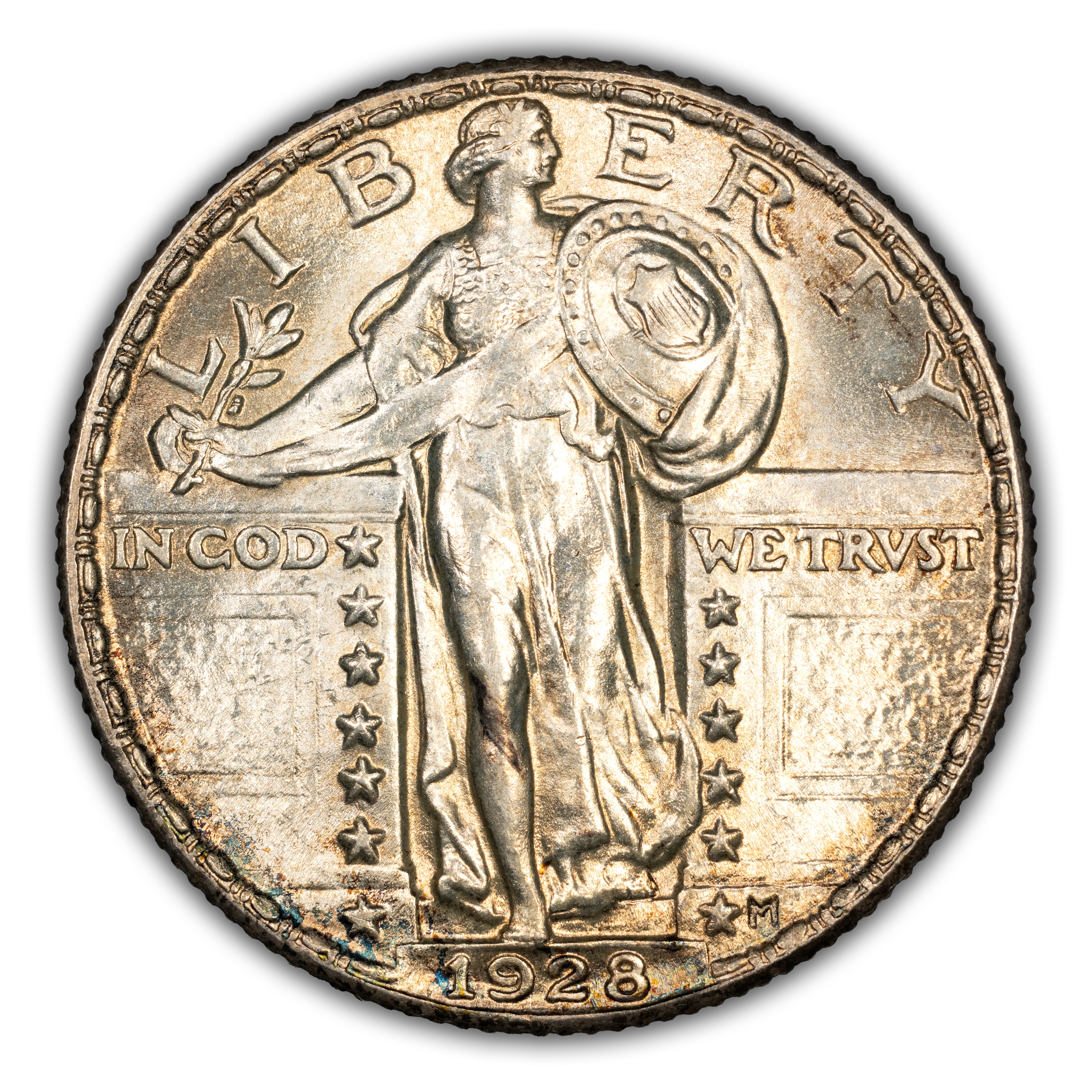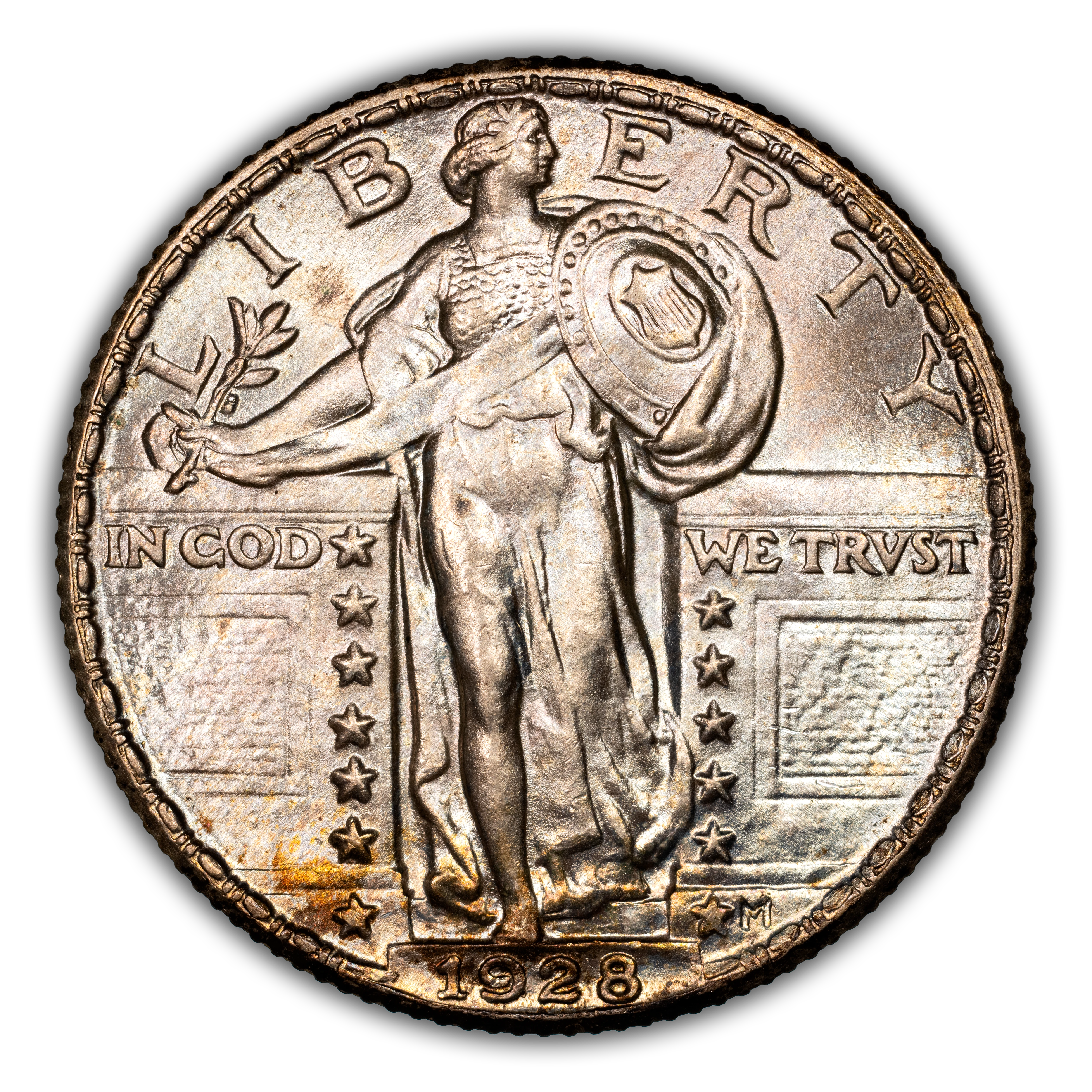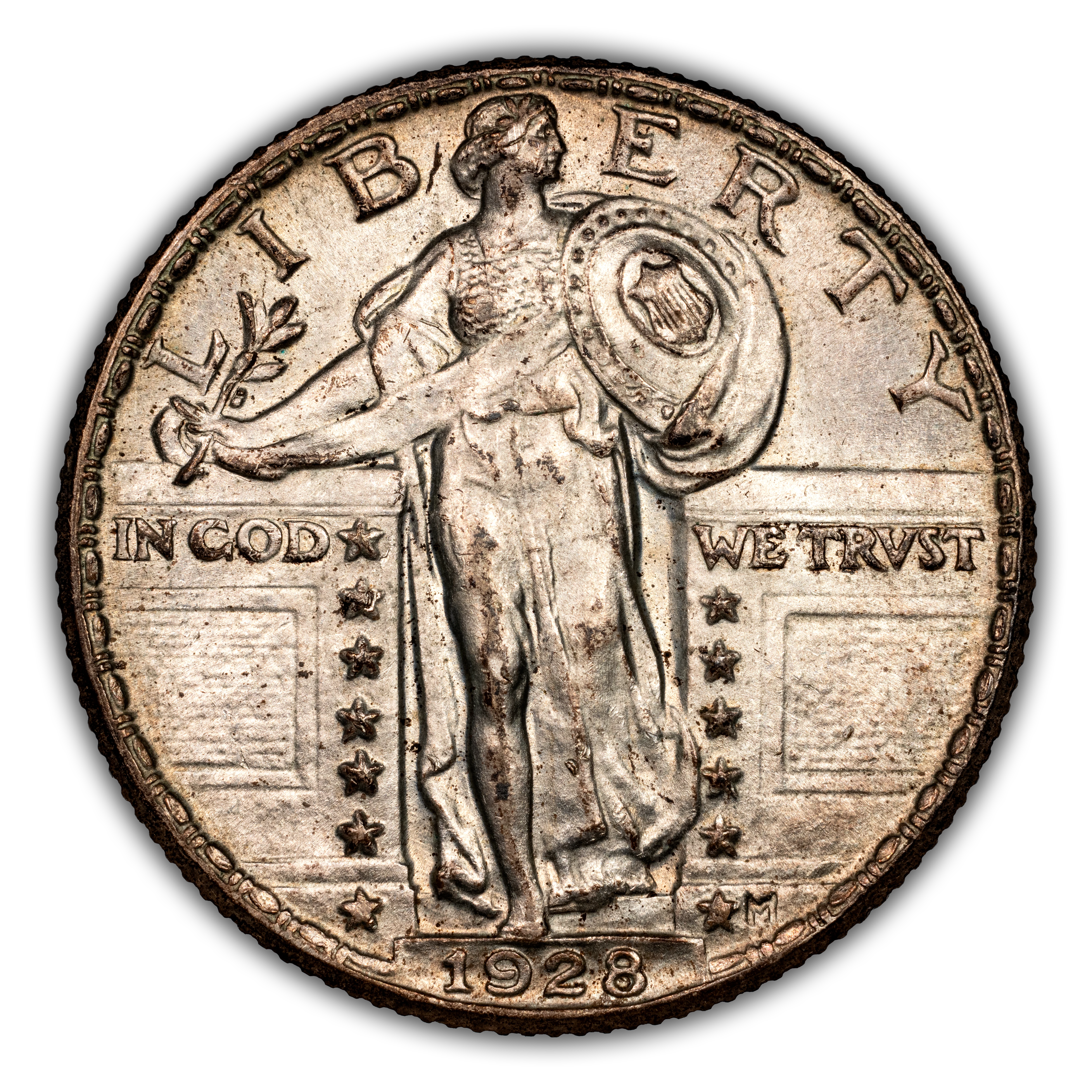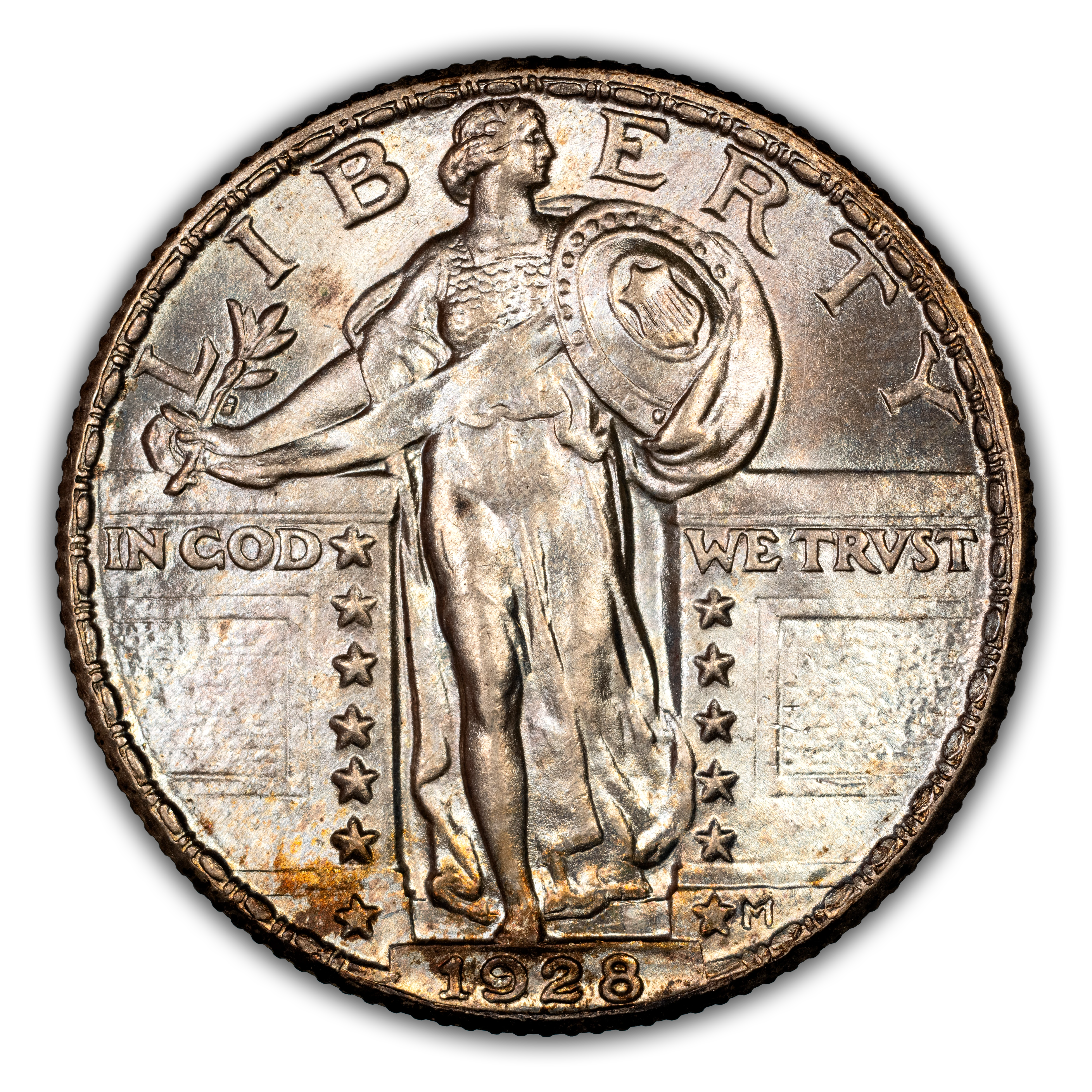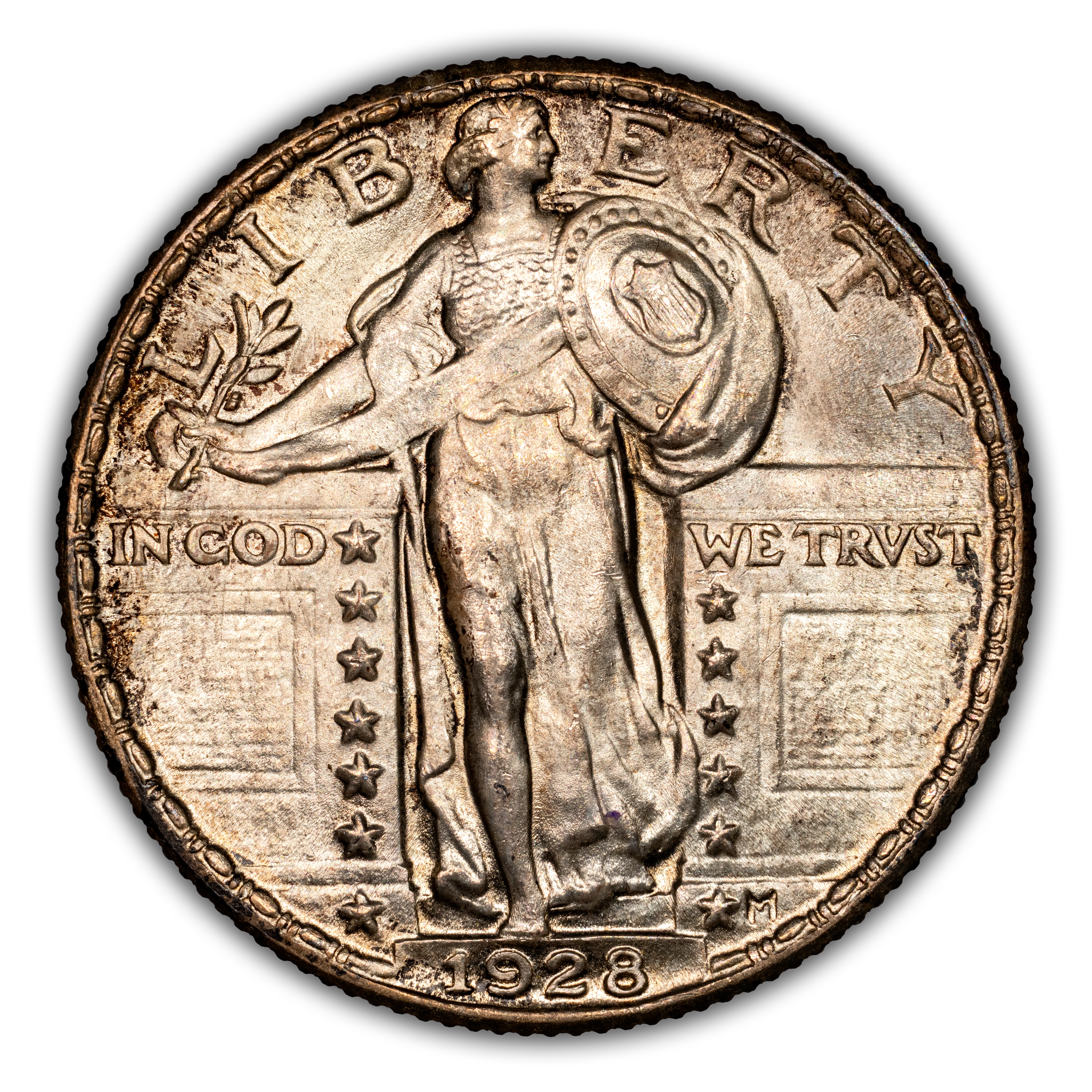The 1928 Standing Liberty Quarter Philadelphia Mint is a fantastic type coin for the series. Collectability begins at the low-end Mint State range and remains very accessible up until the gem level. MS65 and MS66 are considered scarce with anything finer being a really great rarity. Along with the accessibility and affordability, this date also comes with a strong strike, quality luster and even some attractive toning making it a great FH type coin.