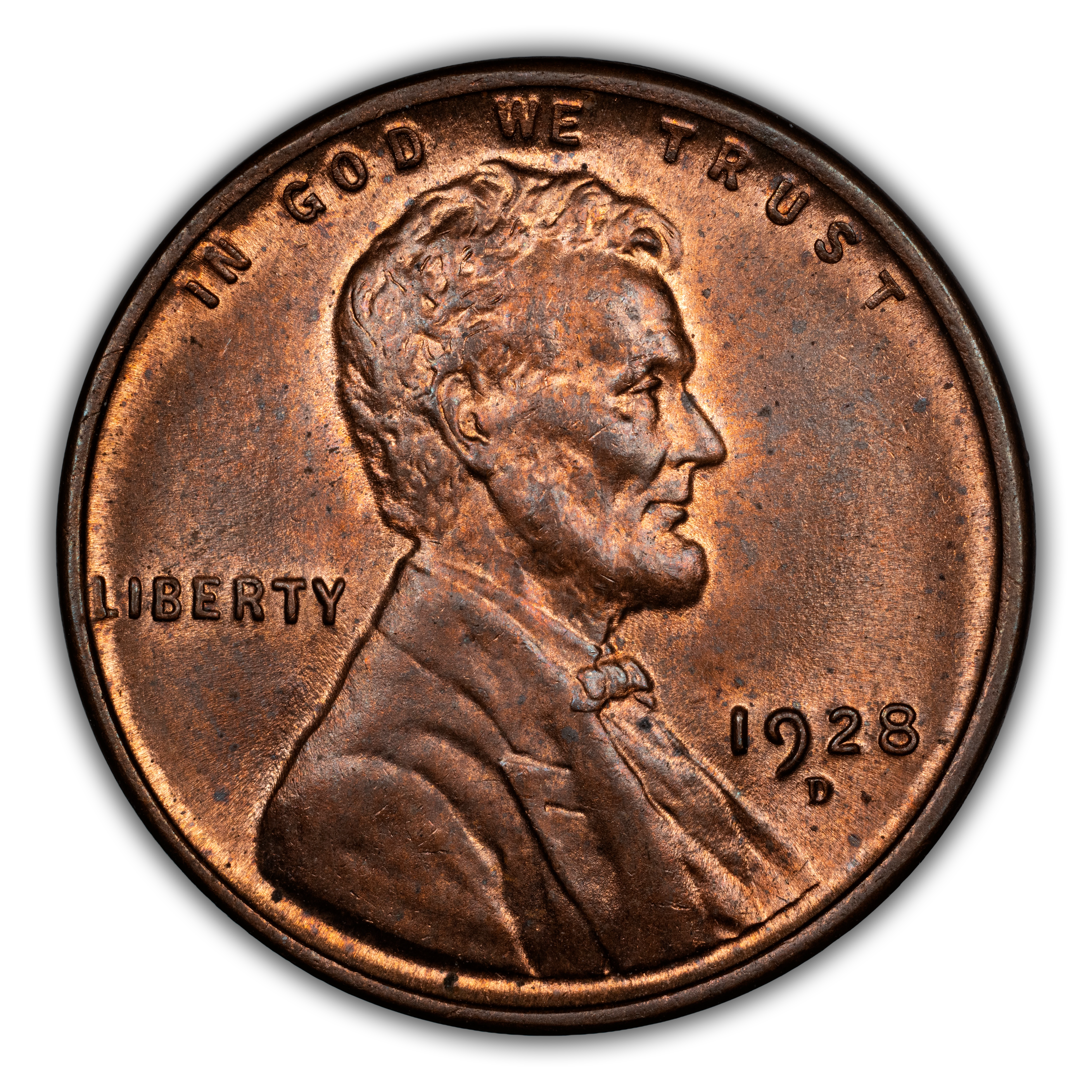 The 1928-D Lincoln cent is a common coin in all circulated grades and into the lower uncirculated grades. However, like so many 1920s Lincoln cents, the 1928-D penny becomes tough around MS65 and rare in MS66 or higher. Be sure to seek nice examples with even color, strong strike, and few to no carbon spots and other surface detractions.