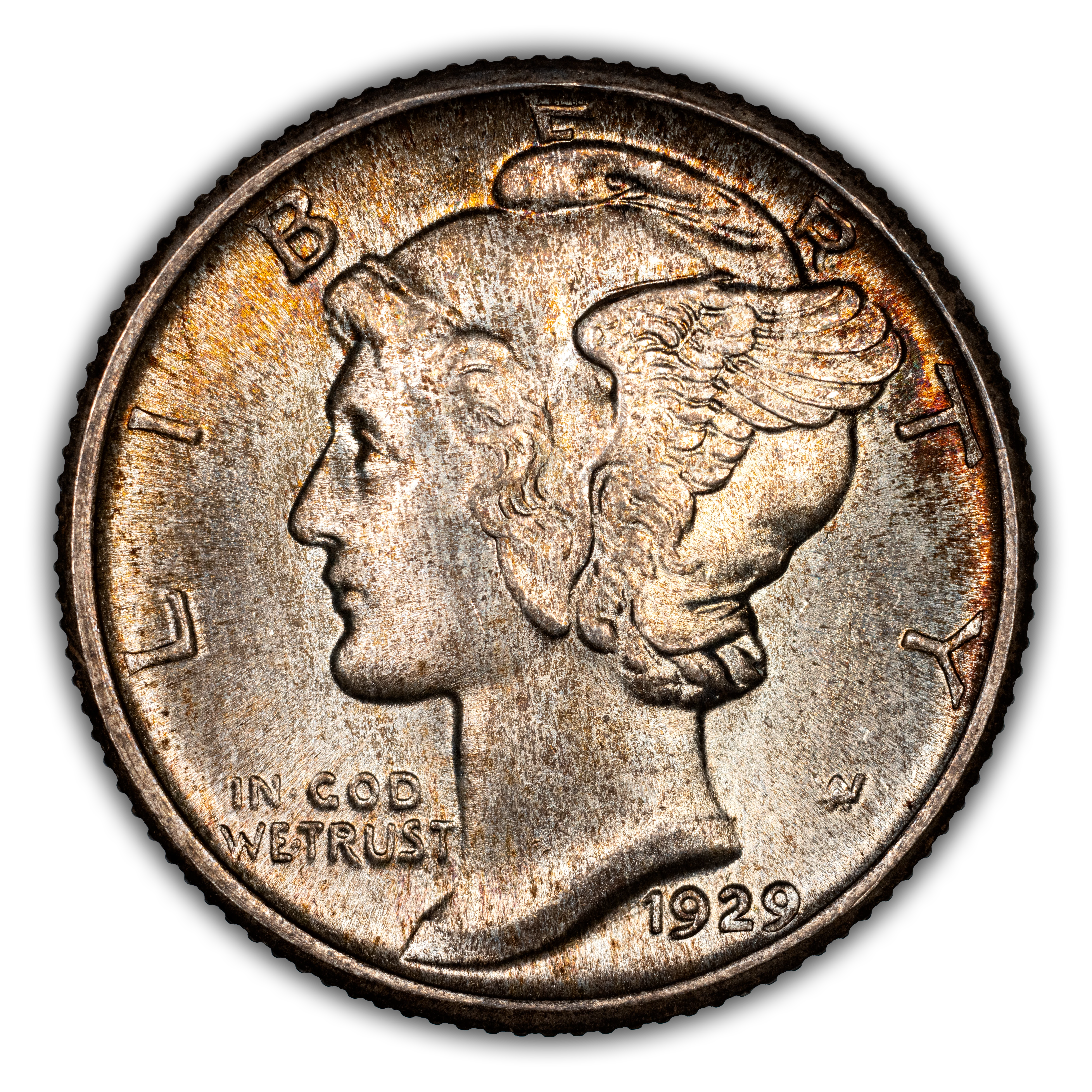 This Philly-mint issue is common in circulated grades and is readily available in uncirculated grades through MS66. Full Bands specimens are rather plentiful at least through MS65, thanks to the majority of these coins being well struck. However, all examples of the 1929 Mercury dime are tough in MS67 or higher grades.