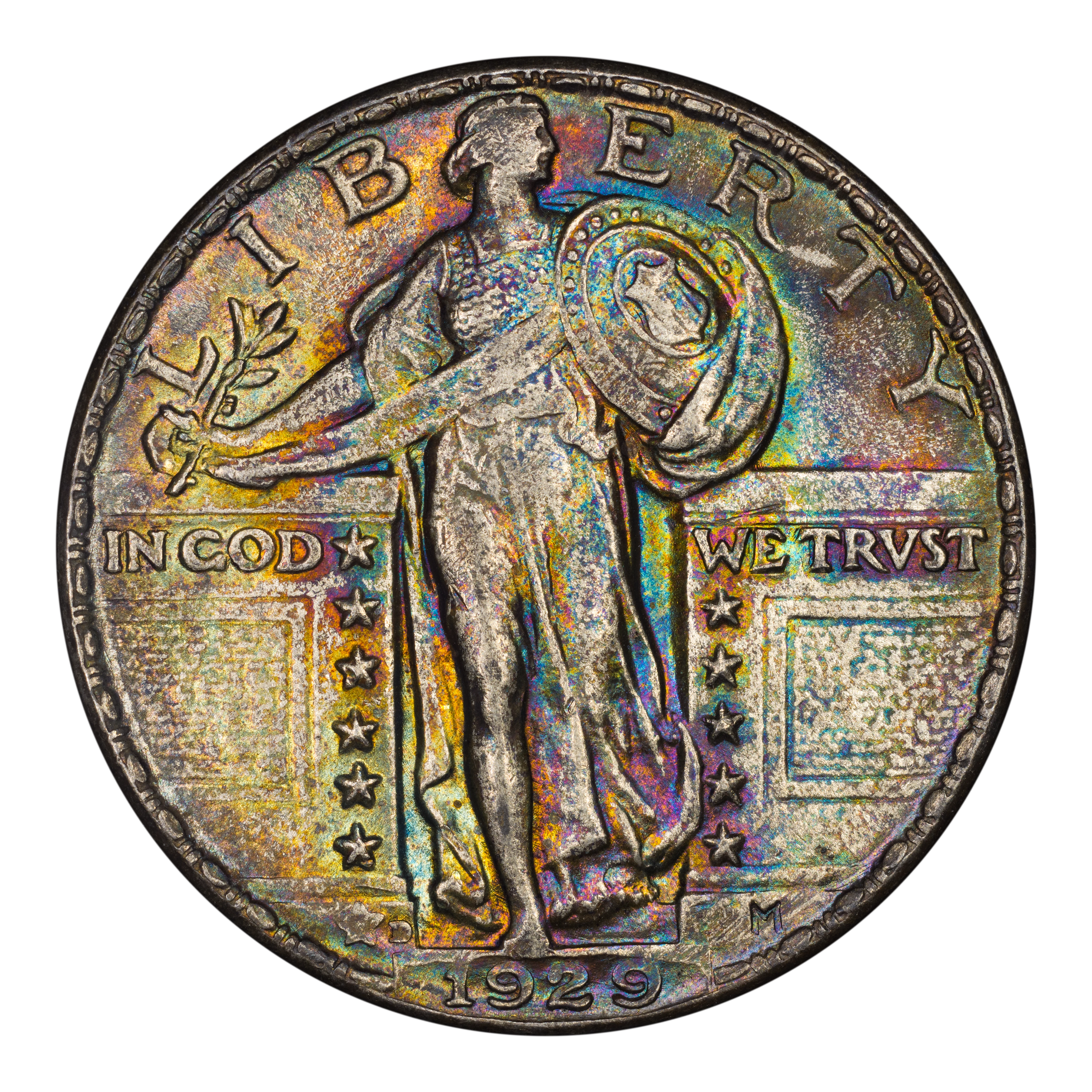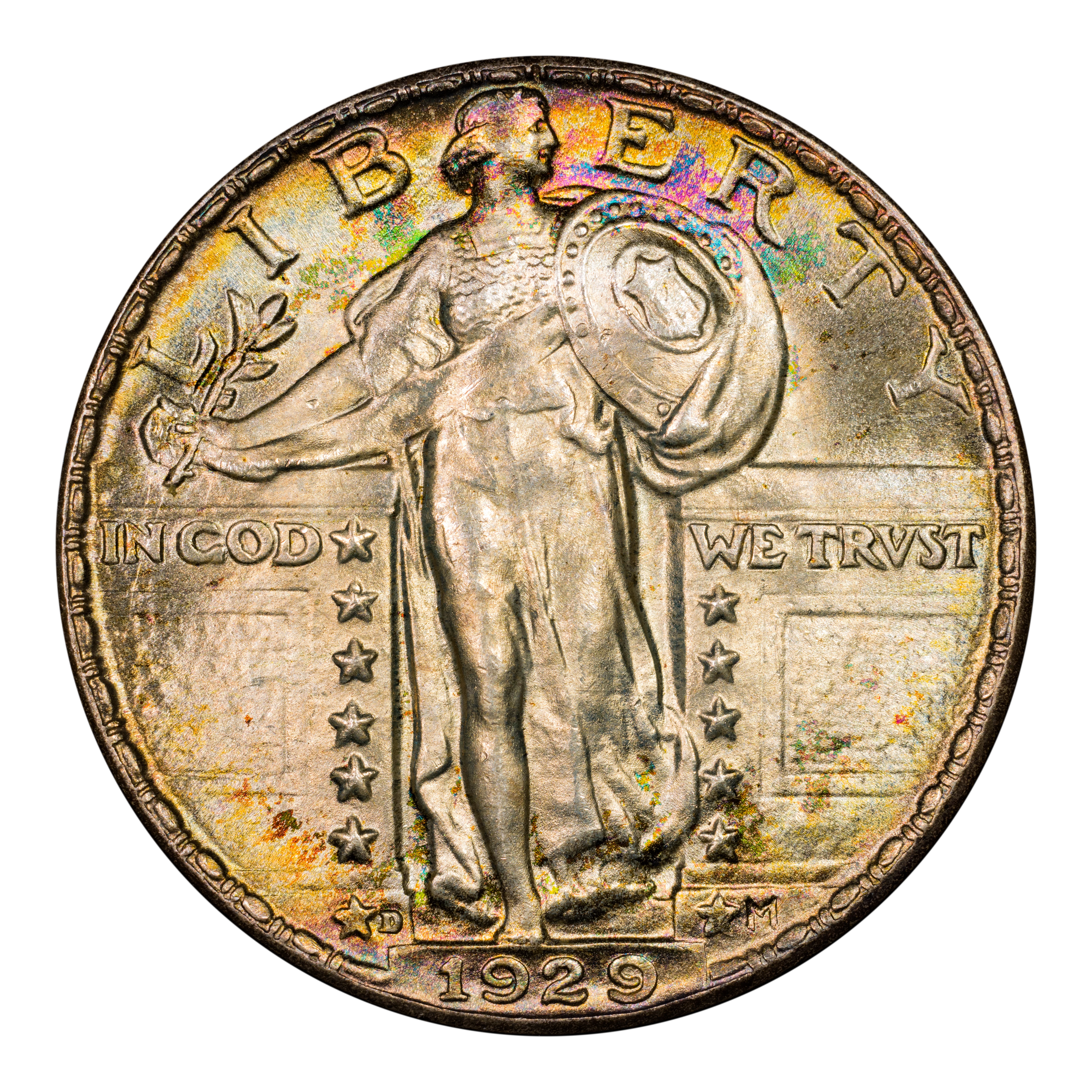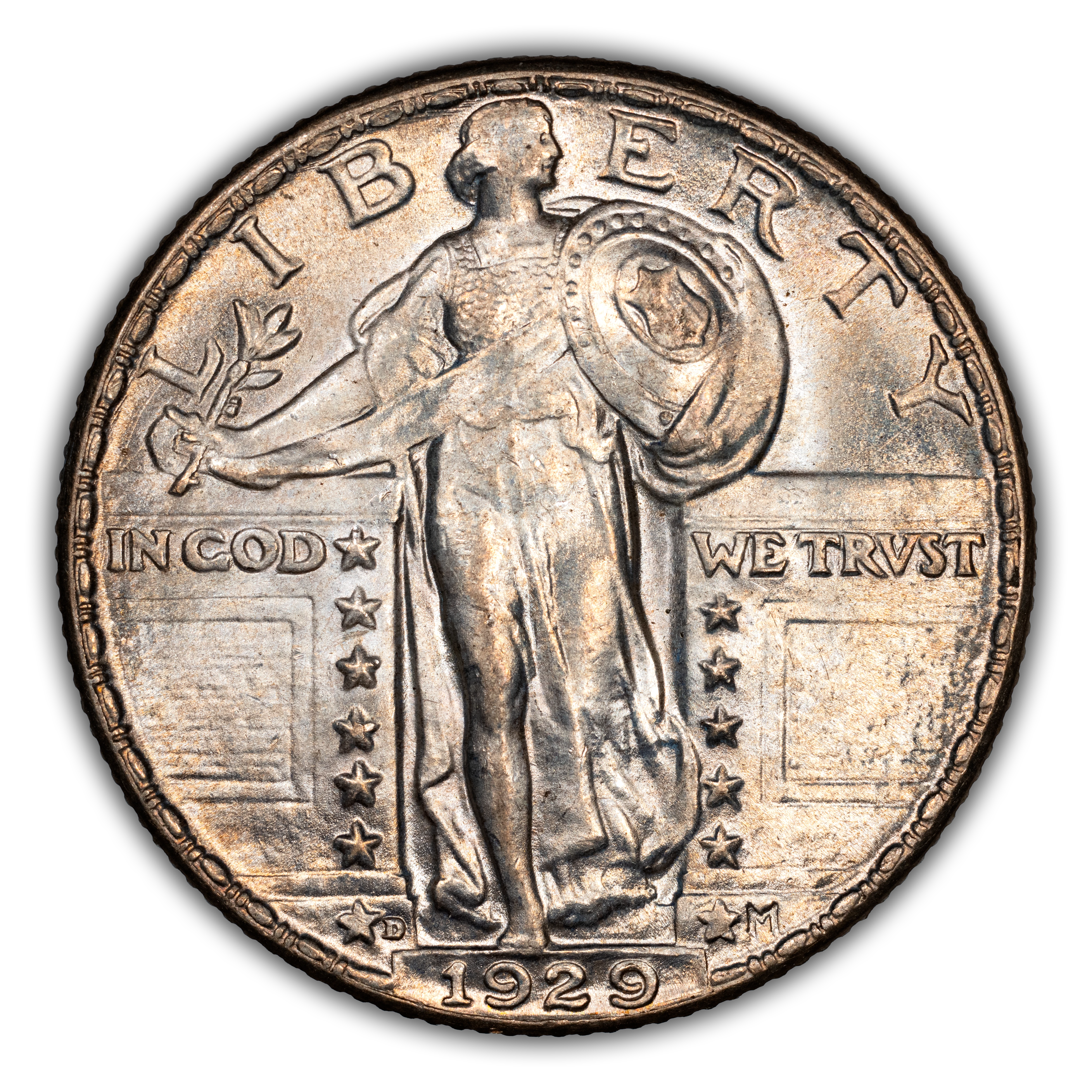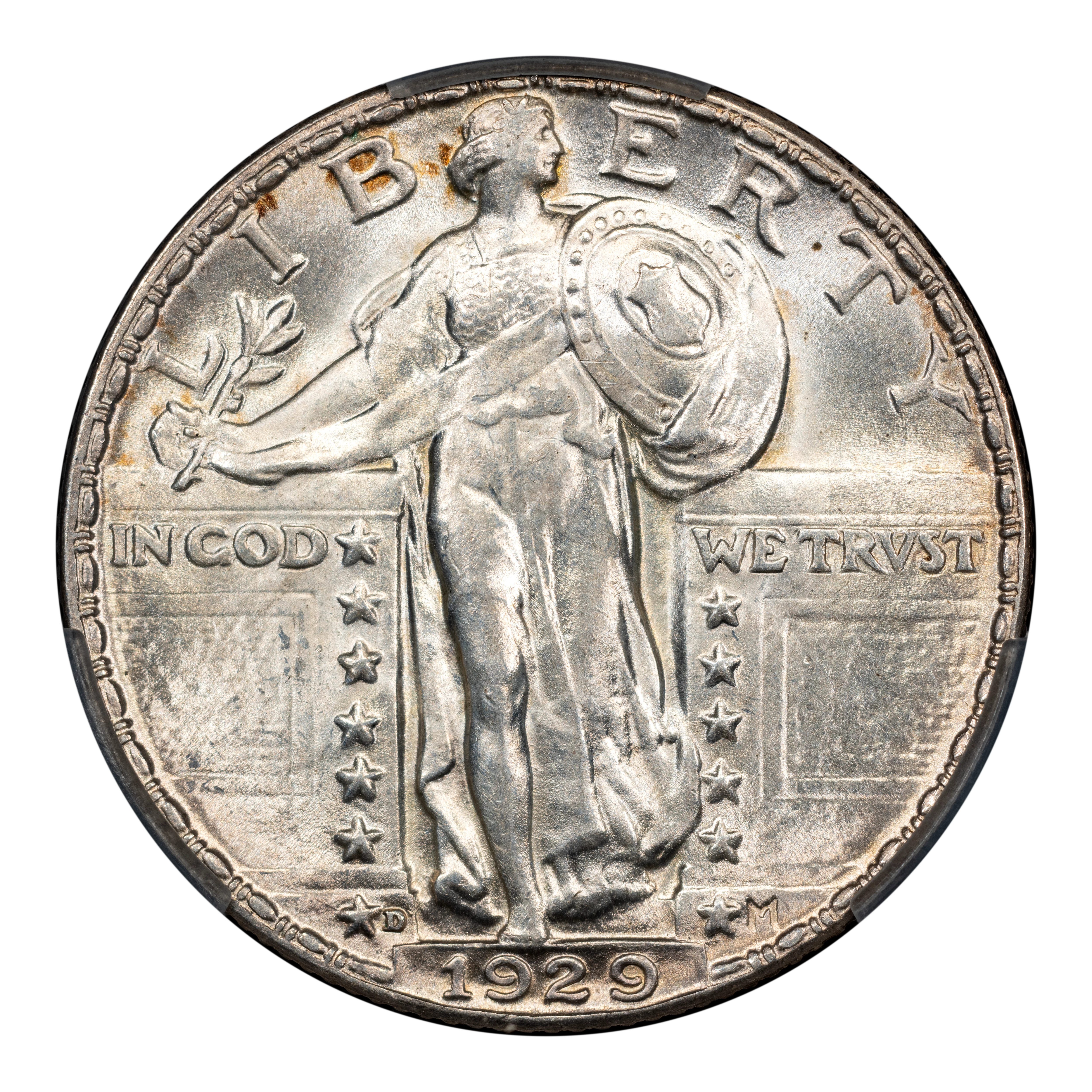 The 1929 Standing Liberty Quarter Denver Mint is an ideal branch mint type coin for the series. Collectability begins in the AU range and remains very accessible up until MS66. MS66 and any finer are considered scarce. This issue comes with a very weak strike although there is quality luster and, in some cases, beautiful toning.