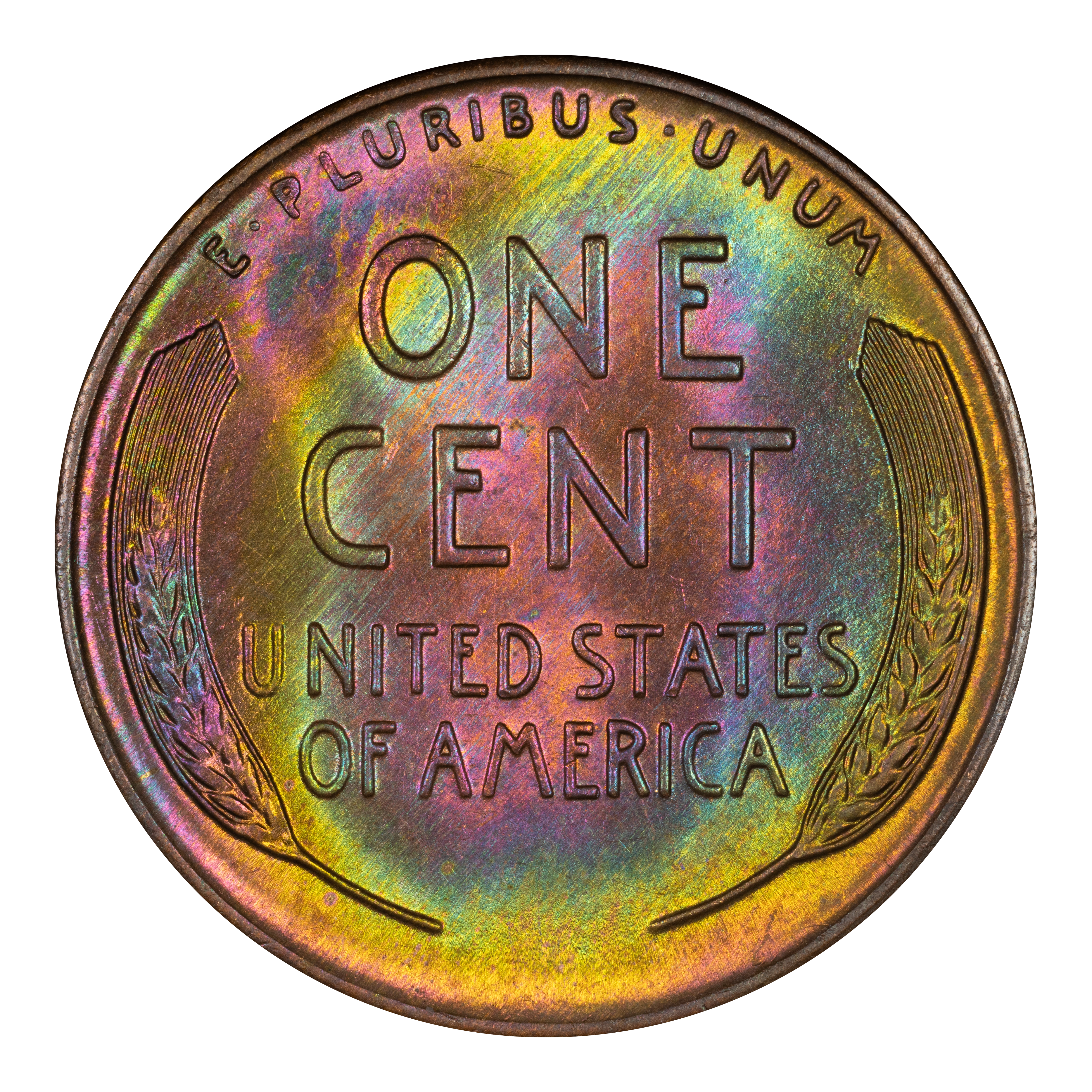 Reverse: Wheat ears flanking the words ONE CENT, UNITED STATES OF AMERICA. The motto E PLURIBUS UNUM on the top perimeter.