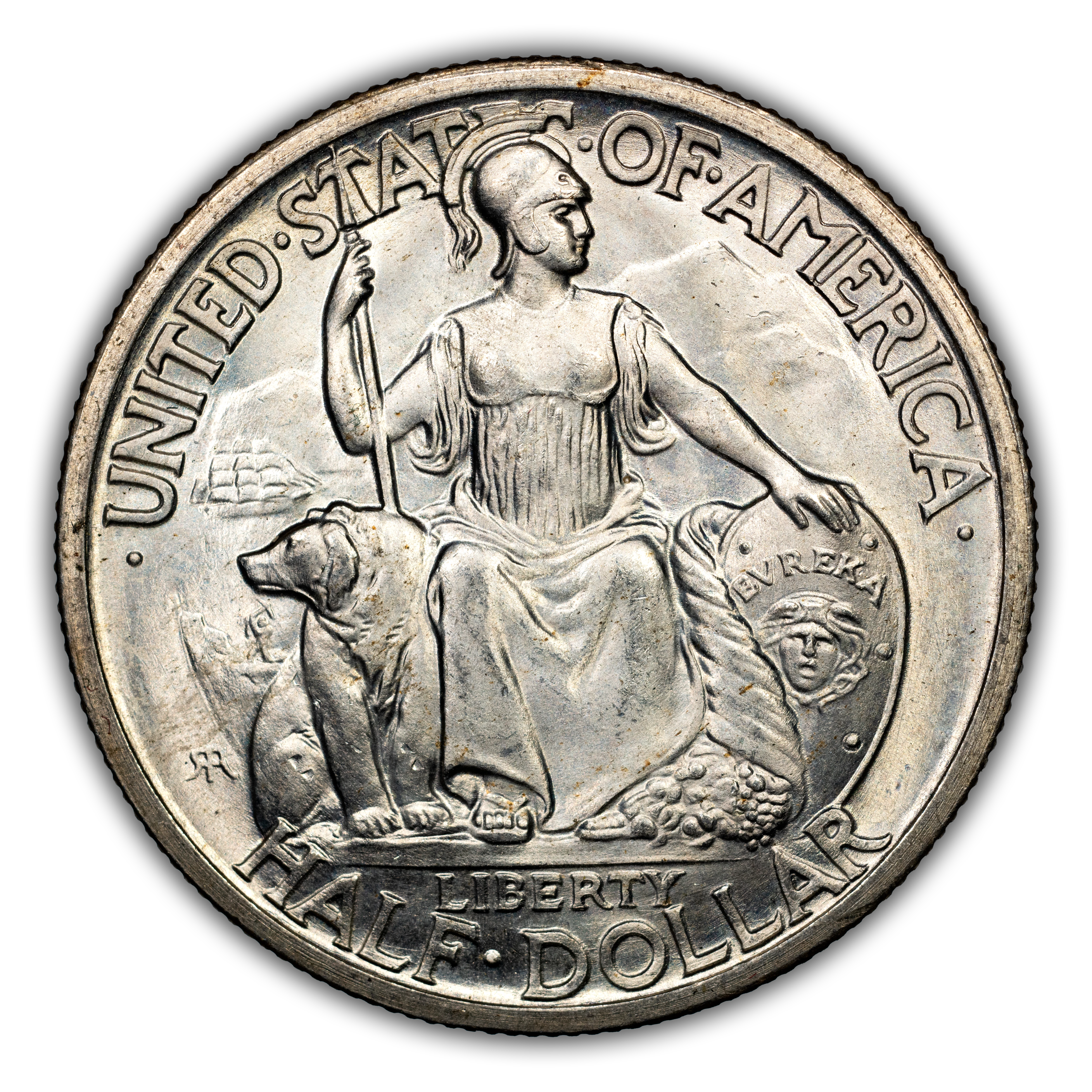The 1935-S San Diego commemorative half dollar honors the California-Pacific International Exposition, which took place in the southern California city of San Diego in 1935 and 1936. The coin, designed by Robert Aitken, was sold for $1 at the fair. Pieces struck in 1935 derived from the San Francisco Mint; more were made in 1936, and those come from the Denver Mint.
