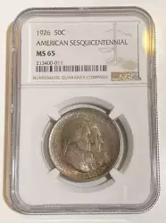 <B>1935 50C Spanish Trail MS65 NGC.</B></I> CDN: $1,150 Whsle. Bid for NGC/PCGS MS65. Mintage 10,008. ...