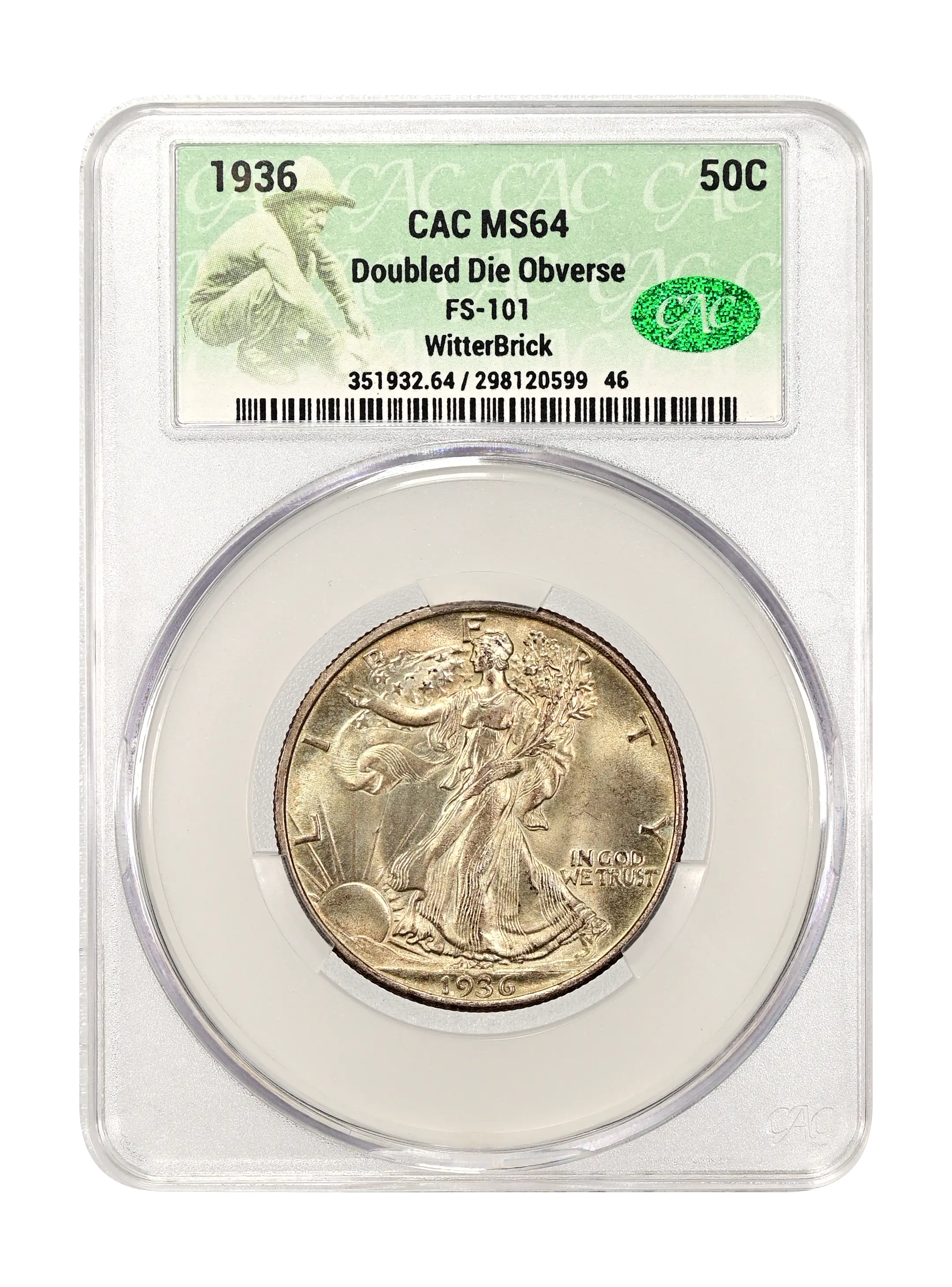 1936 Doubled Die Obverse 50c FS-101 CAC MS64