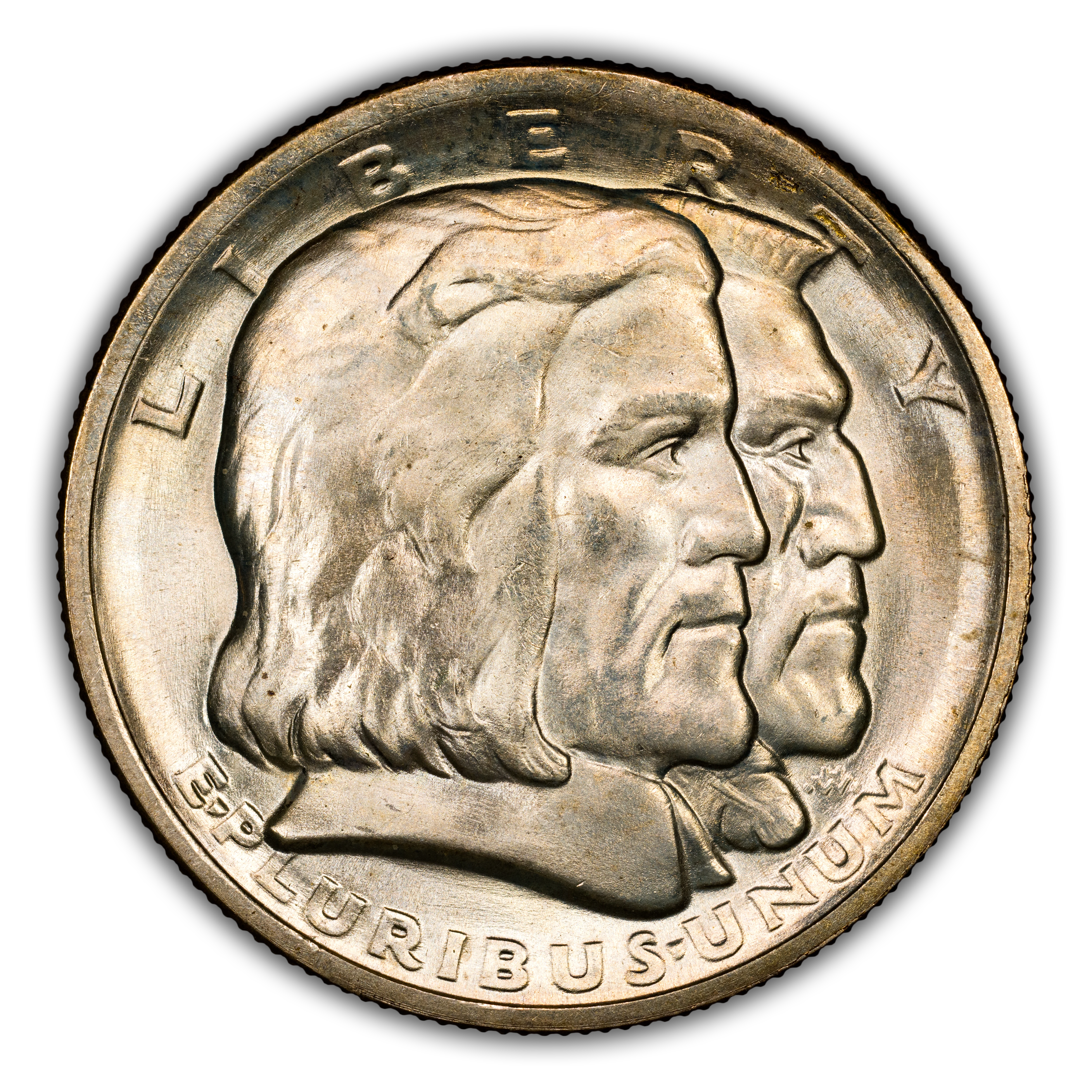 The majority of Long Island half dollars are encountered in uncirculated condition, but pieces grading MS67 or higher are quite rare due to broad, flat surfaces on both the obverse and reverse. With the coin prone to surface detractions, it is difficult to find nice pieces that are absent a smattering imperfections.