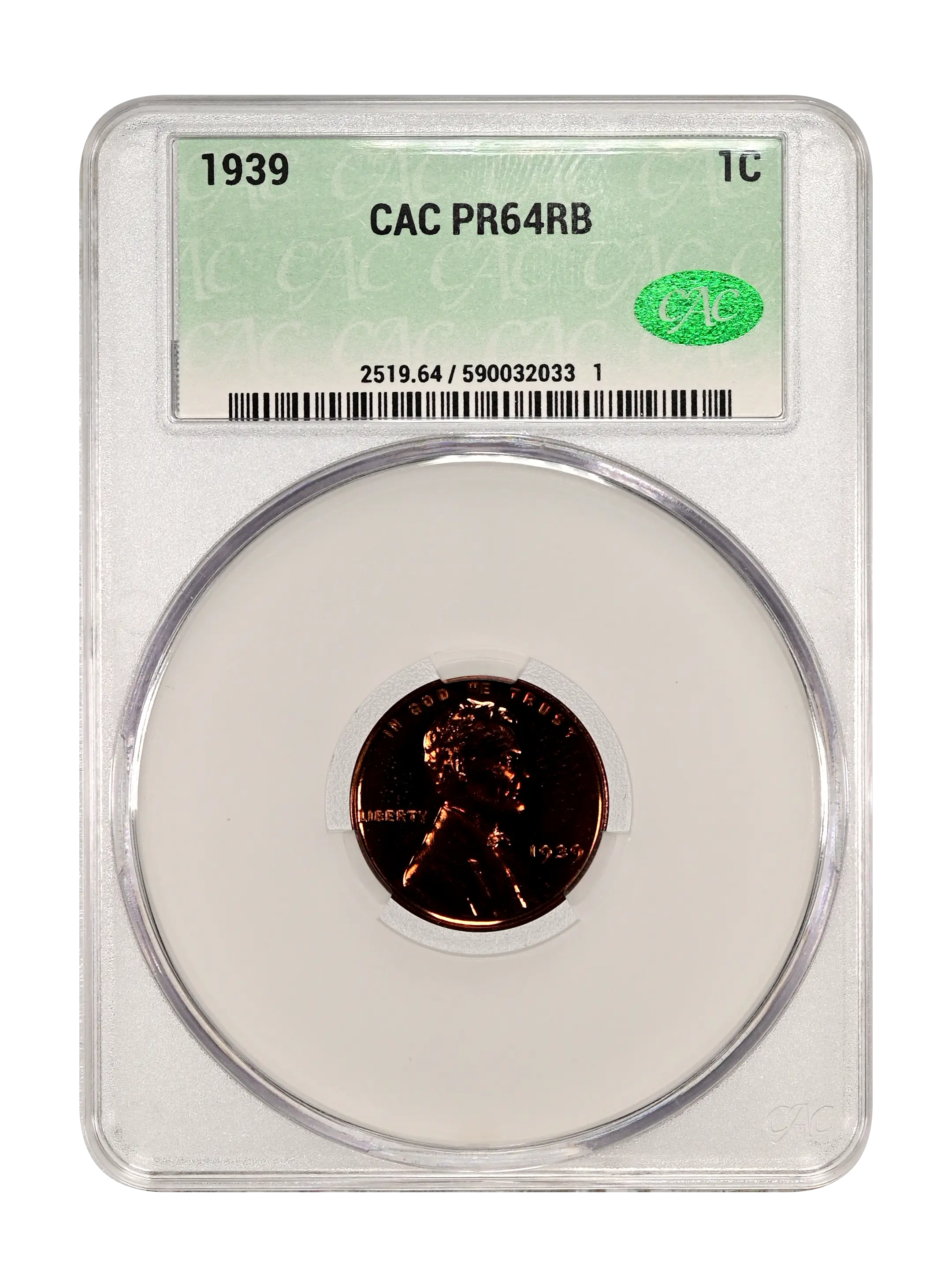 1939 proof Lincoln cents are scarcer than most other proof Lincoln cents, though they are much more common than the earlier matte proofs of 1909-1916. As a rule, 1939 proofs bear brilliant surfaces, though it is best to avoid pieces that exhibit ispots, uneven coloration, or other surface problems.