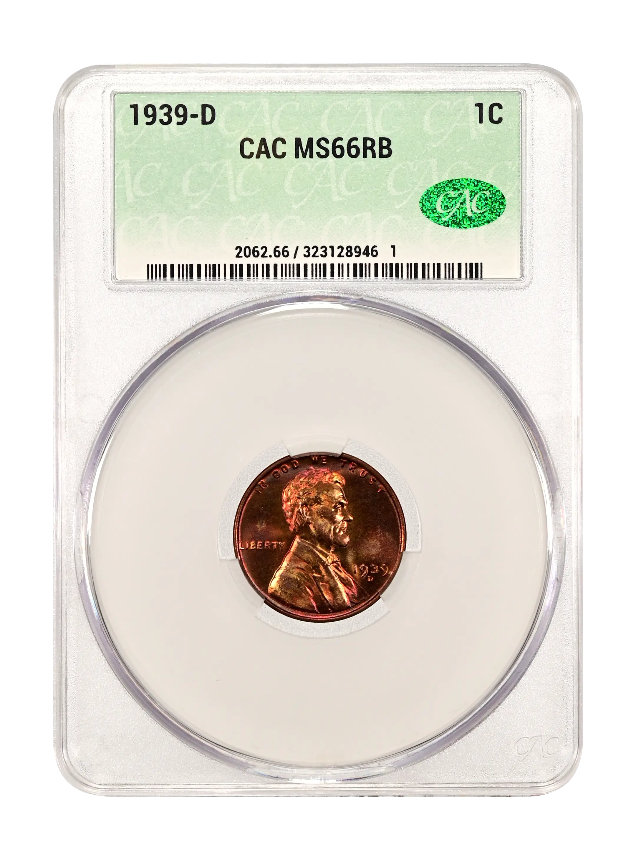 The 1939-D Lincoln cent, like so many other late-1930s branch-mint pennies, is extremely common in all grades through MS66. At the grade threshold of MS67 offerings become a little scarcer, and higher-grading examples are rare. But supplies are adequate to satisfy the average collector.