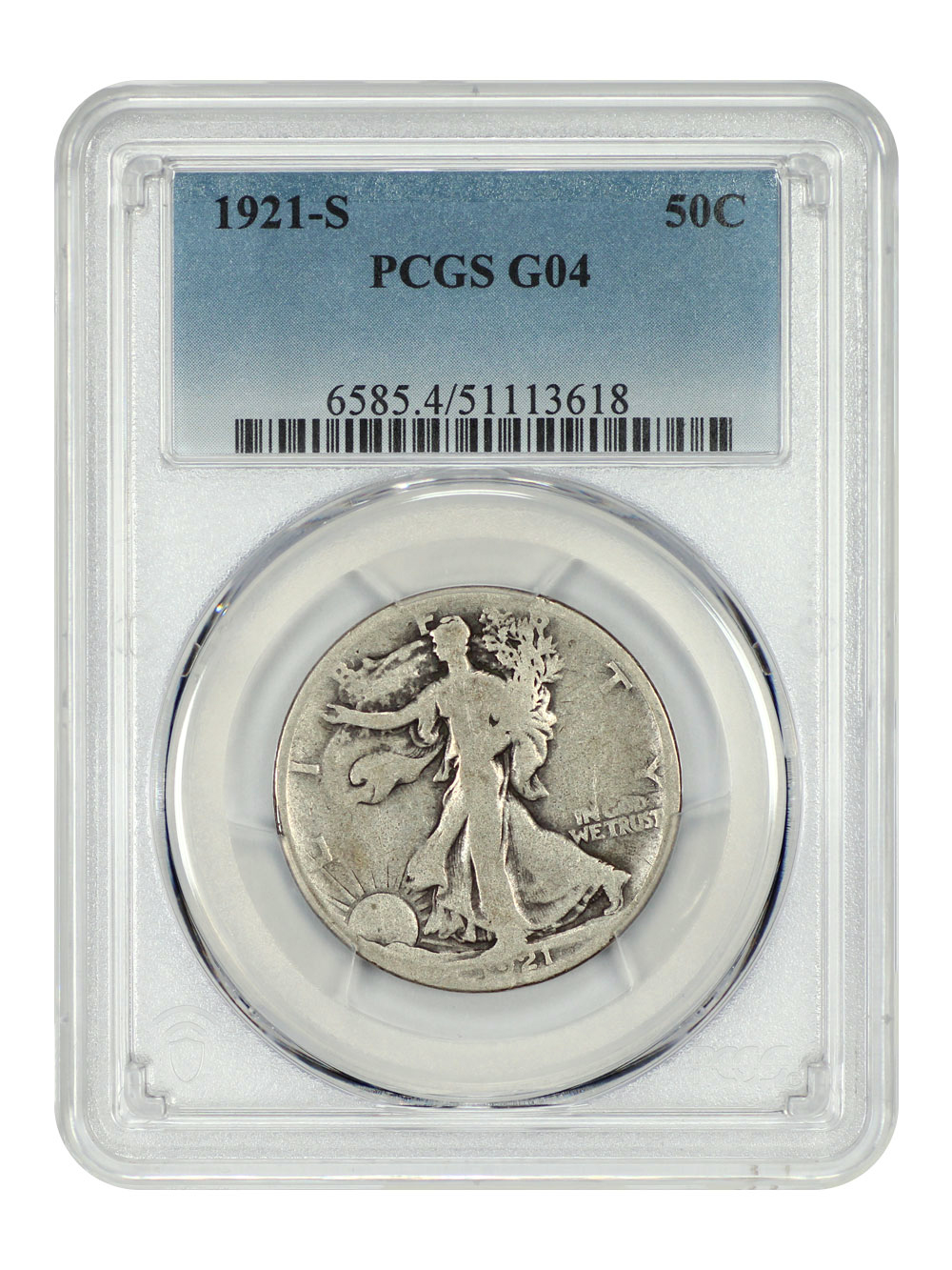 Reverse: A large eagle perched on a rock, facing left with wings elevated in a defensive posture. UNITED STATES OF AMERICA and HALF DOLLAR appear on the periphery. The motto E PLURIBUS UNUM sits atop a small olive branch left of the eagle. The mintmark is small, and placed below the olive branch near the left rim.