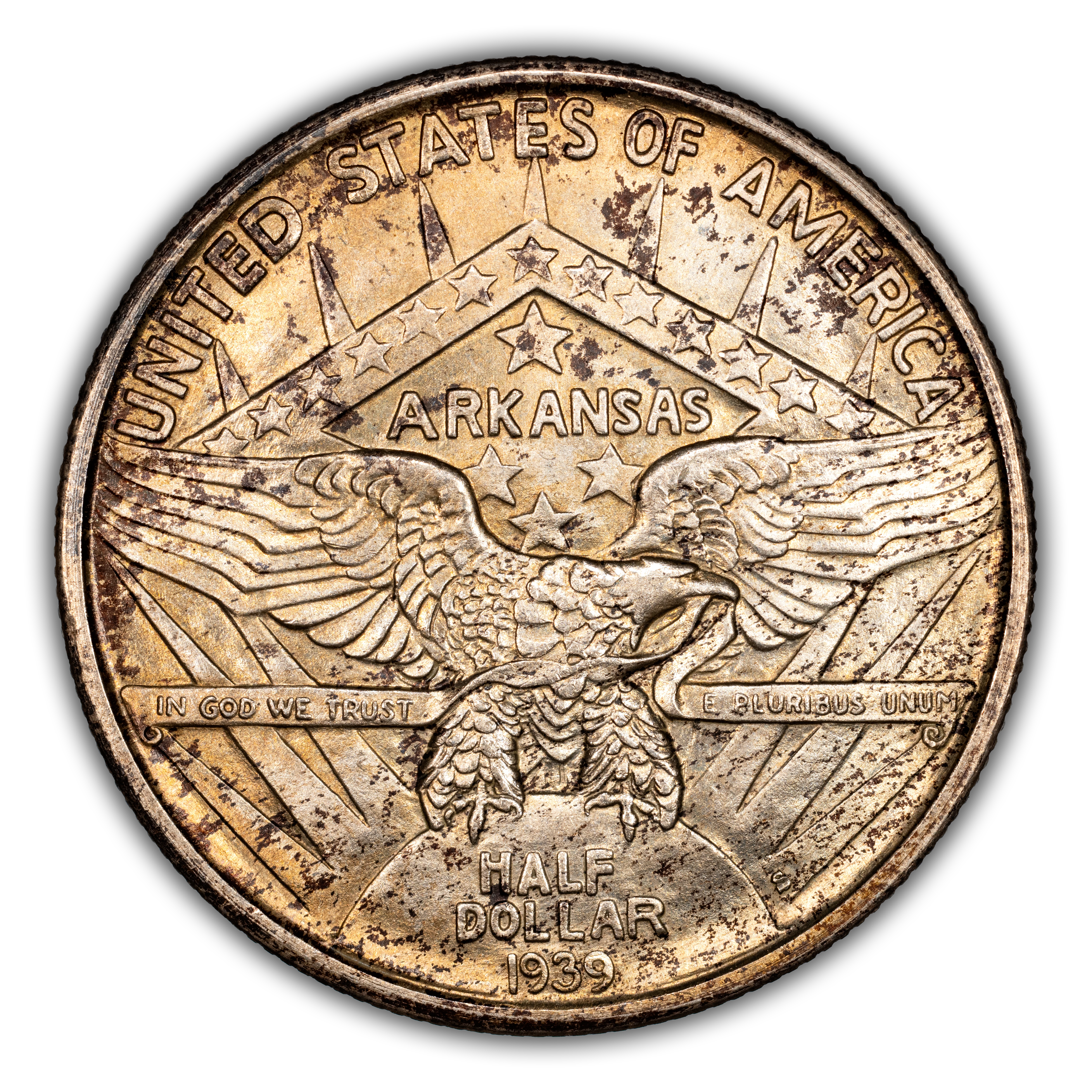 Virtually all surviving 1939 Arkansas halves are known in uncirculated condition, and most are encountered in grades of MS60-65. Examples in grades of MS66 are rare, and those grading higher are extremely rare. Most specimens exhibit frosty luster, and many are toned.